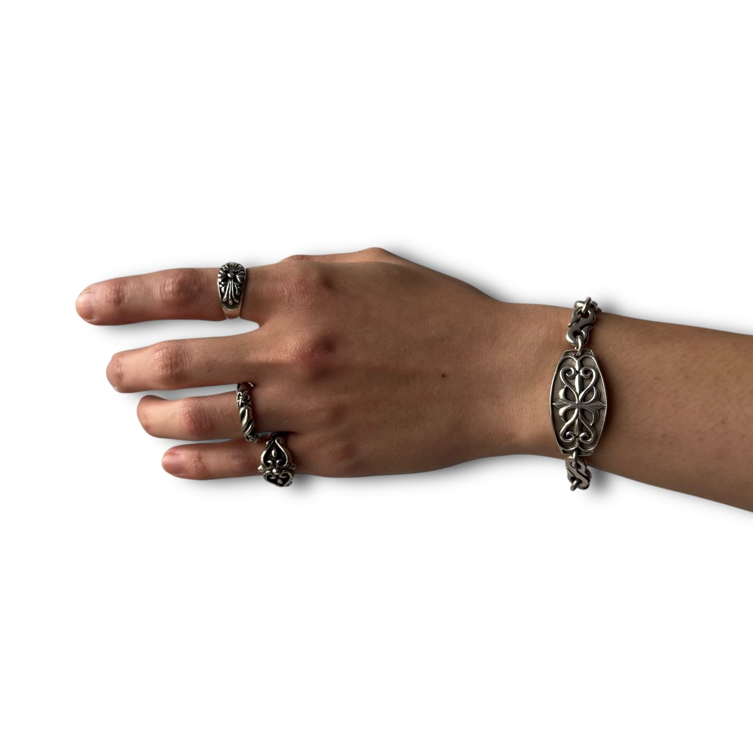 フローラルクロスが煌びやかか雰囲気を醸し出しているデザインシルバーリング✨️✨️