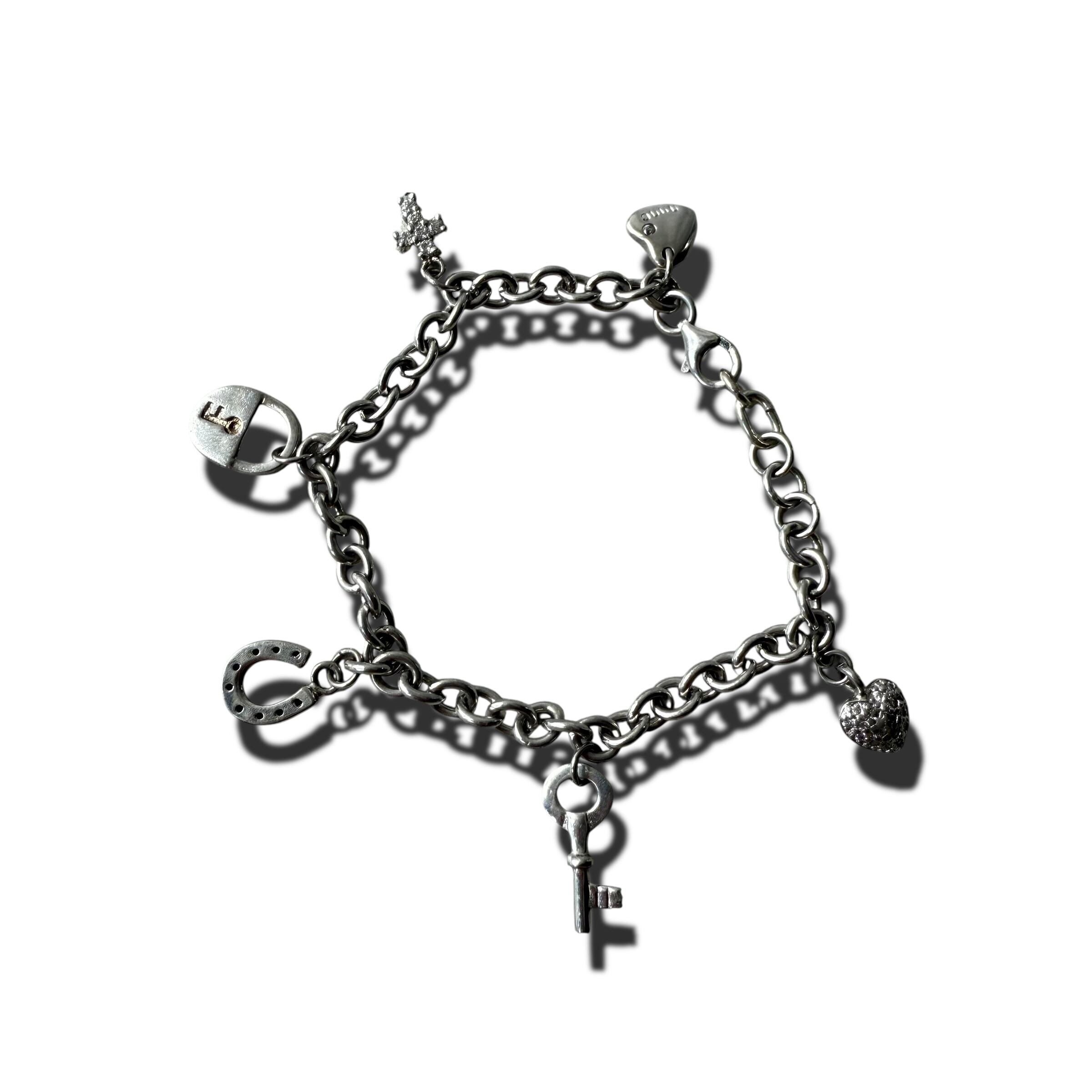 ヴィンテージ925の類でも、デザインとしてかなり珍しい様々なモチーフチャームが並んだお洒落なブレスレット‼️