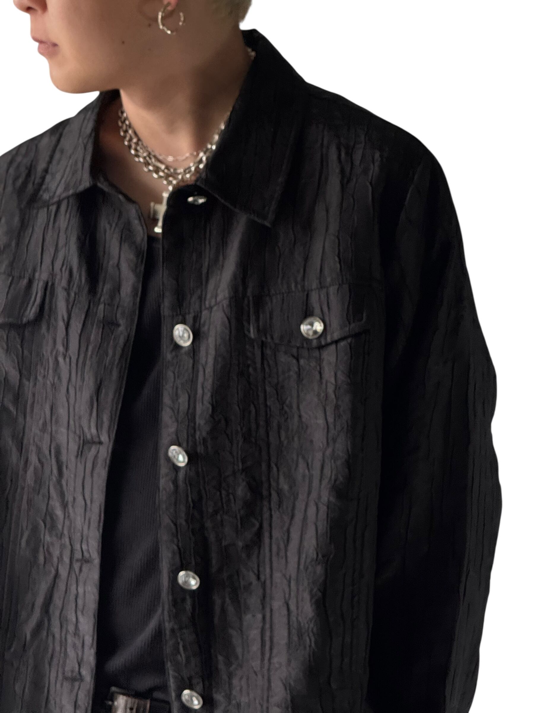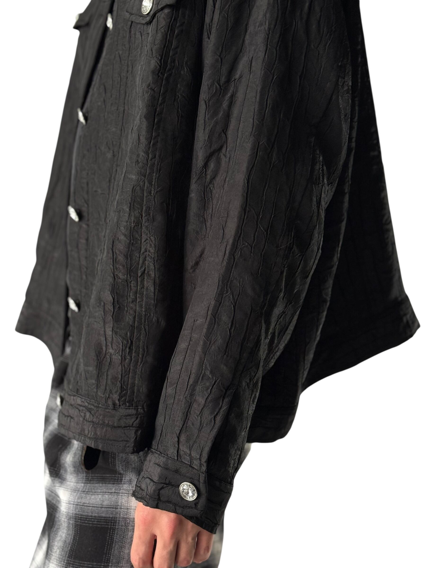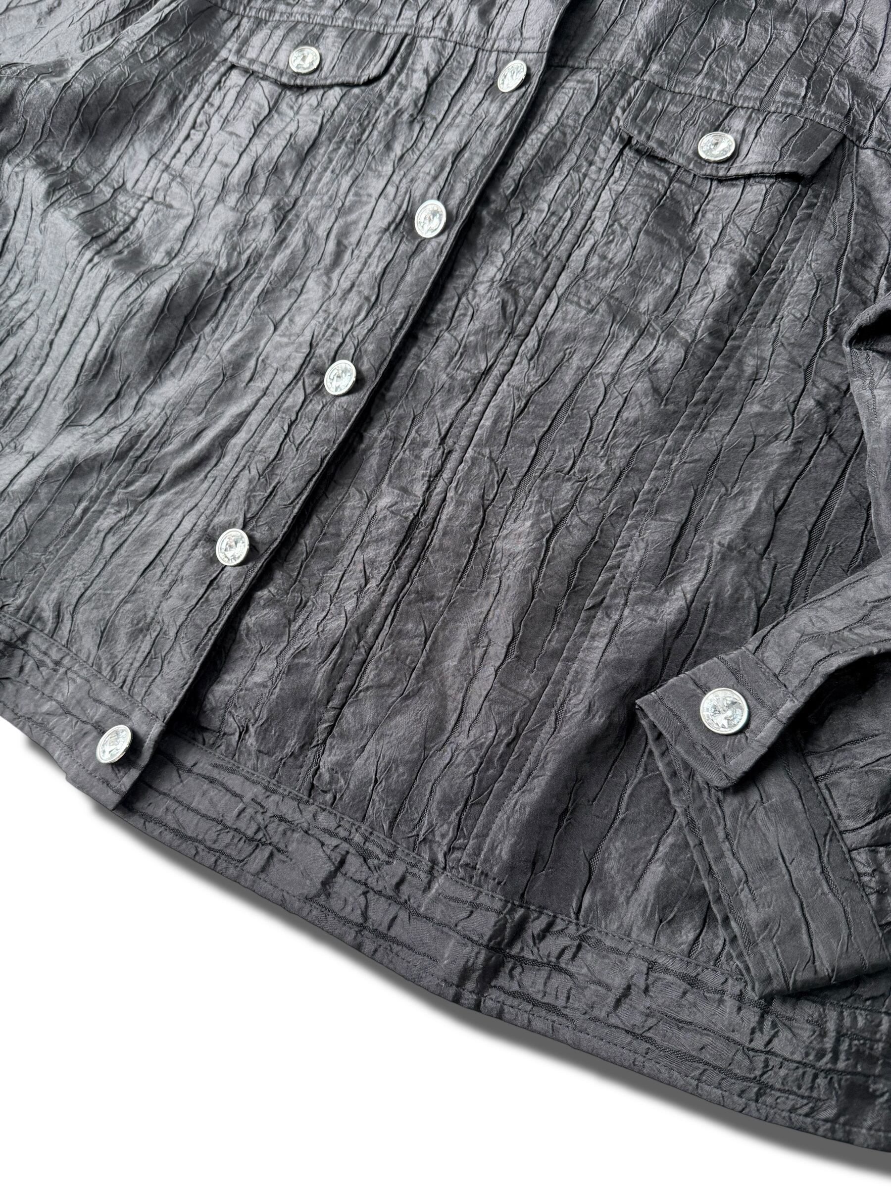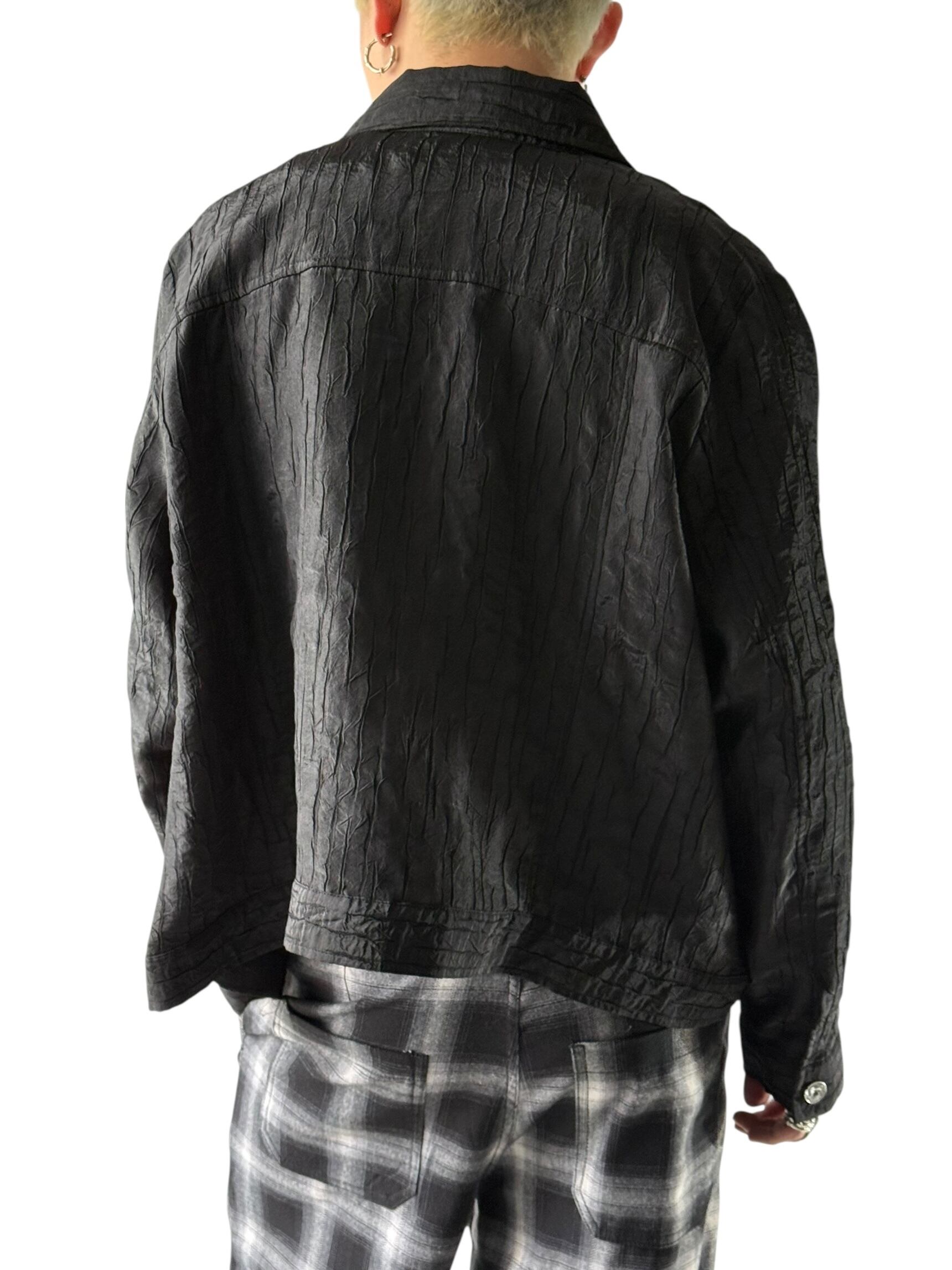 【glitterscape】Mesh double-faced wrinkled trucker jacket