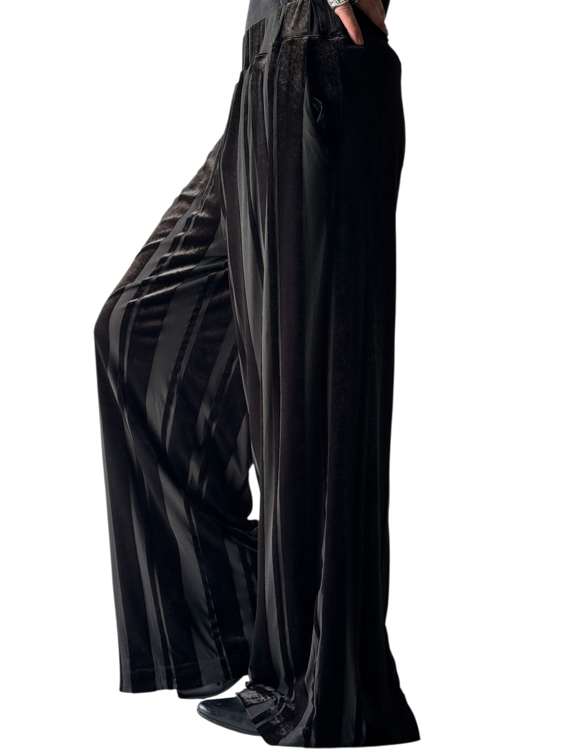 ♾️DKNY♾️ UK stripe velours easy wide buggy flare silhouette pants