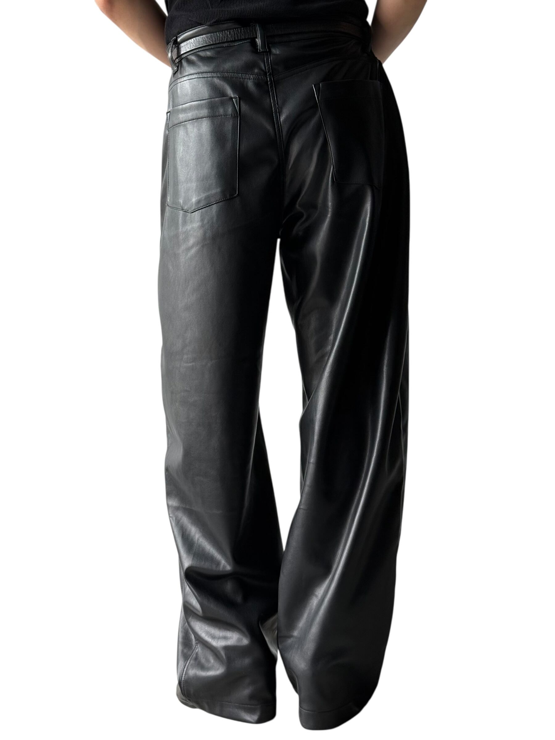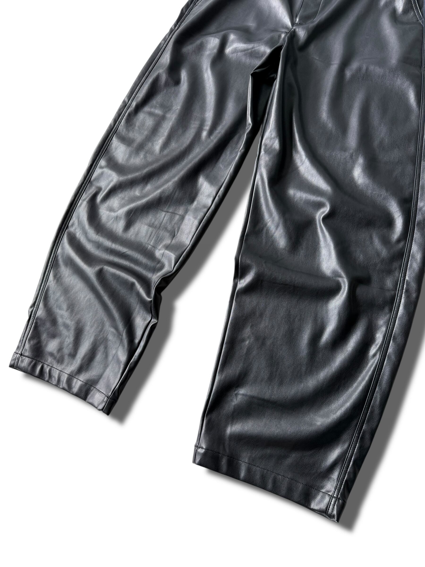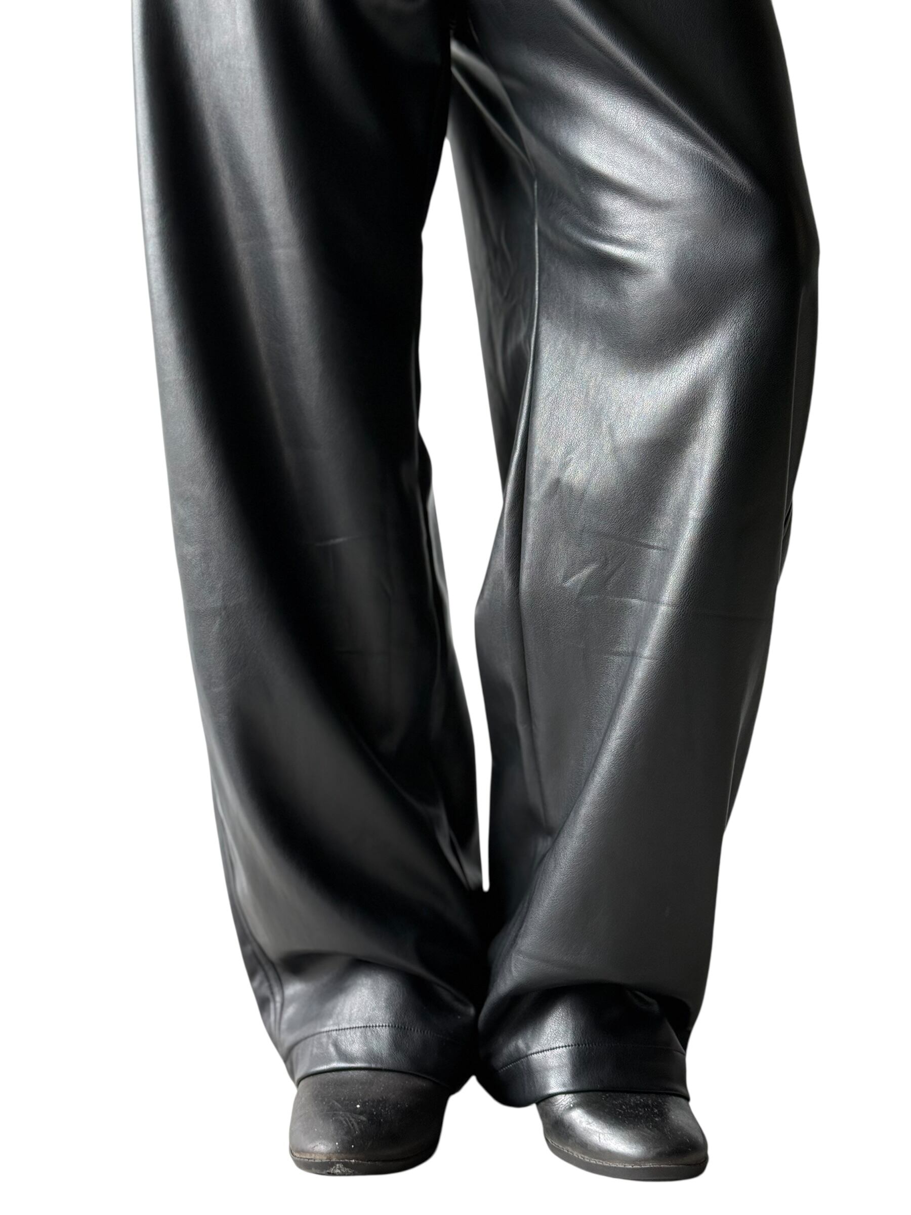 PU LEATHER WIDE LEG PANTS / BLACK