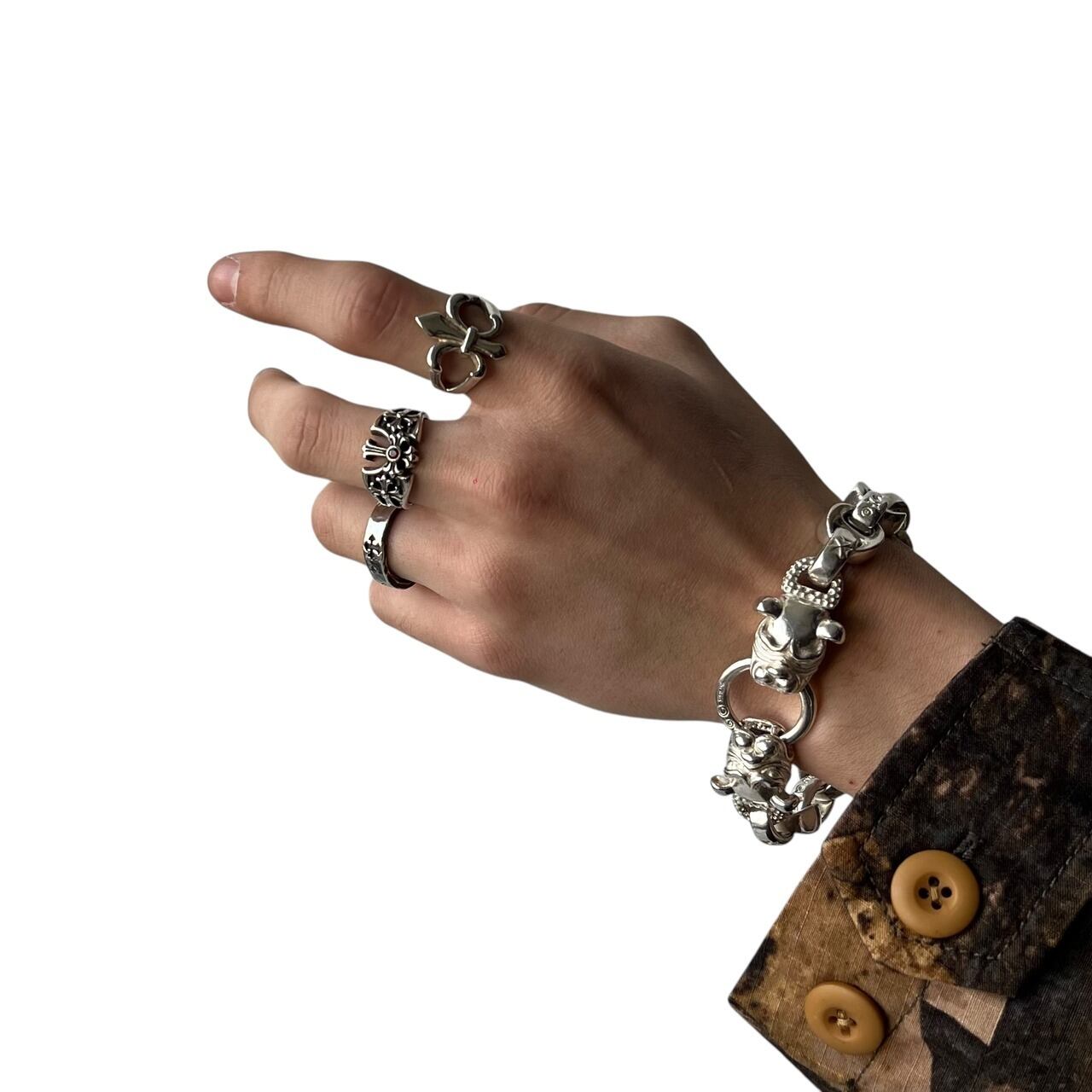 モチーフ部分の立体感あるデザインがポイントでシンプルなコーディネートにいいアクセントに✨️