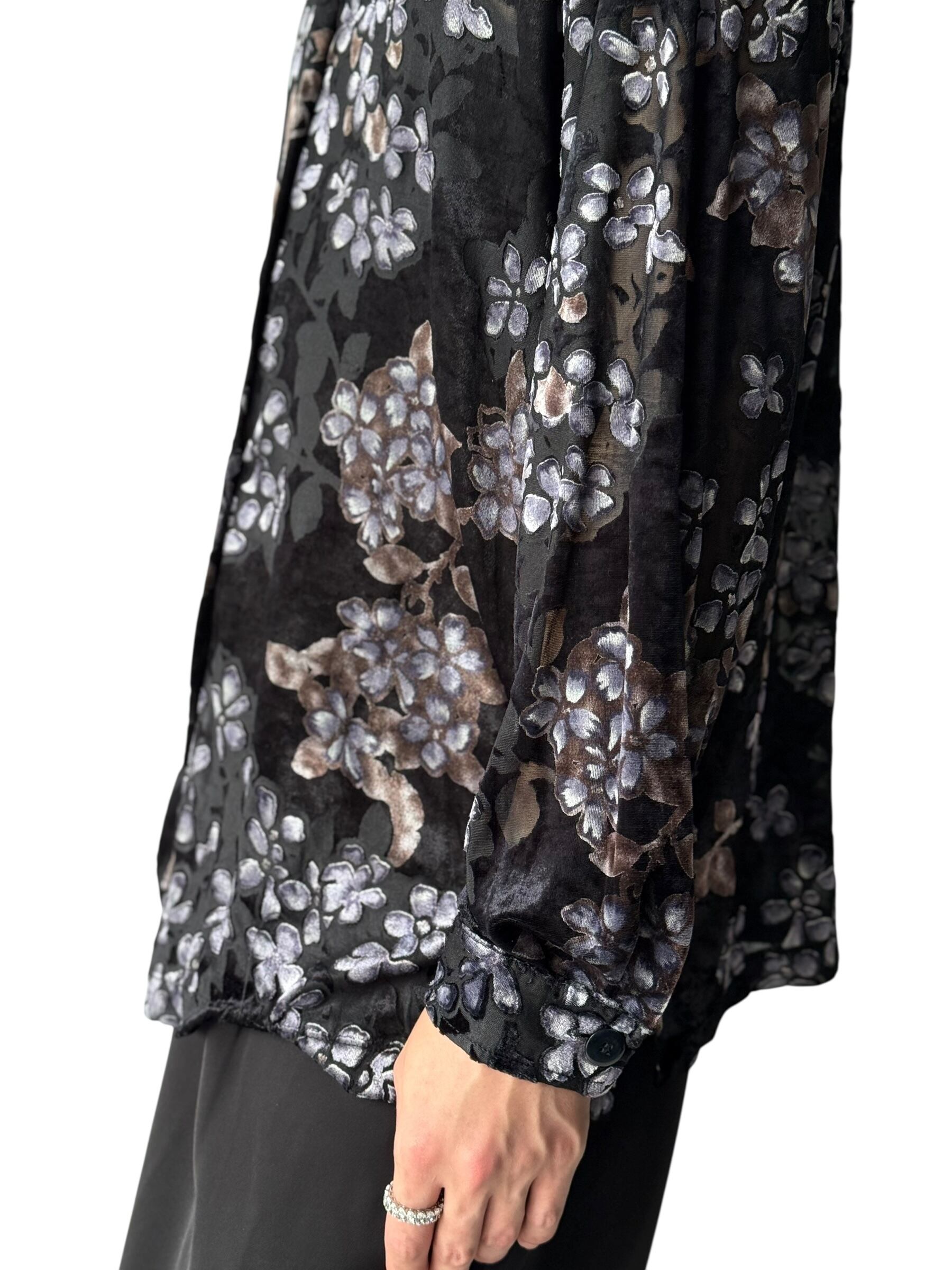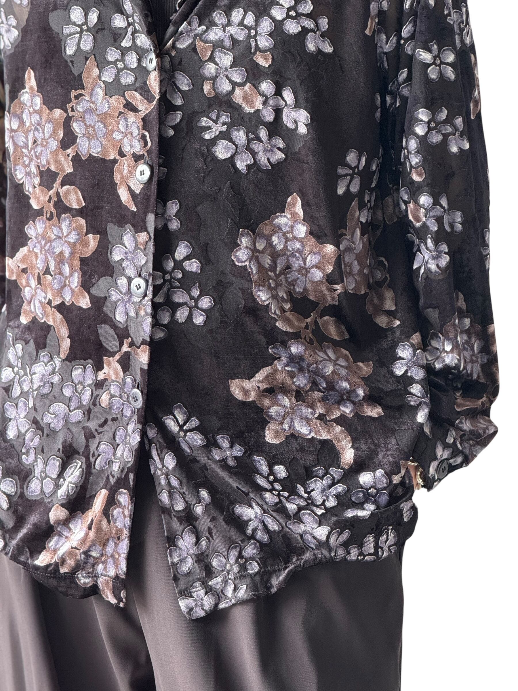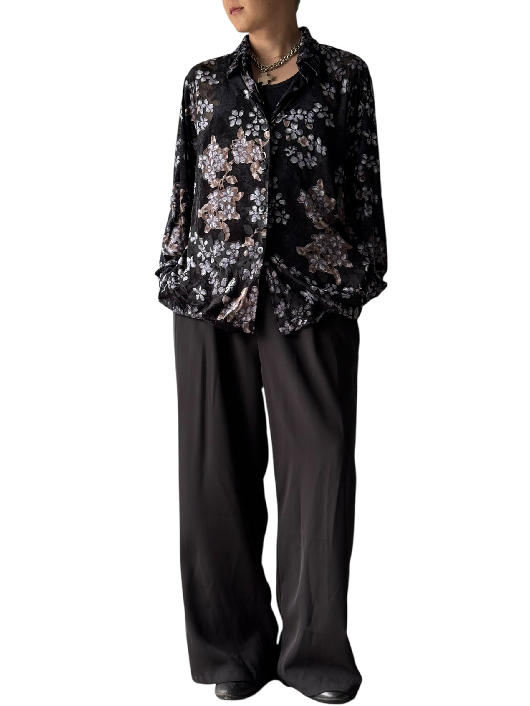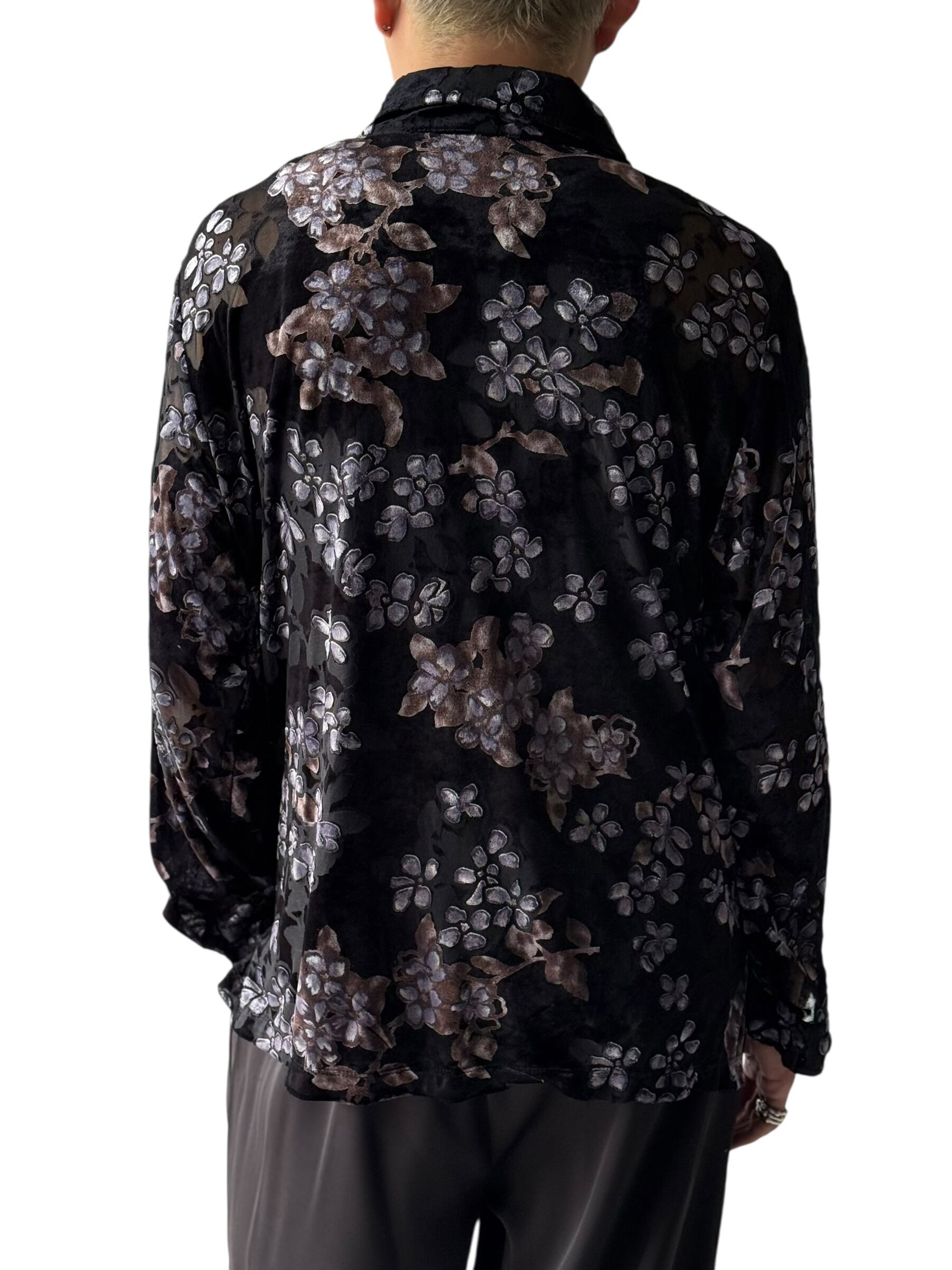 Flower pattern sheer velours shirt