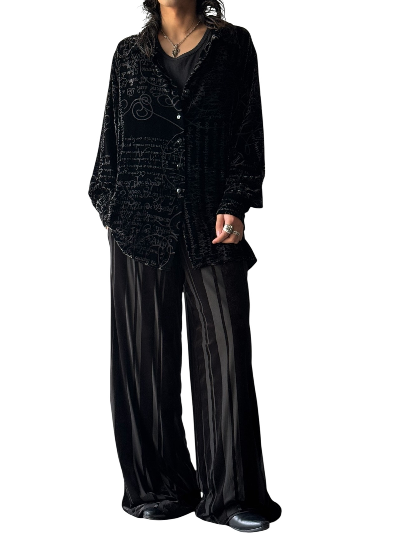 ♾WORKING CLASSICS♾ Velours pattern sheer shirt