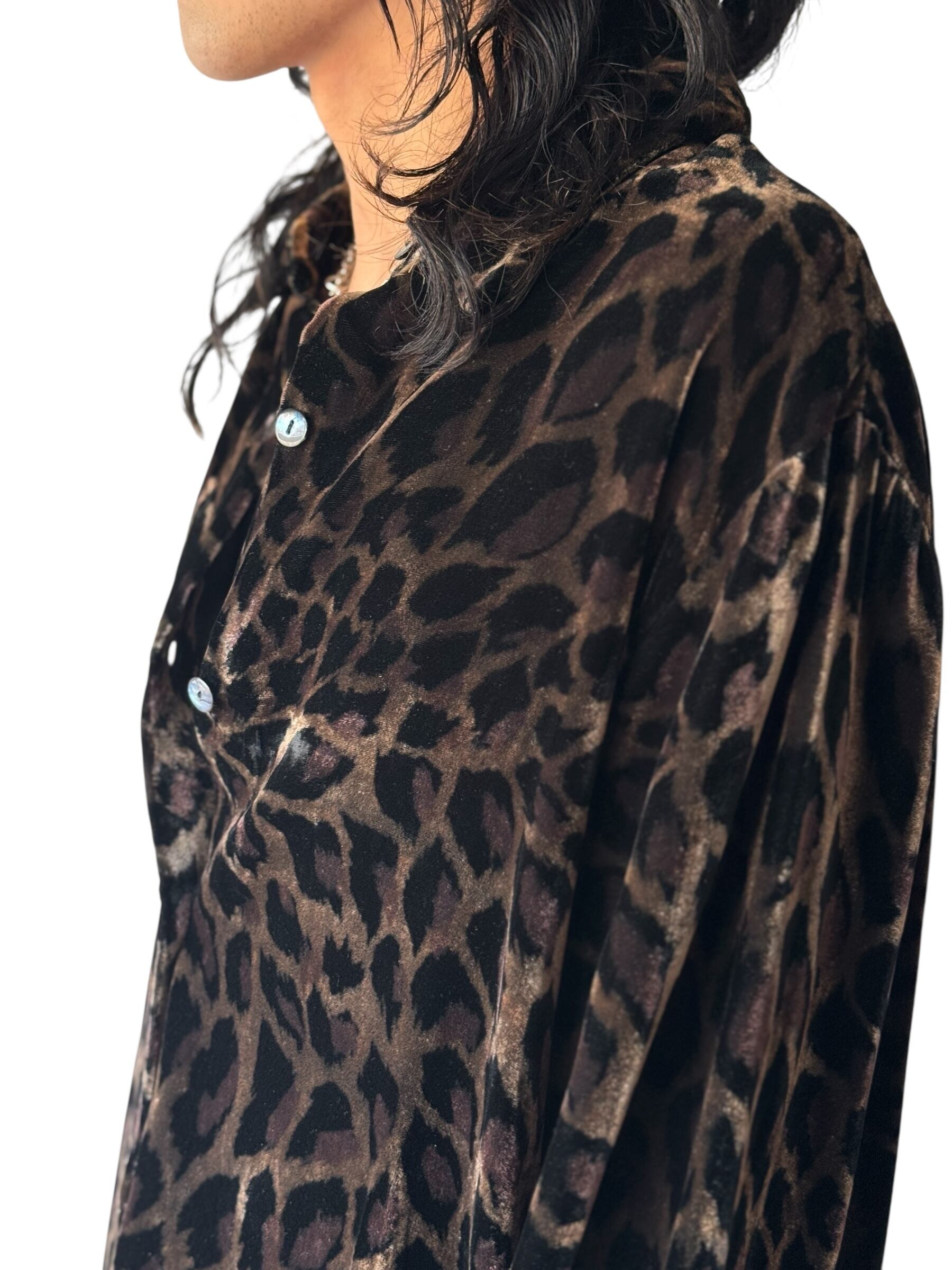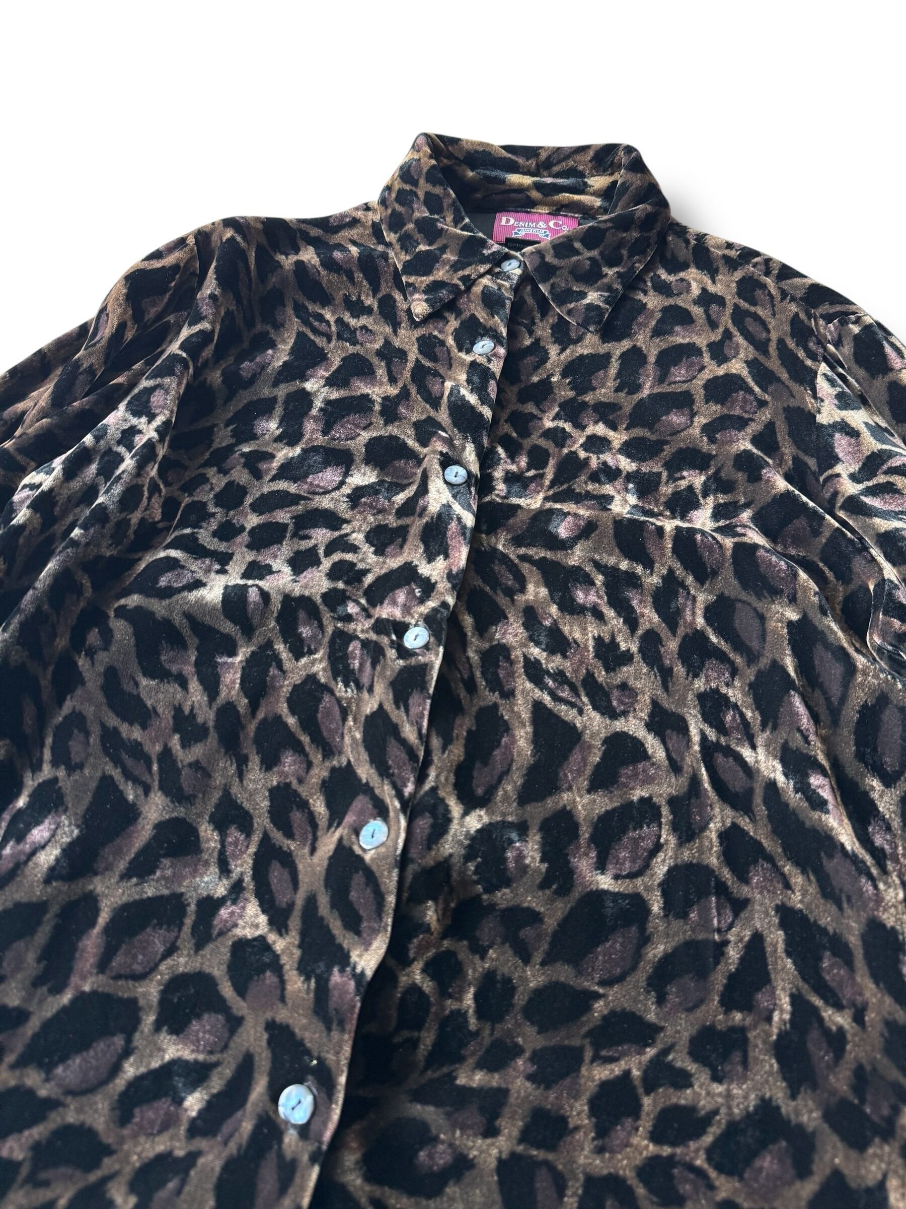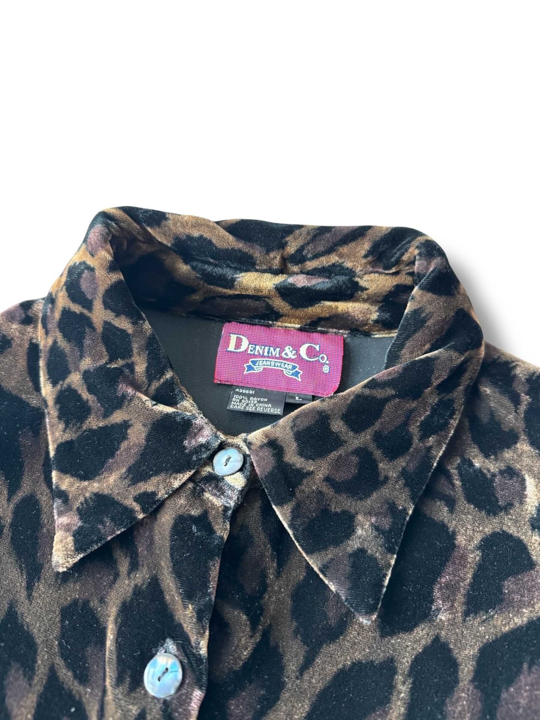 ♾️DENIM&CO.♾️ leopard pattern Rayon velours shirt