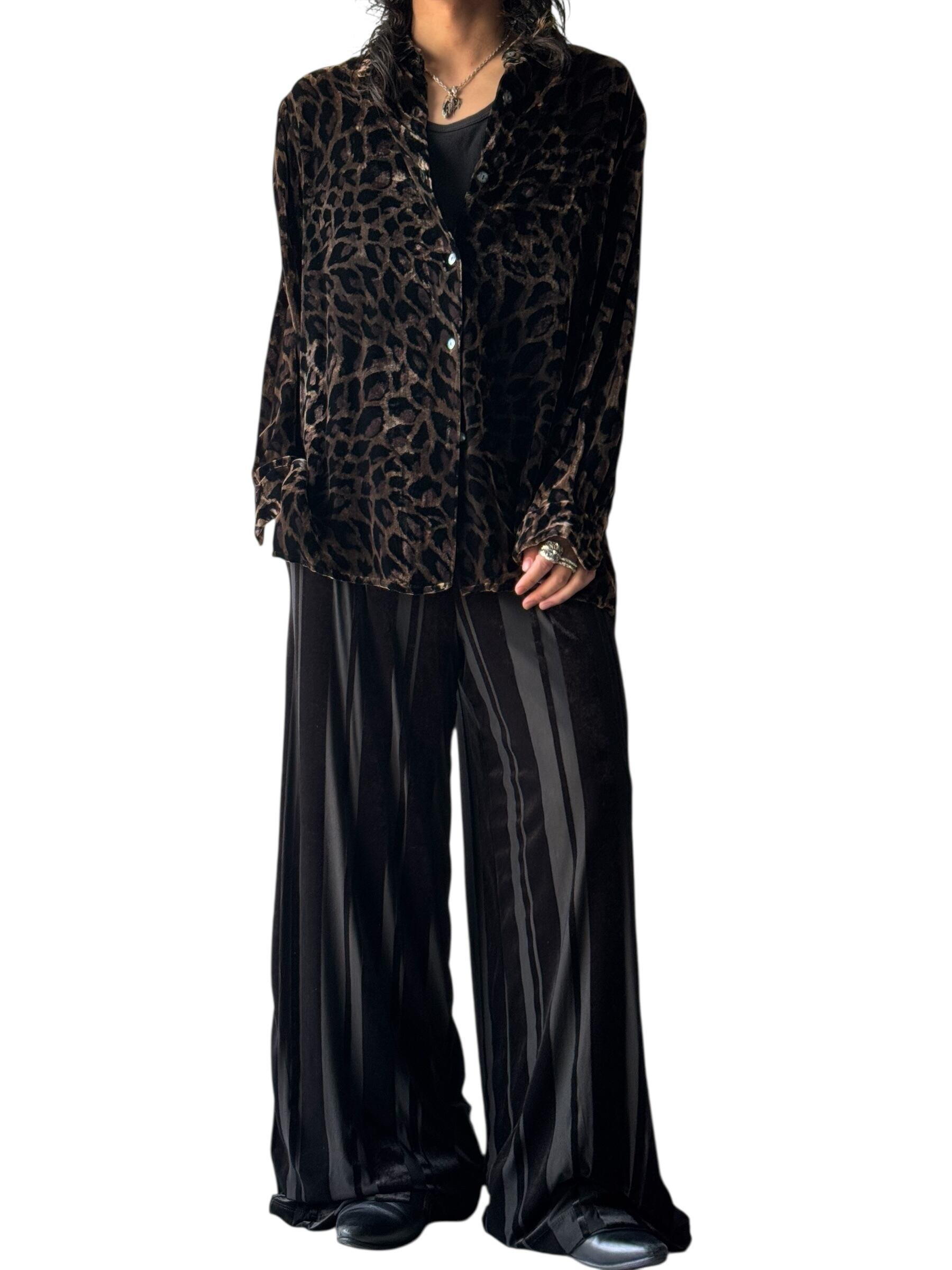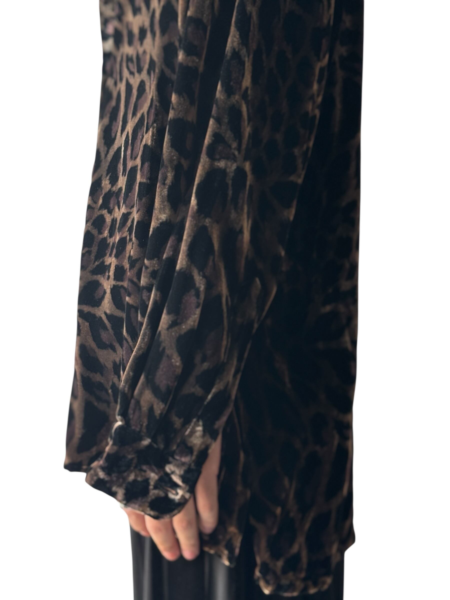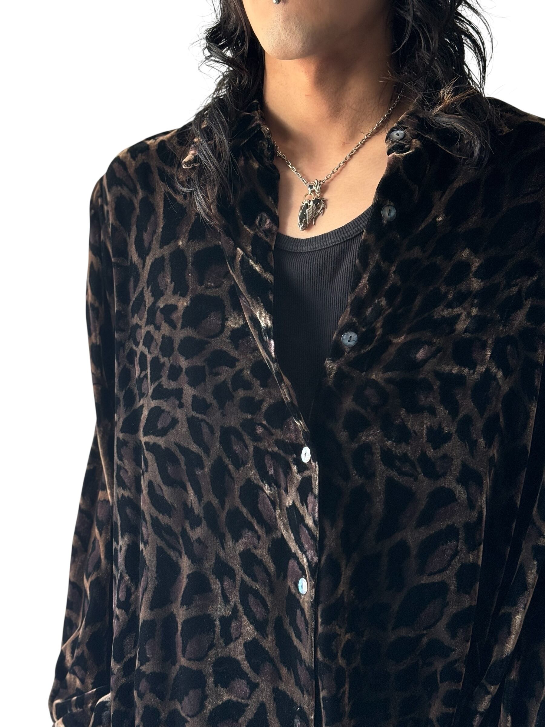 ♾️DENIM&CO.♾️ leopard pattern Rayon velours shirt