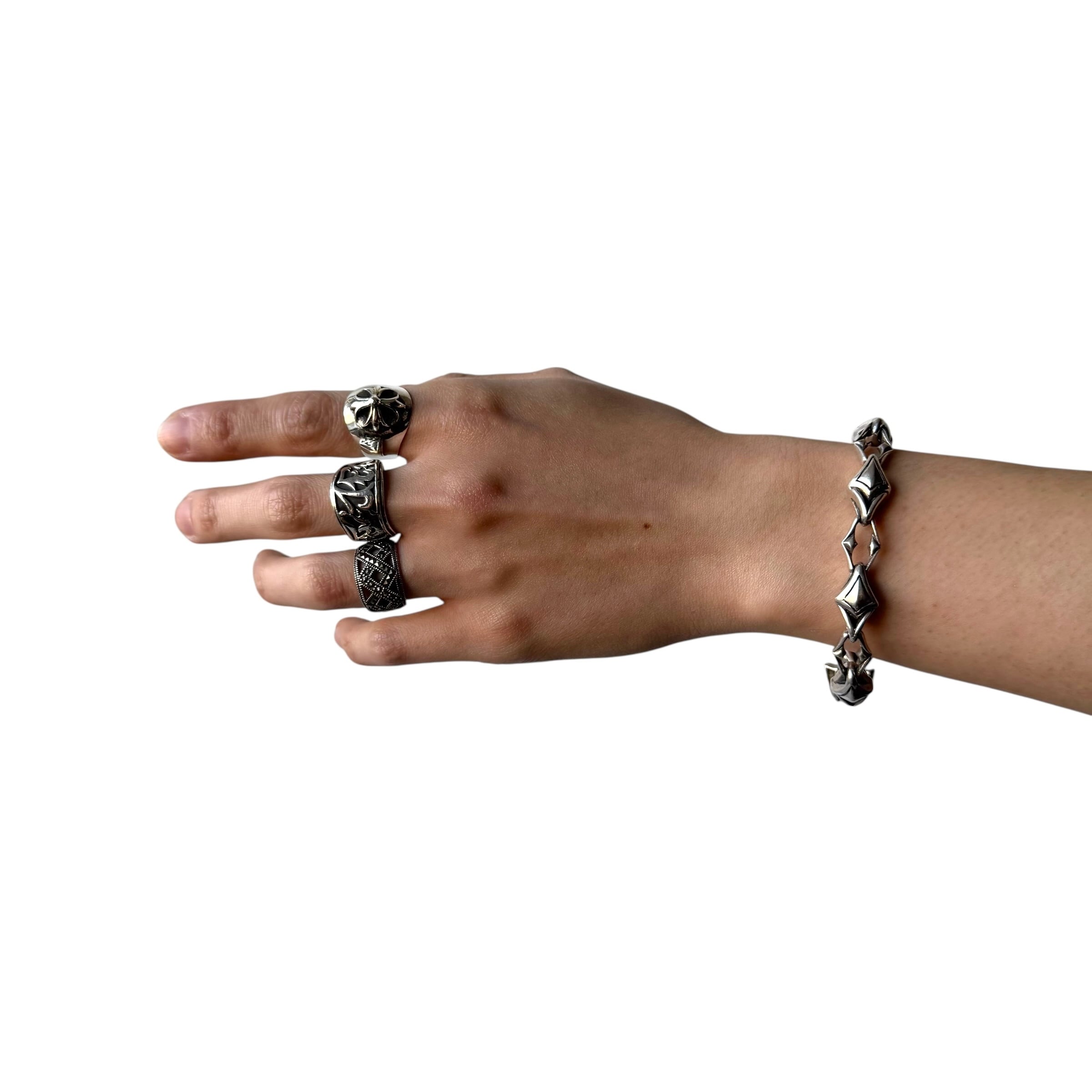 細やかにセットされたジルコニアの煌めきがクールなデザインシルバーリングの入荷‼️