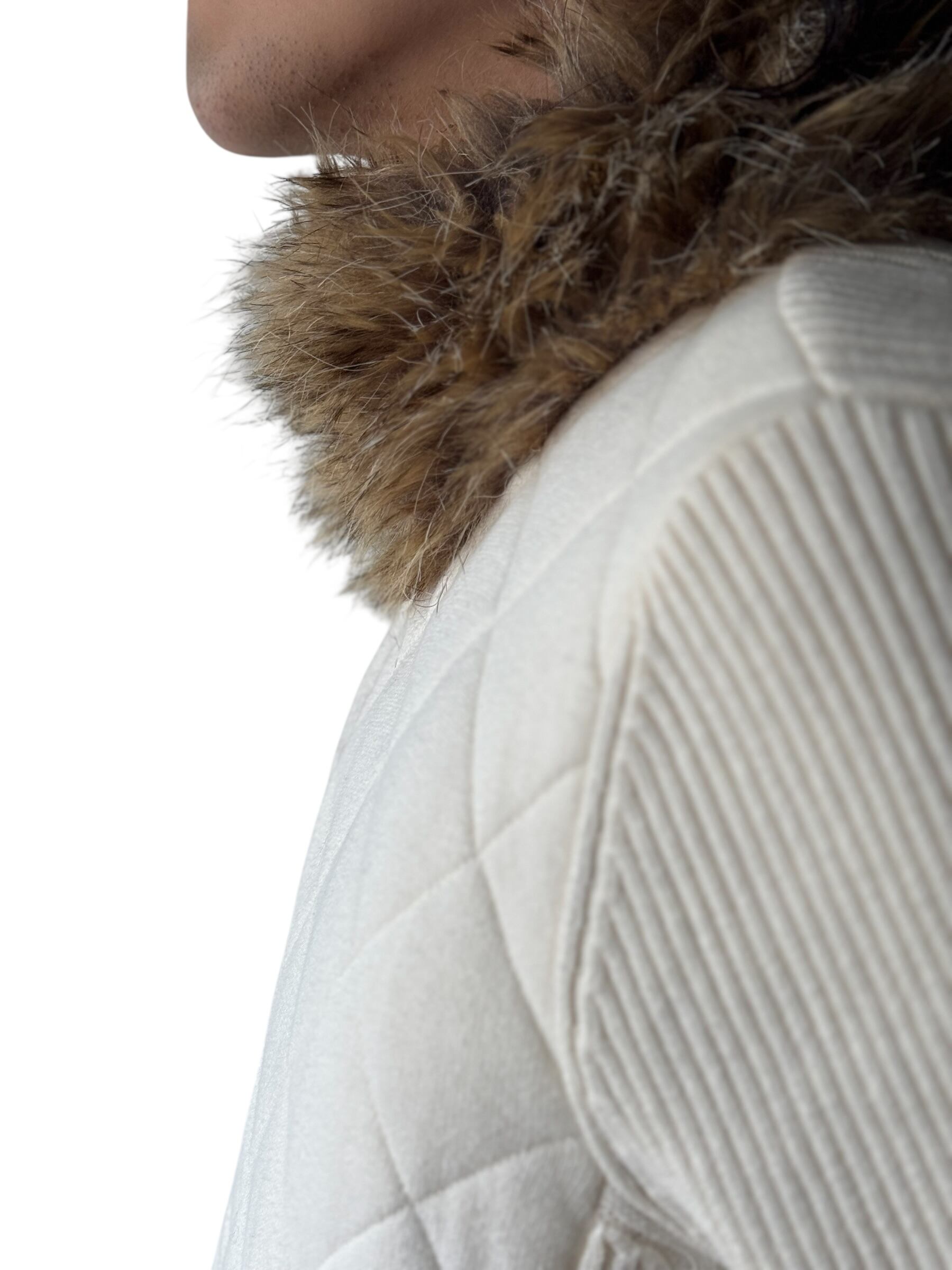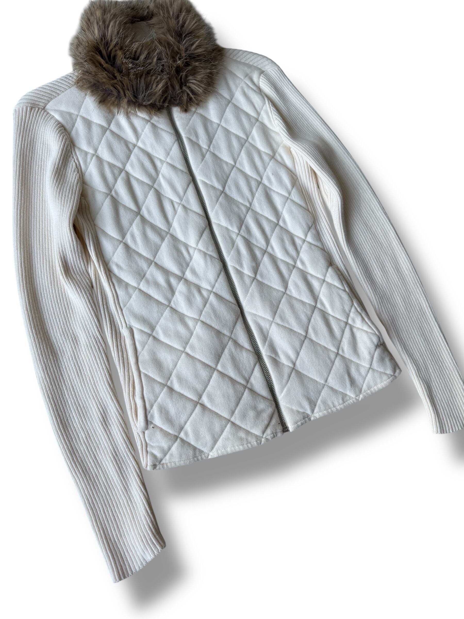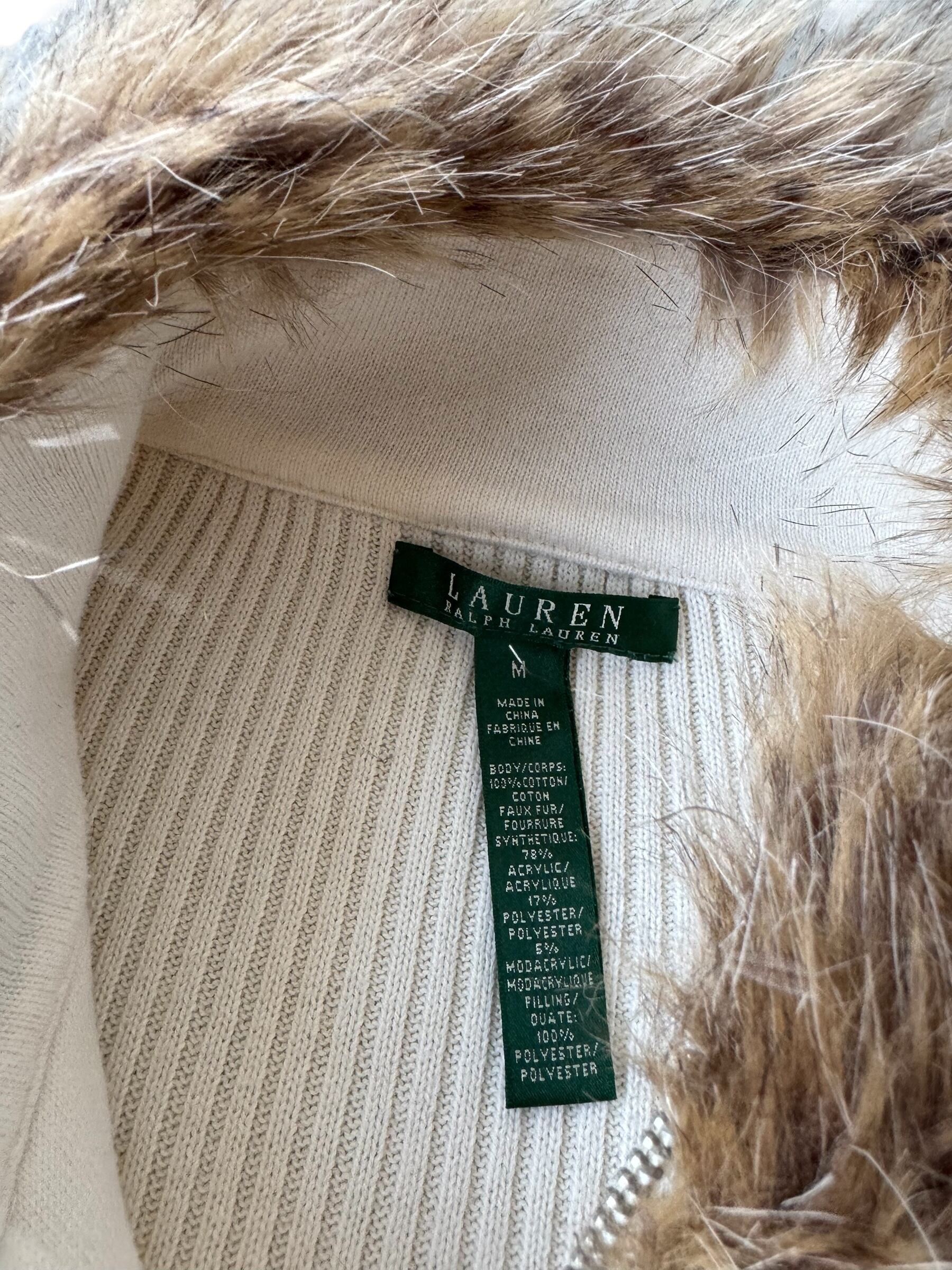♾LAUREN/RALPH LAUREN♾ Fur collar front quilted zip drivers knit size M