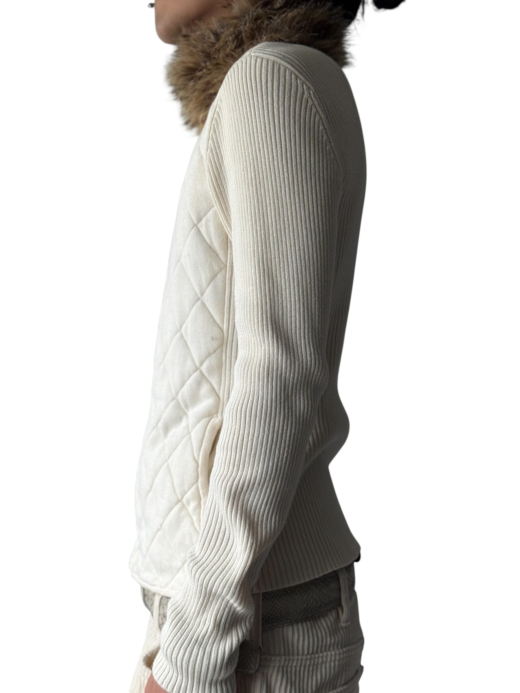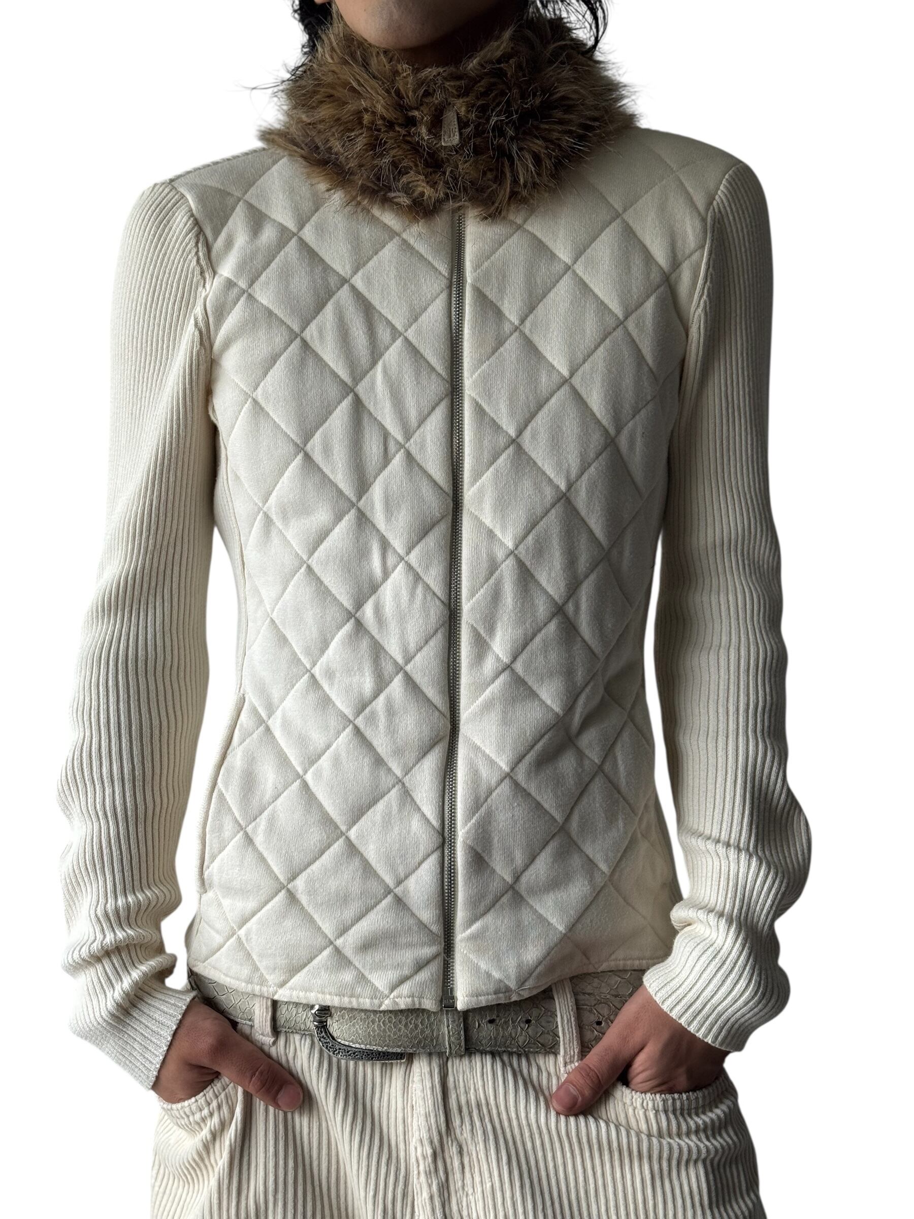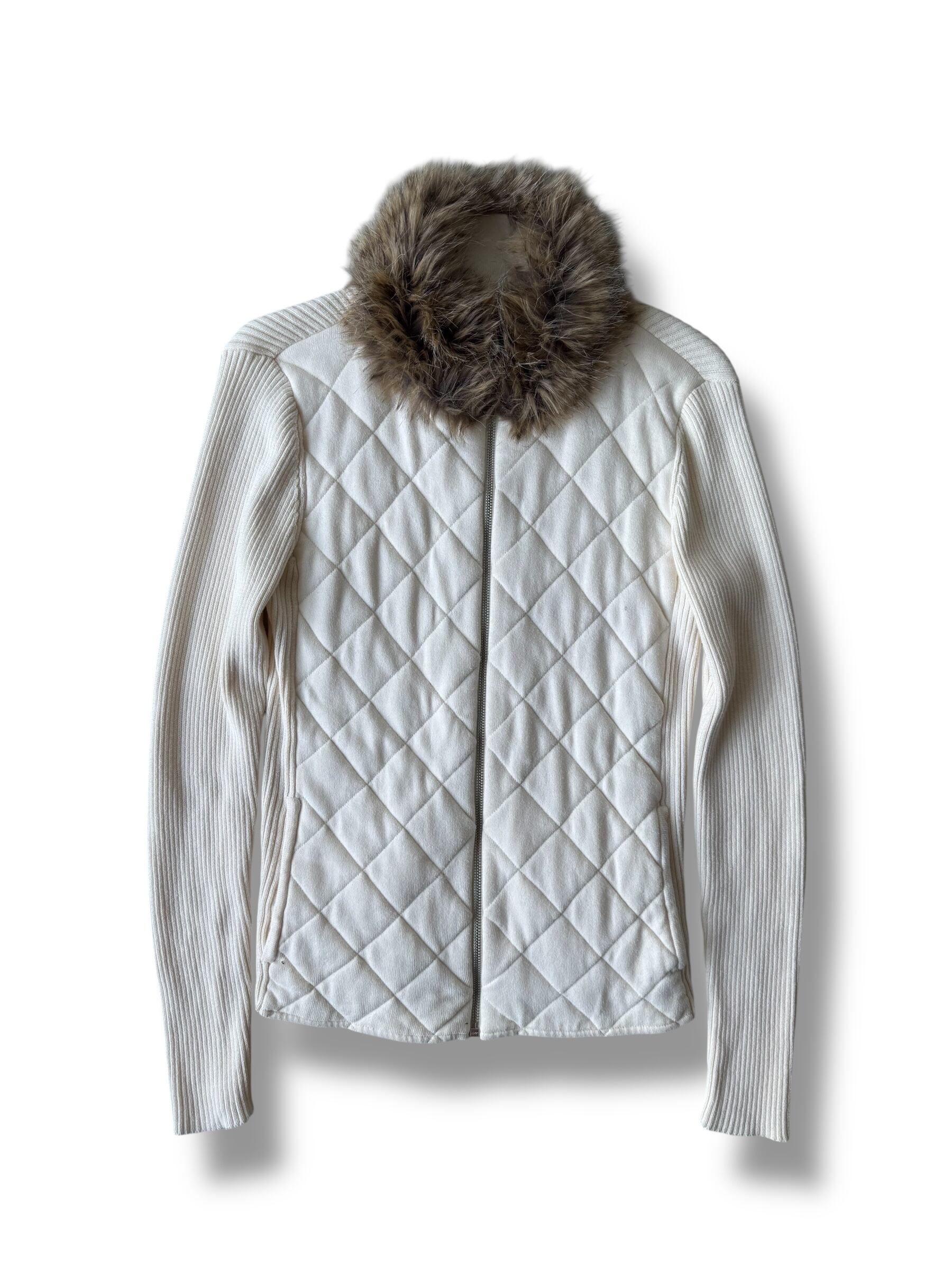♾LAUREN/RALPH LAUREN♾ Fur collar front quilted zip drivers knit size M