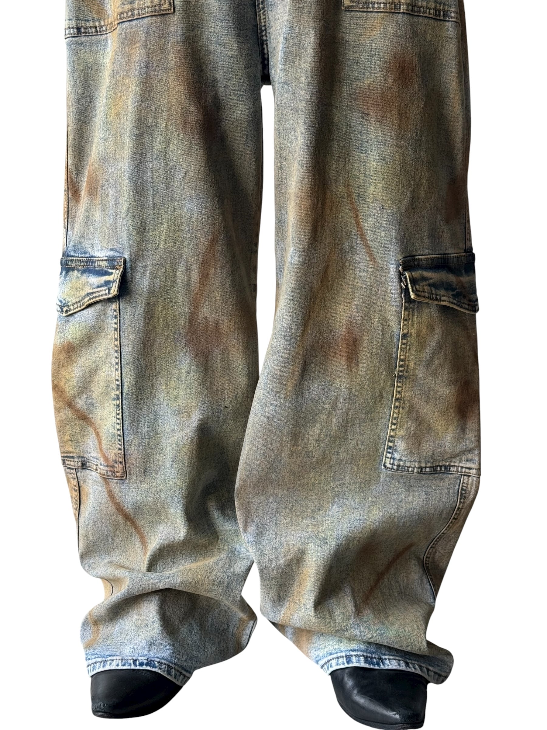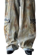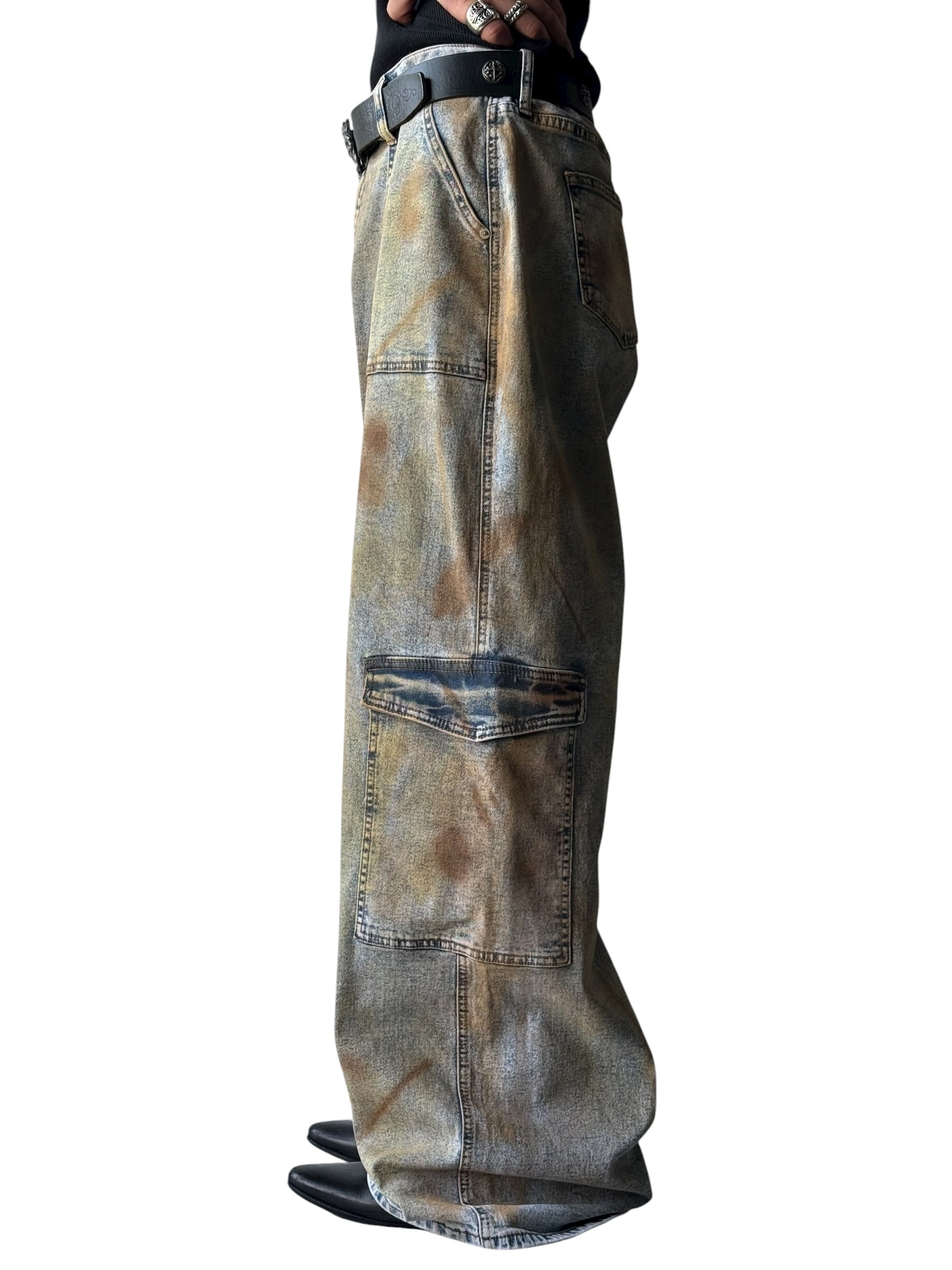 ♾design used♾ dusty coating design wide cargo buggy chemical denim pants