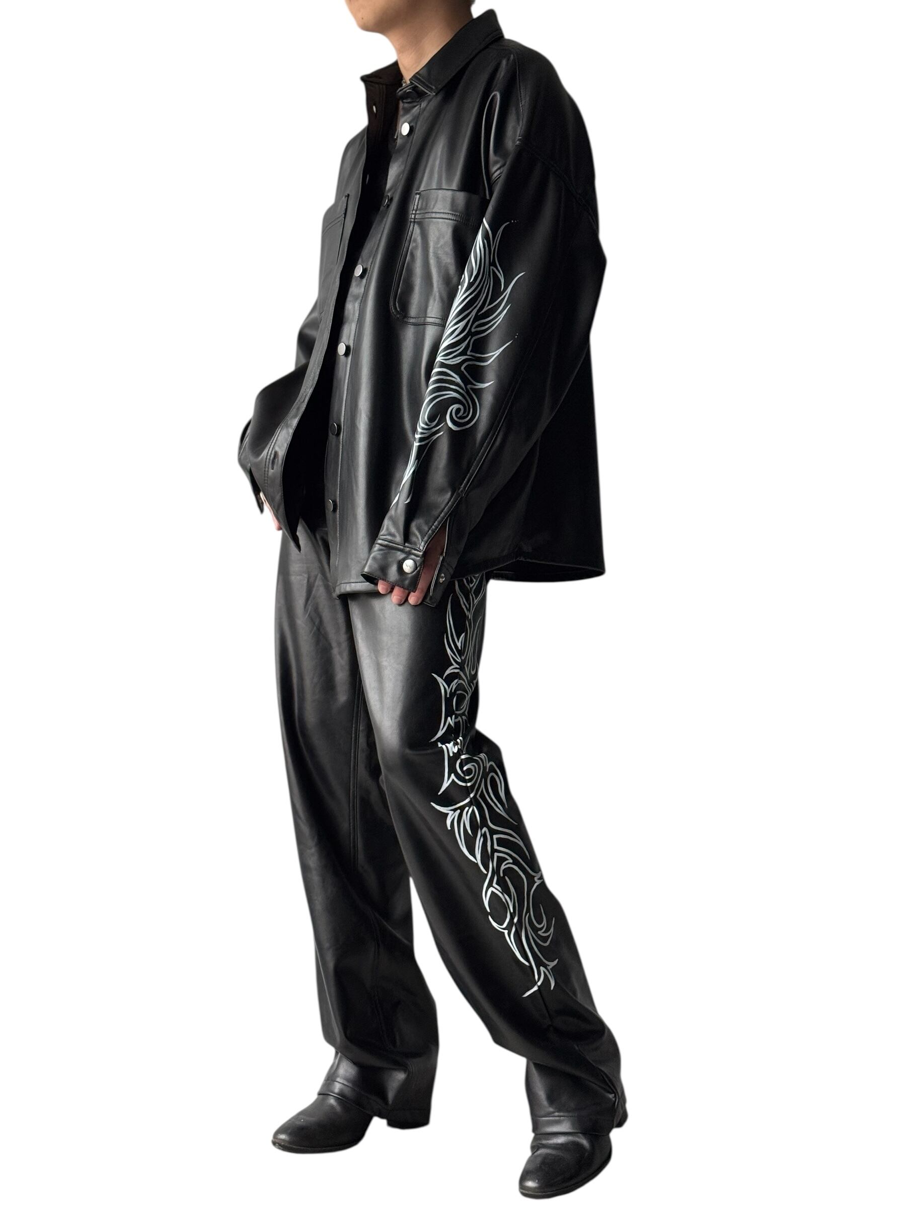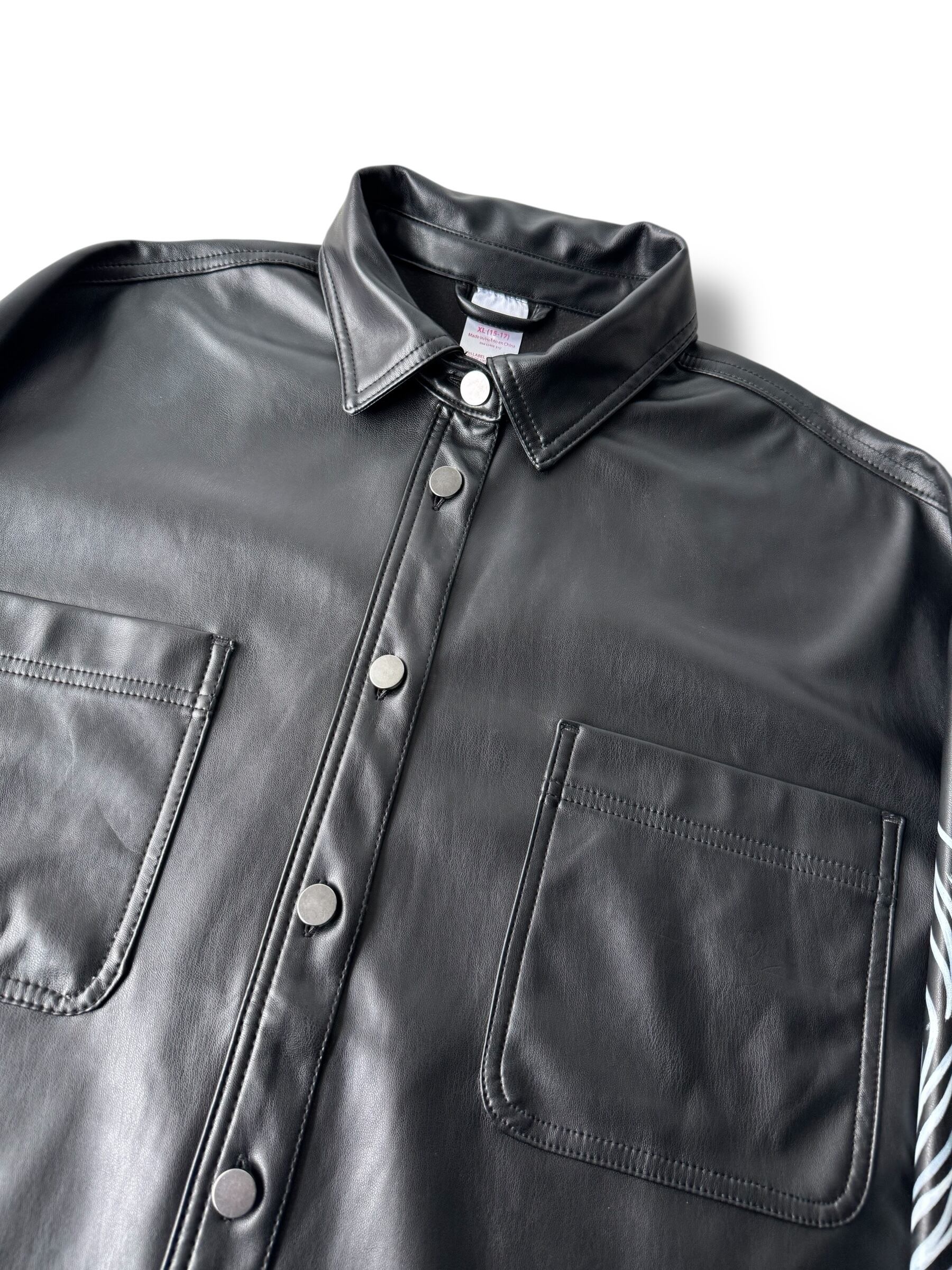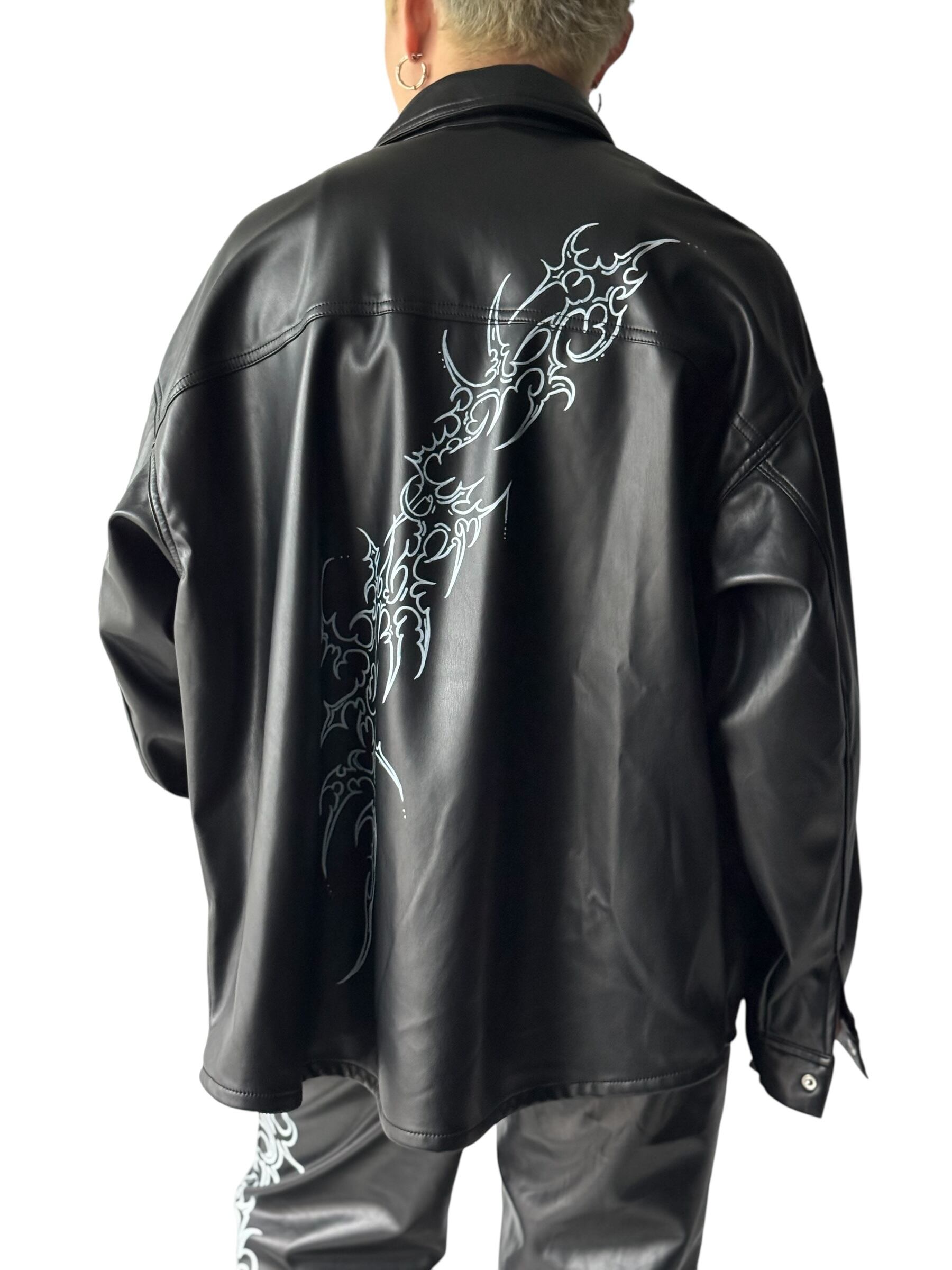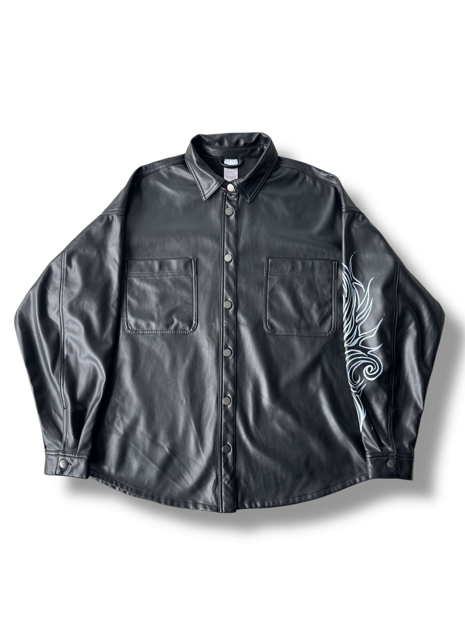 ♾NO BOUNDARIES♾ hand drawing design pvc leather L/S shirt sizeXL