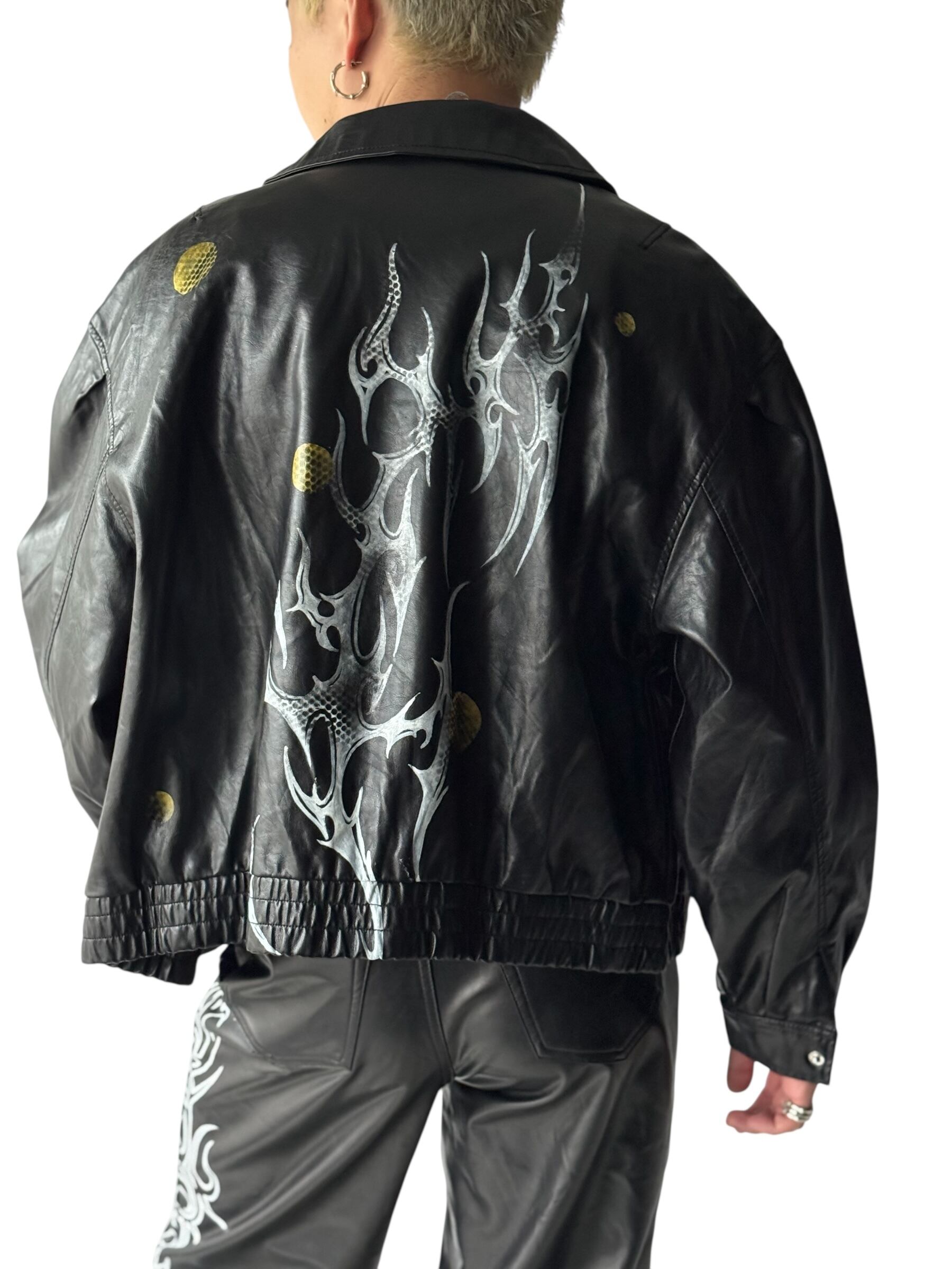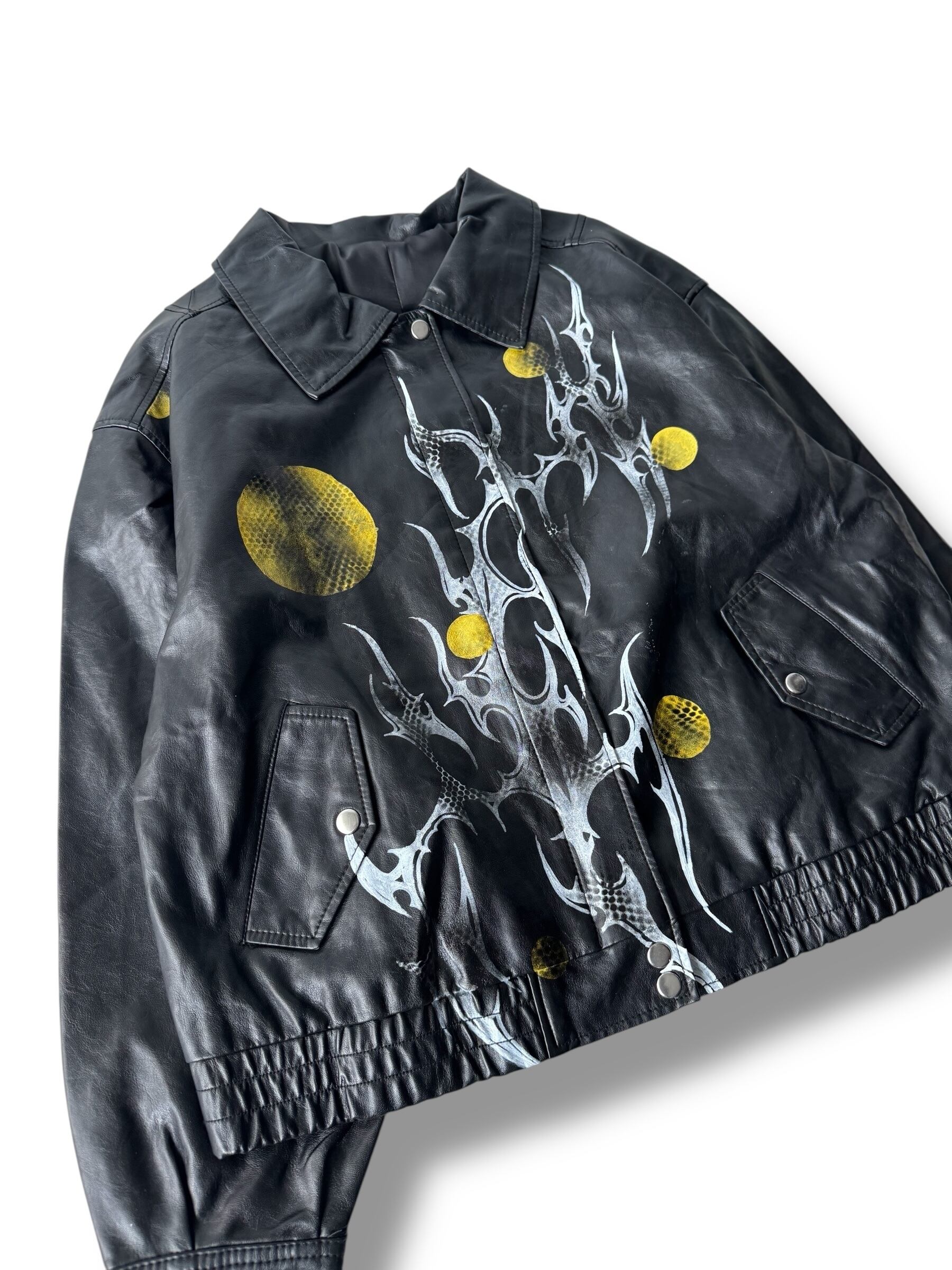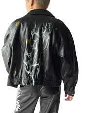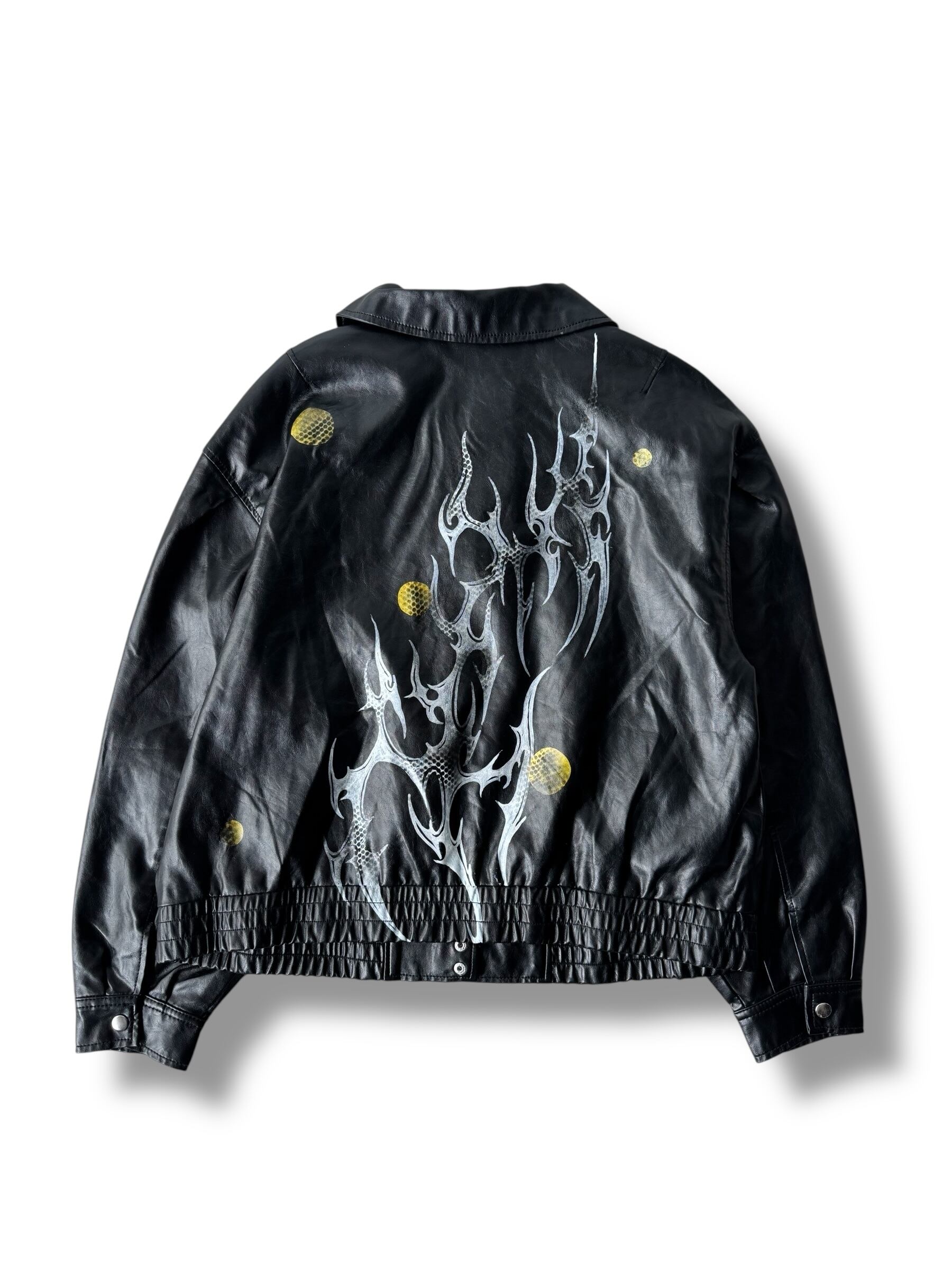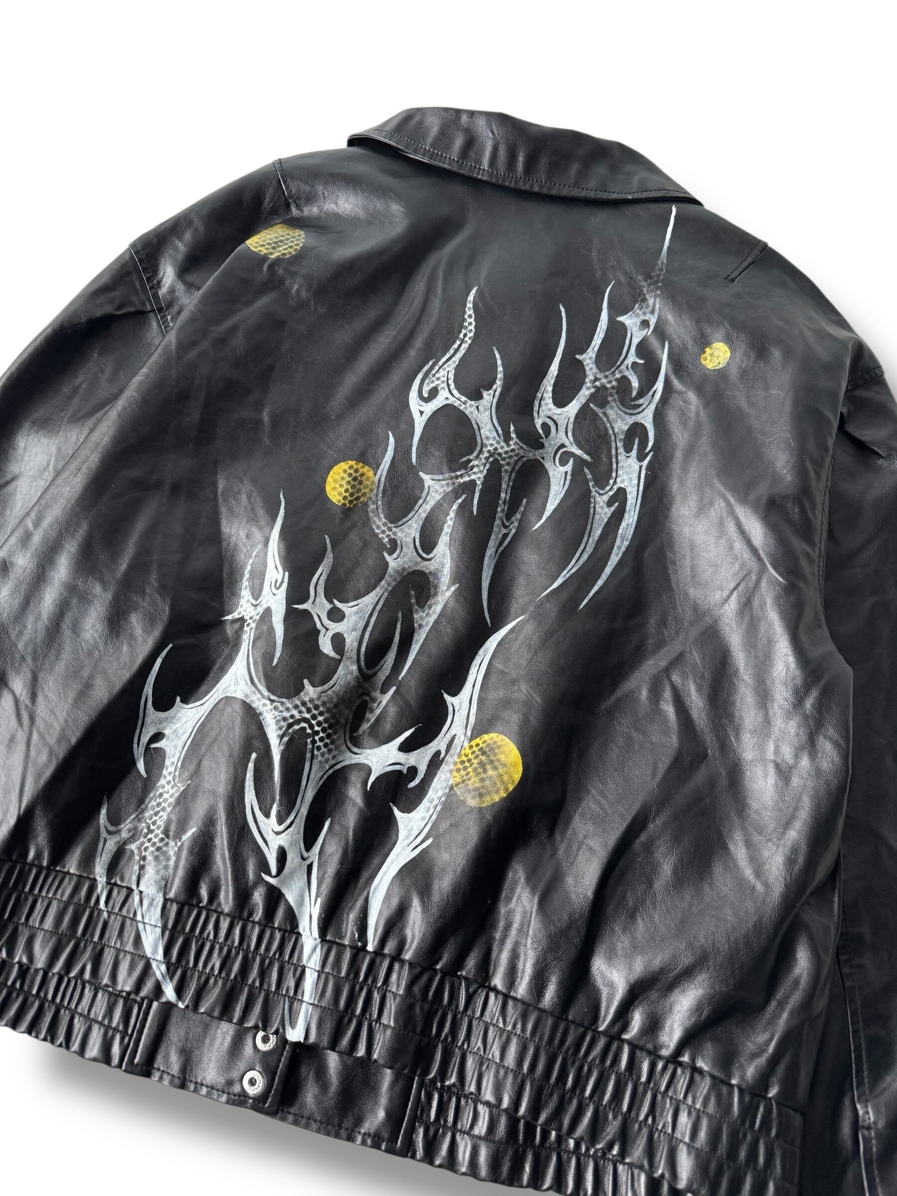 ♾design used♾ hand drawing design pvc leather zip up blouson type jacket