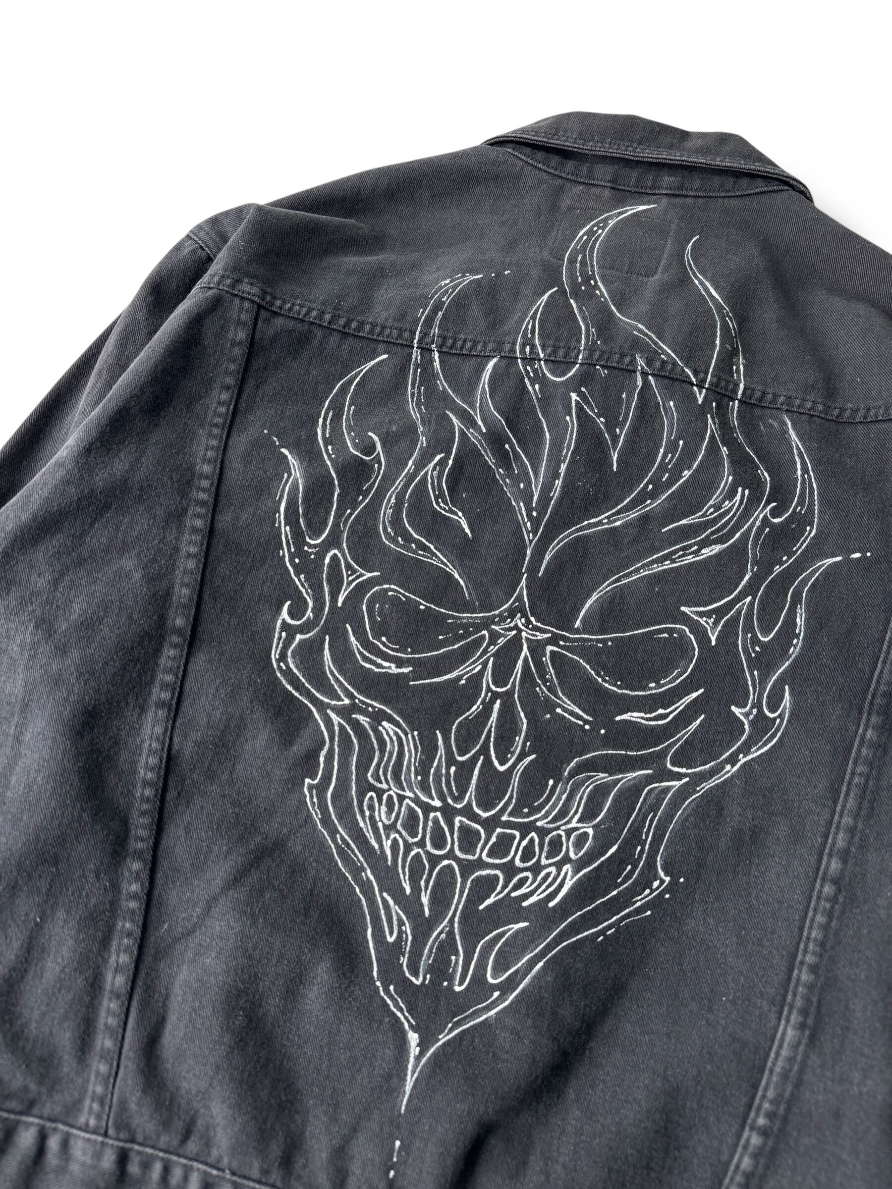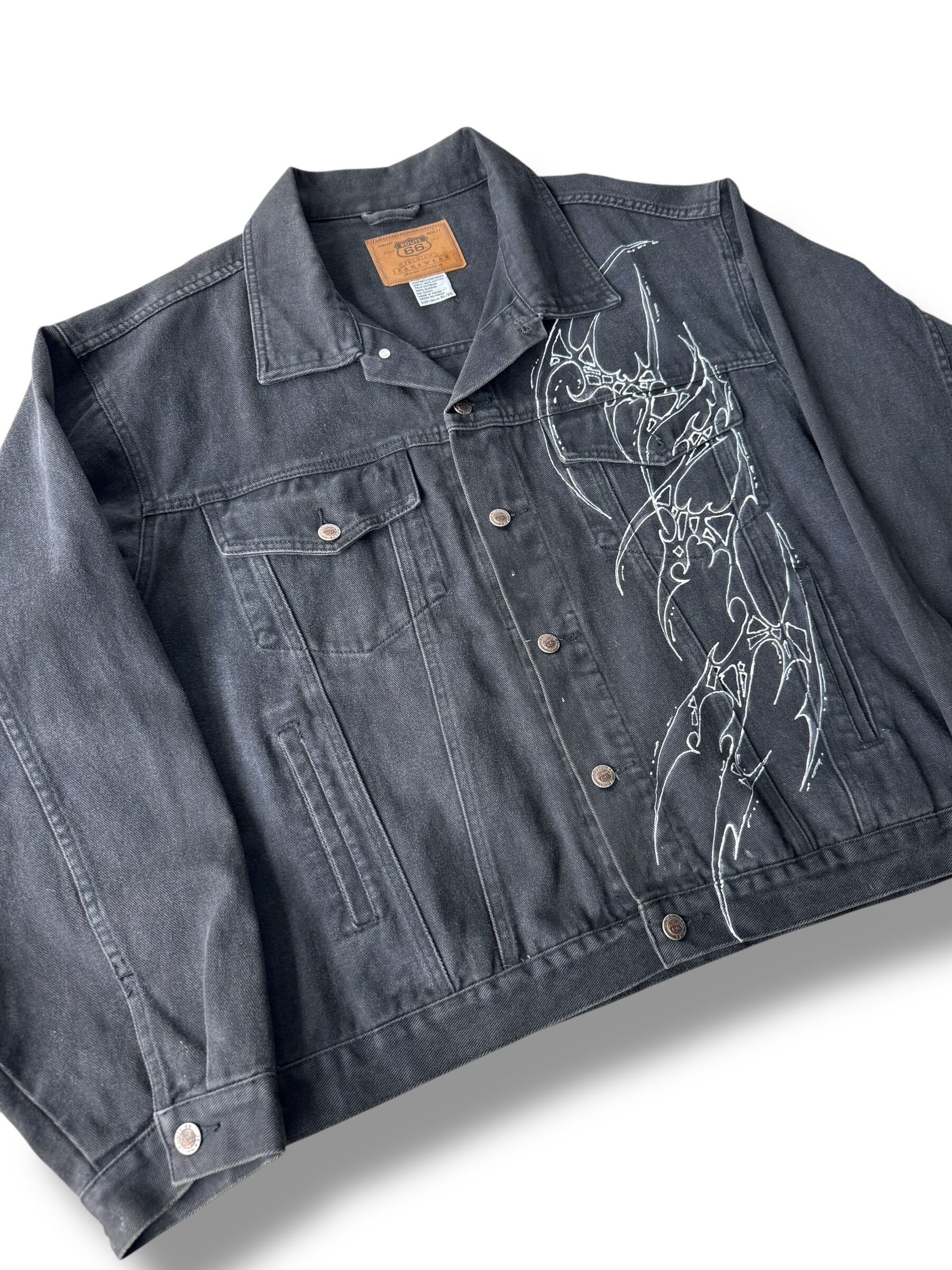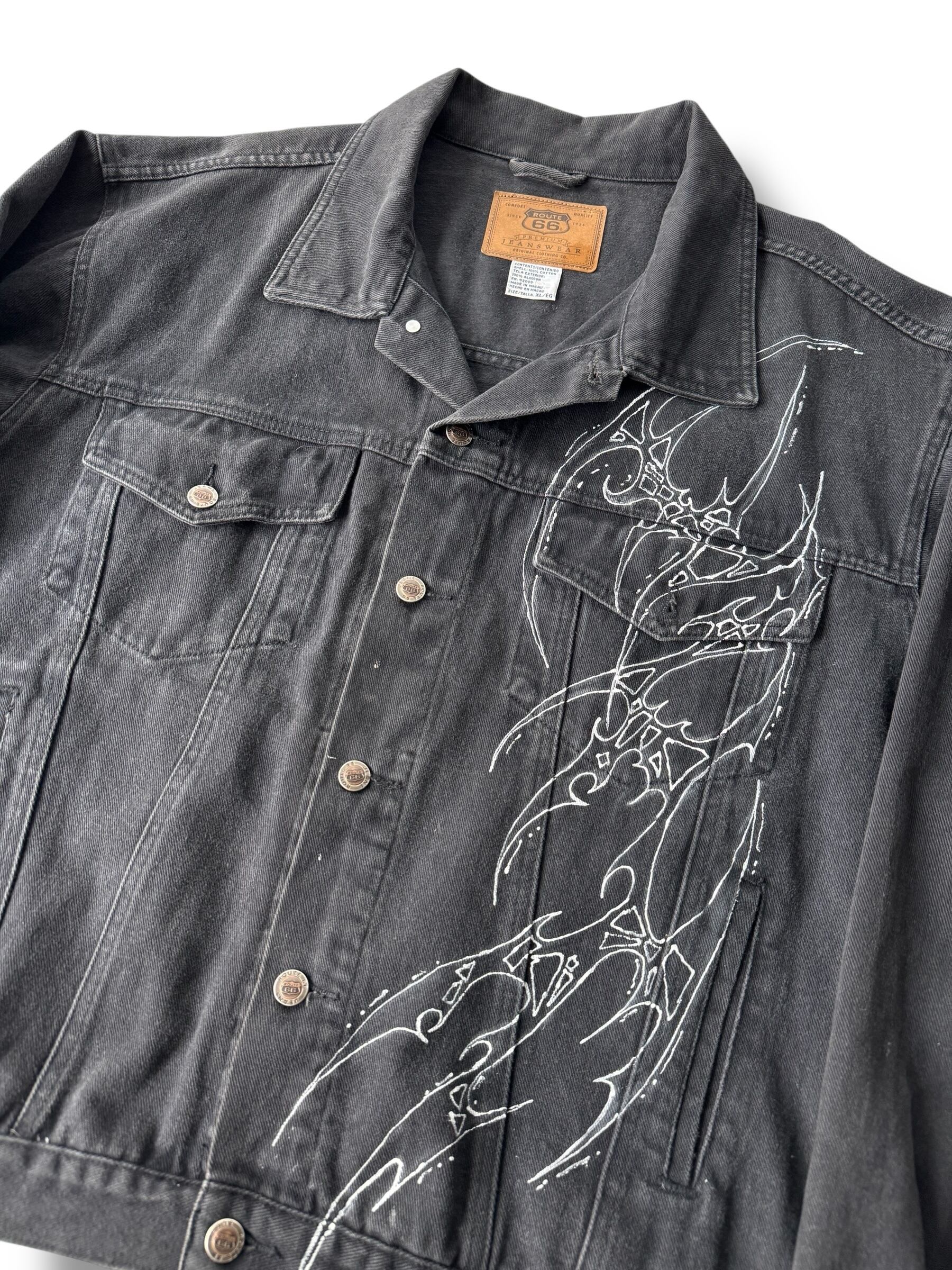 ♾ROUTE66♾ hand drowning design denim tracker jacket size XL/EG