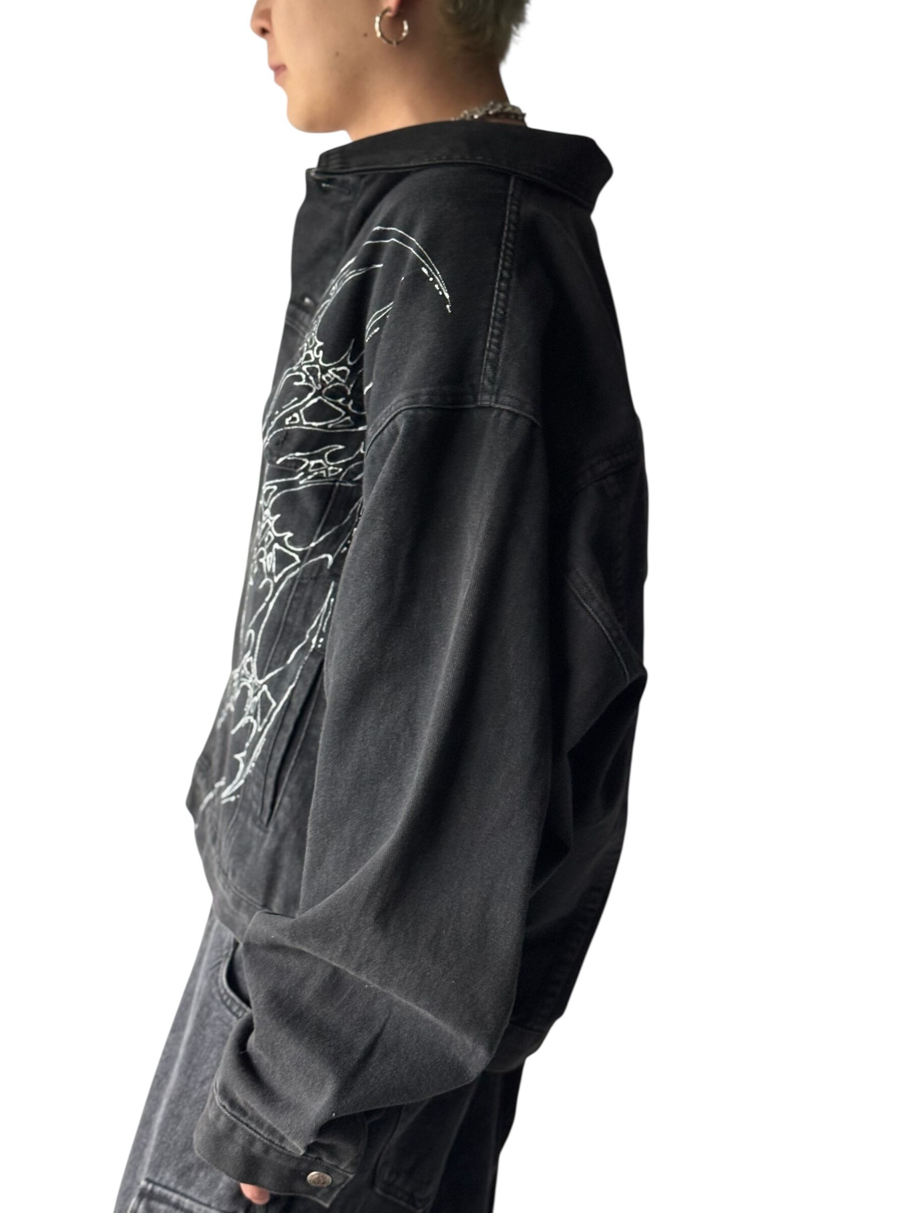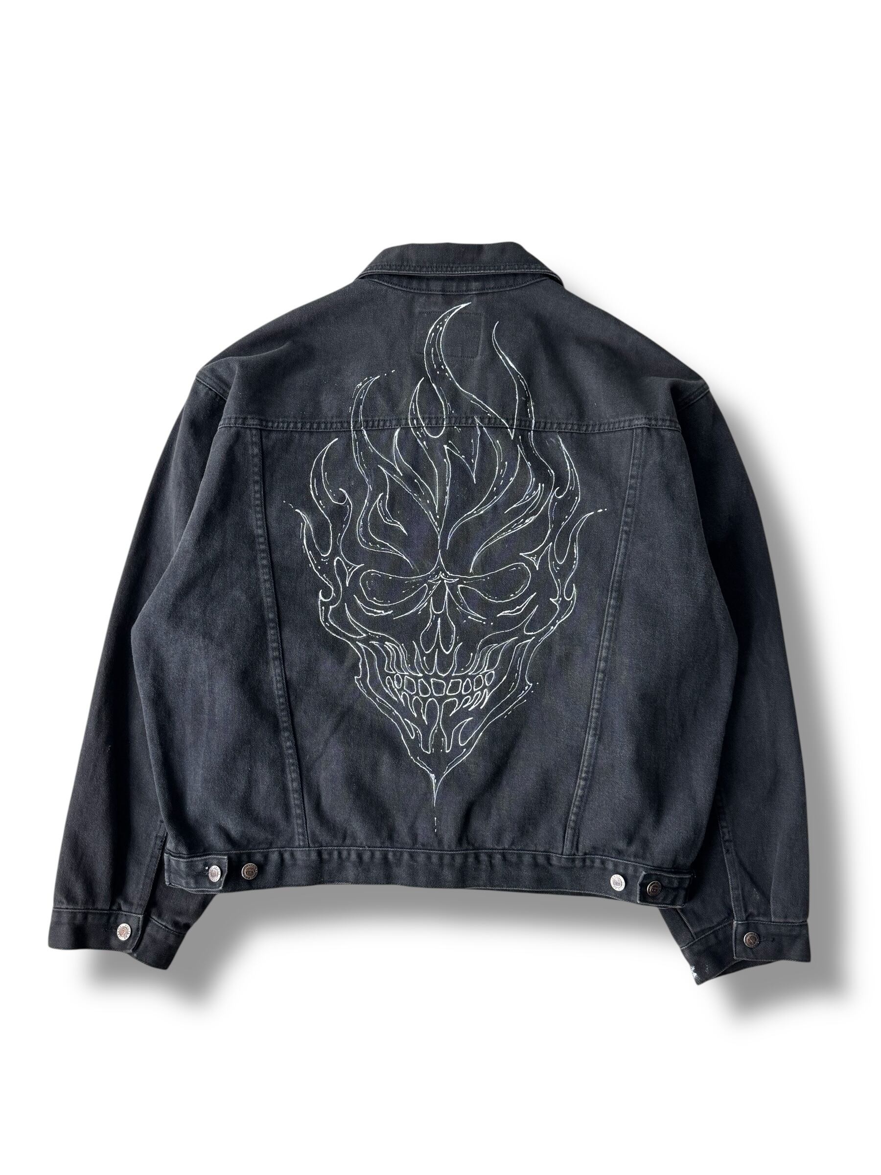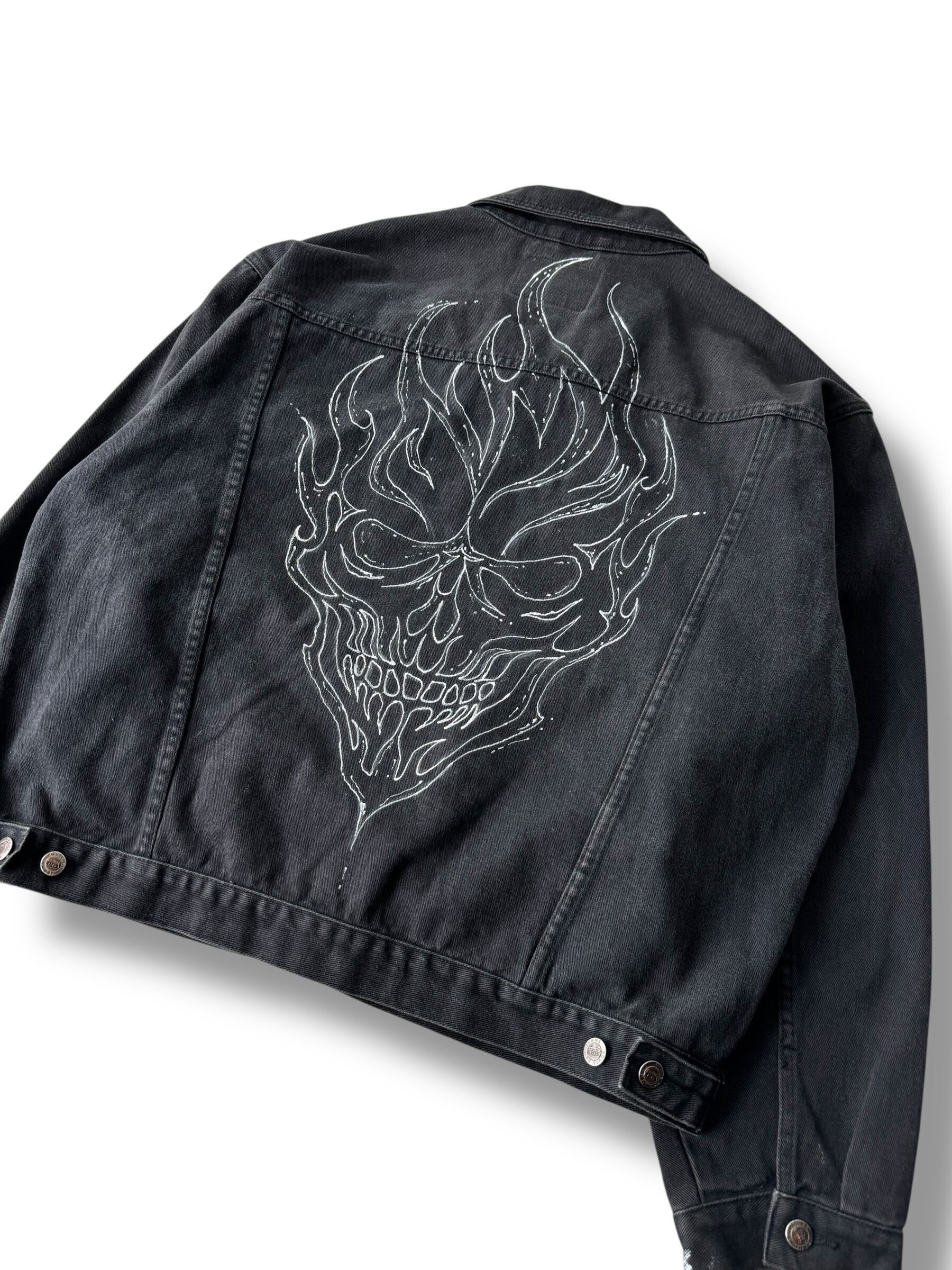 ♾ROUTE66♾ hand drowning design denim tracker jacket size XL/EG