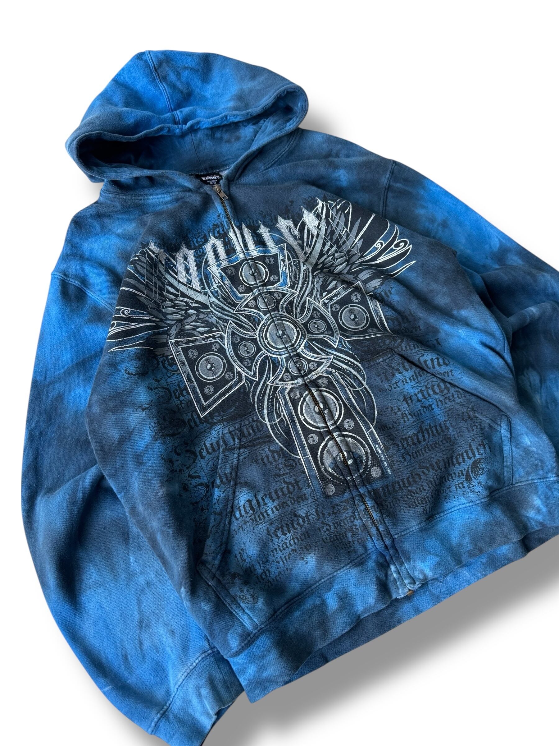 ボディのタイダイ柄にフロントにはクロスがスピーカーになったユニークなモチーフが載せられており背面に薄らオールドイングリッシュのテキストがデザインされた抜かりなしの1着‼️