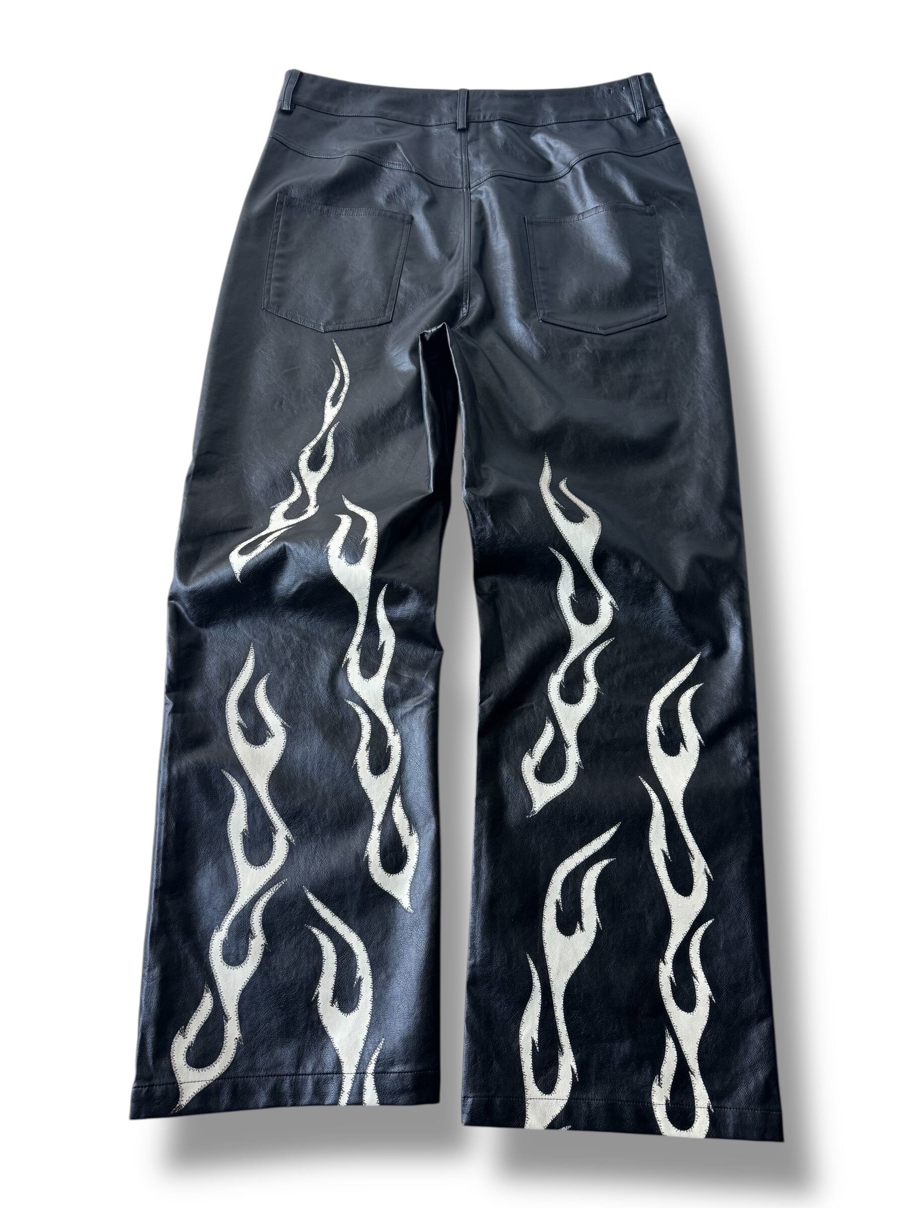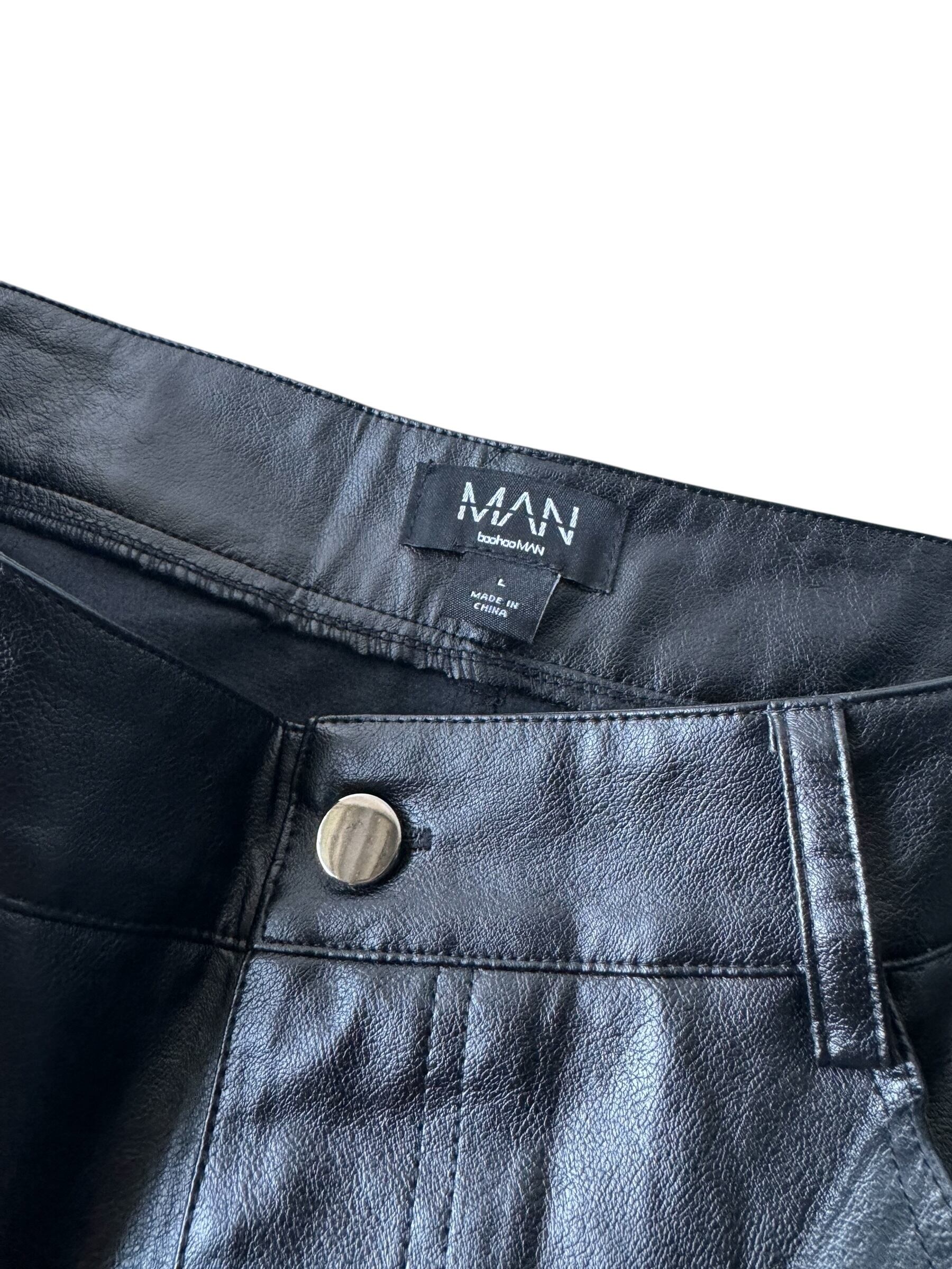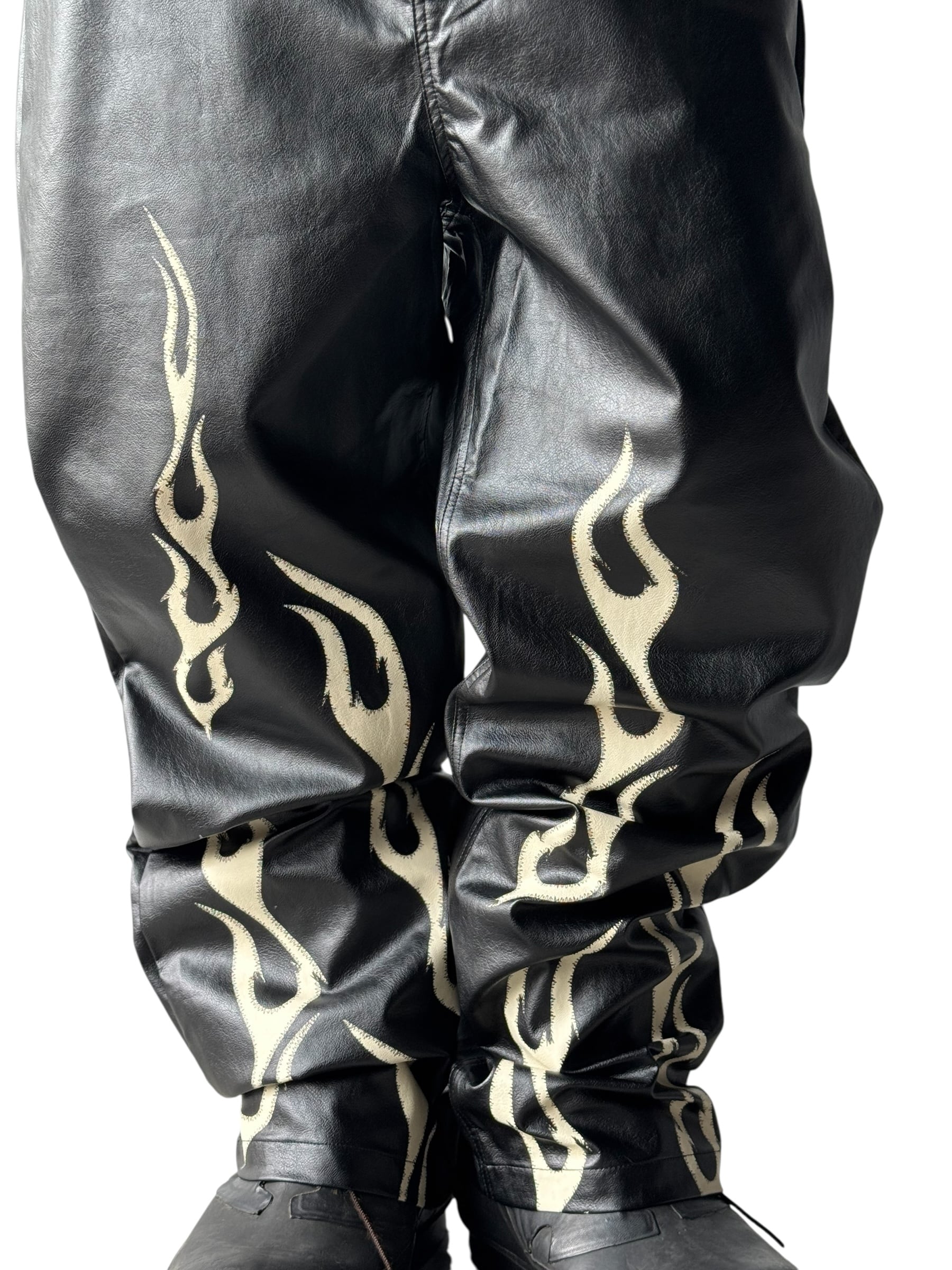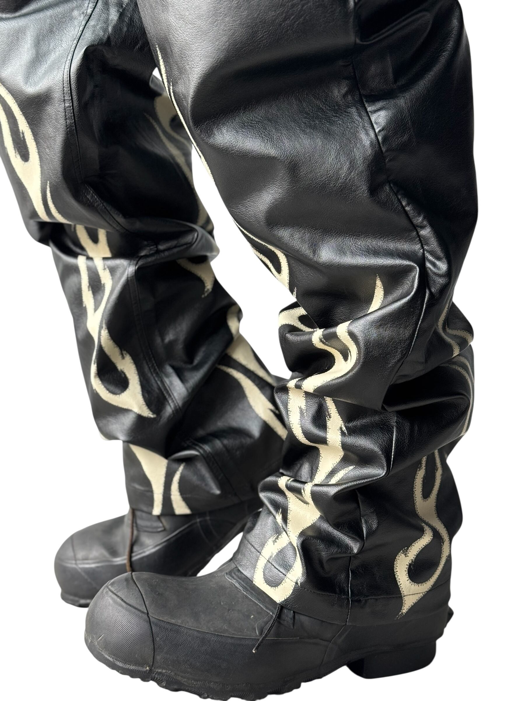 ♾boohoo MAN♾ fire pattern black wide pu leather pants SIZE L