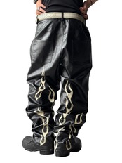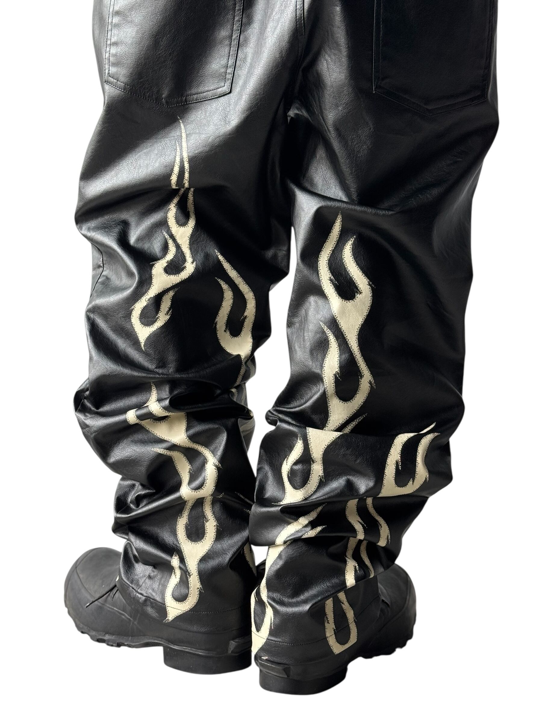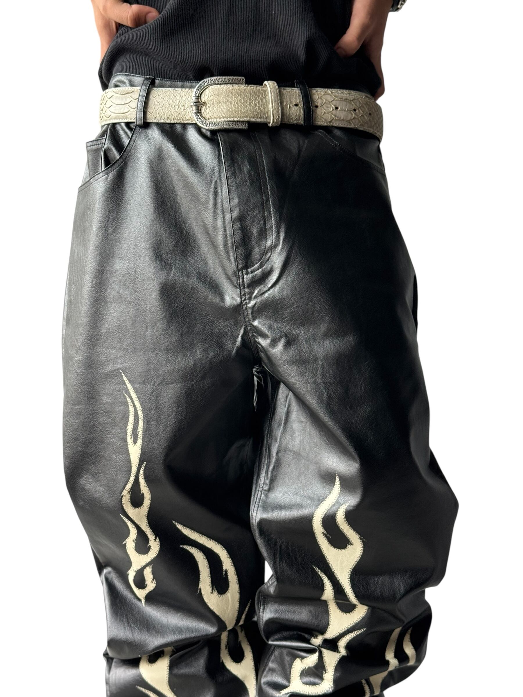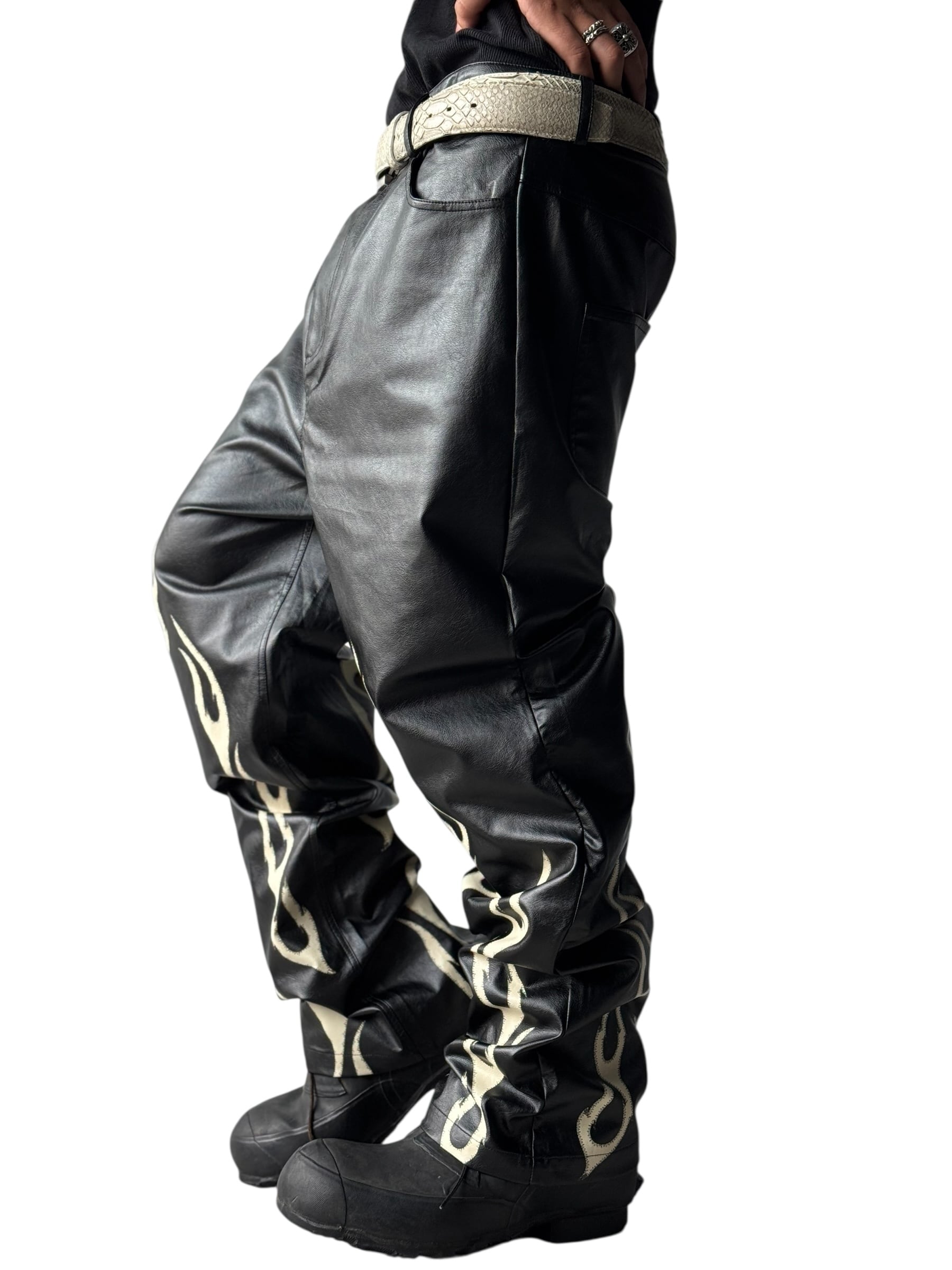 ♾boohoo MAN♾ fire pattern black wide pu leather pants SIZE L
