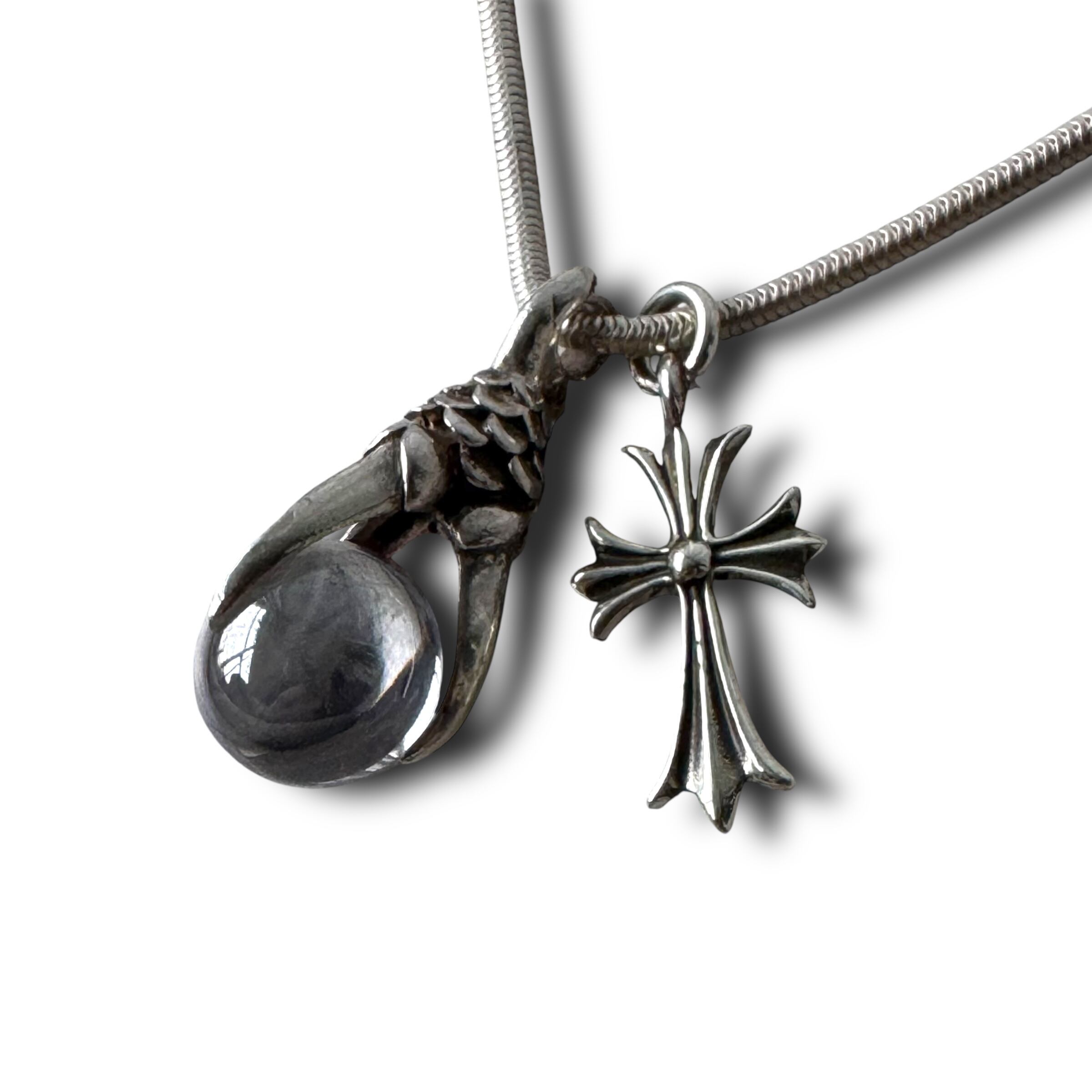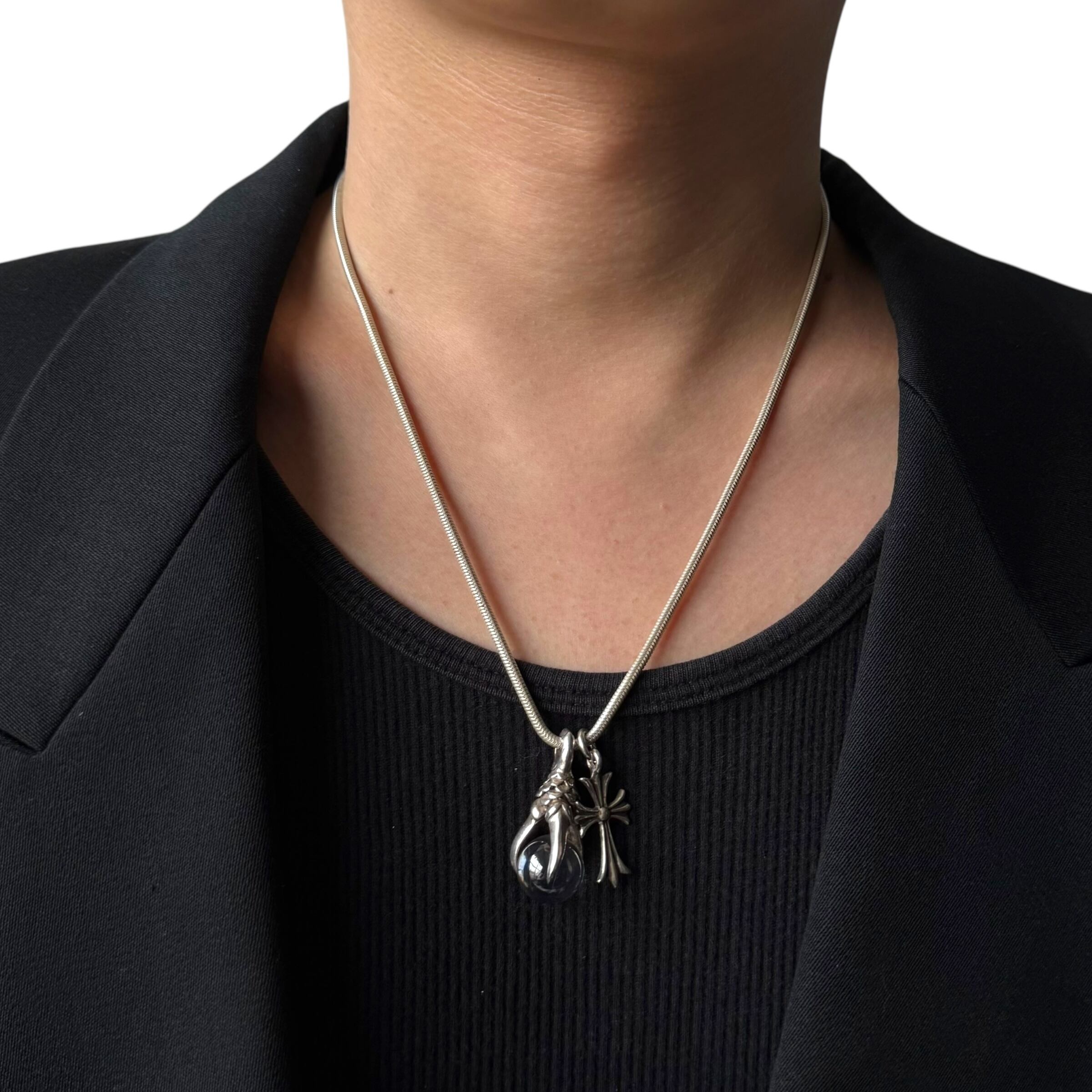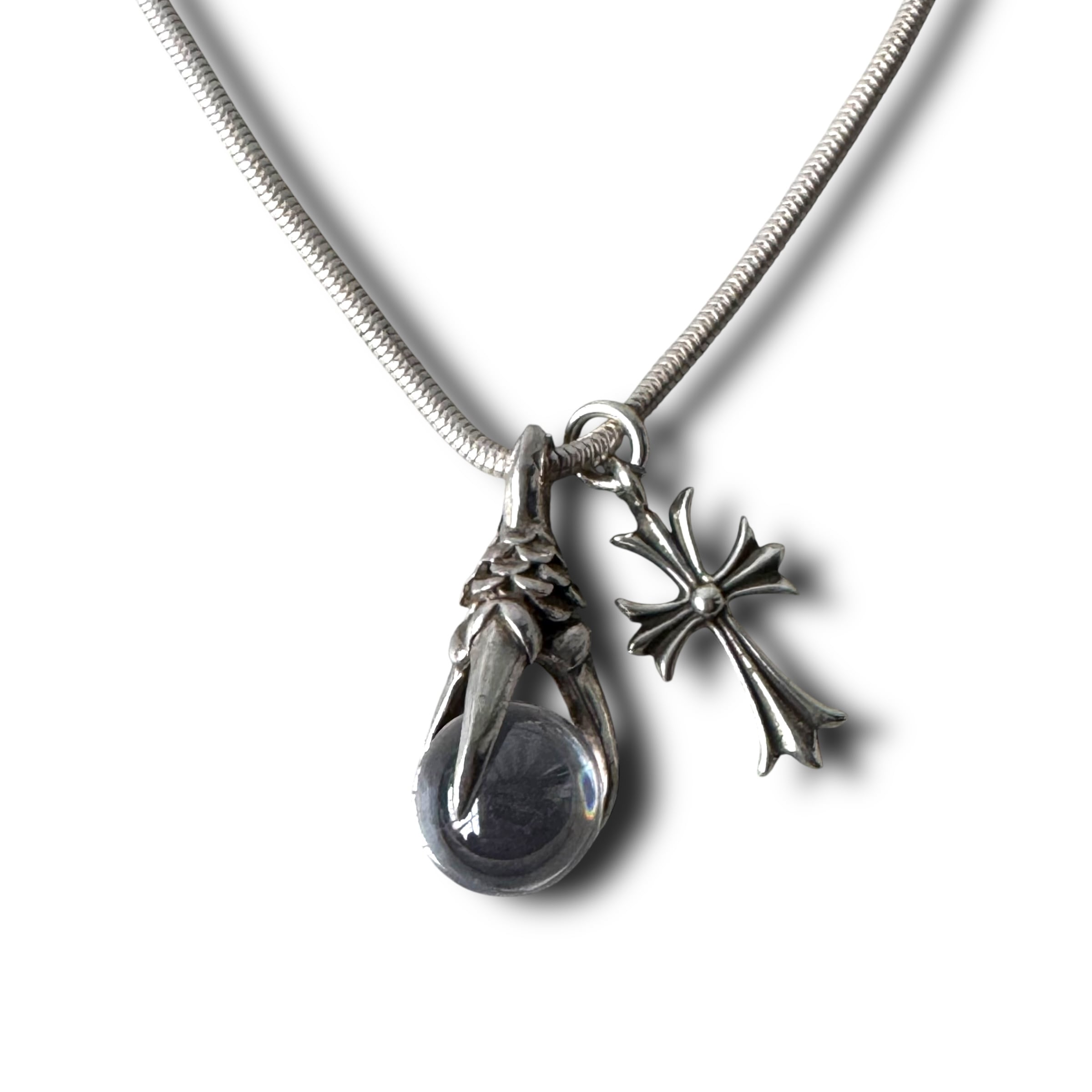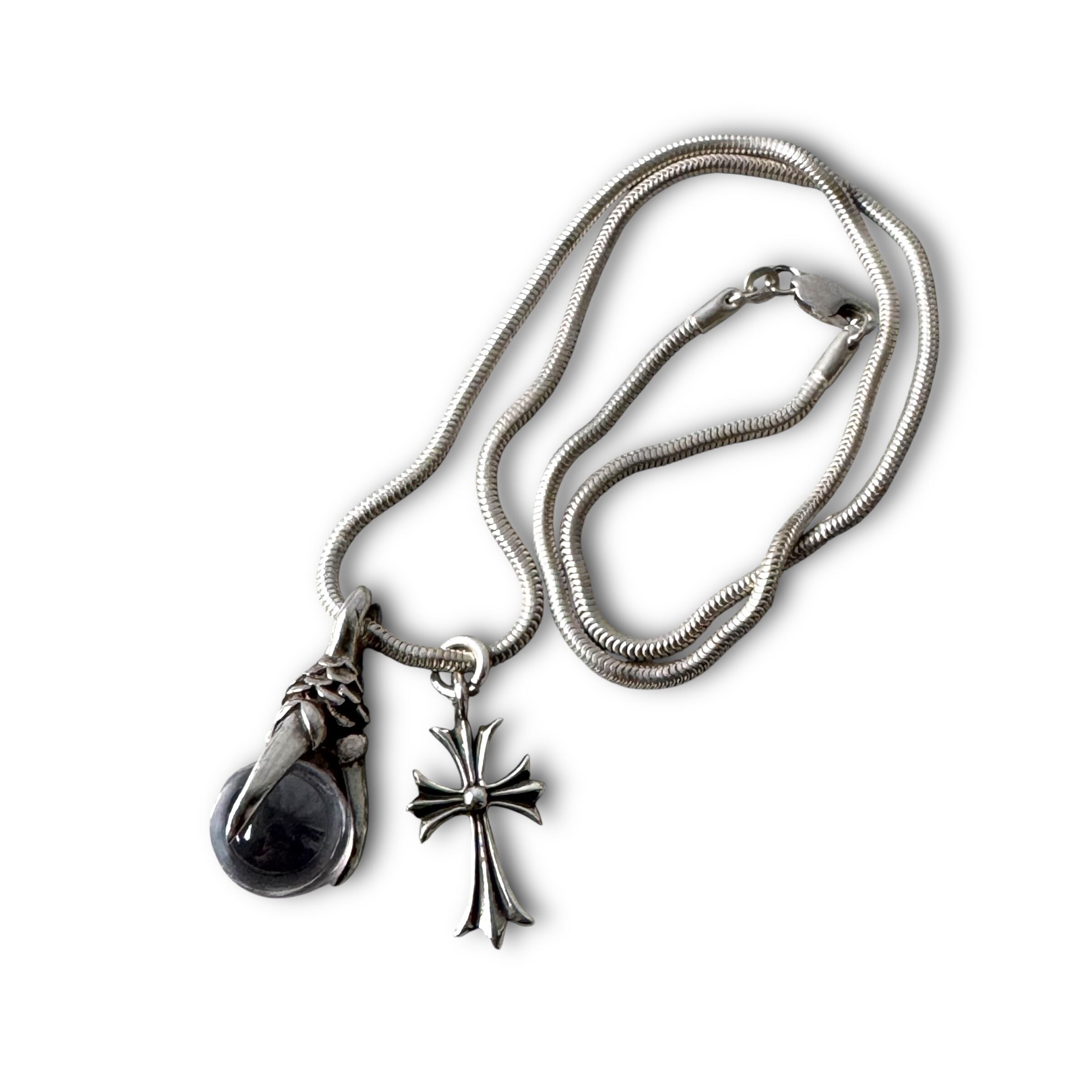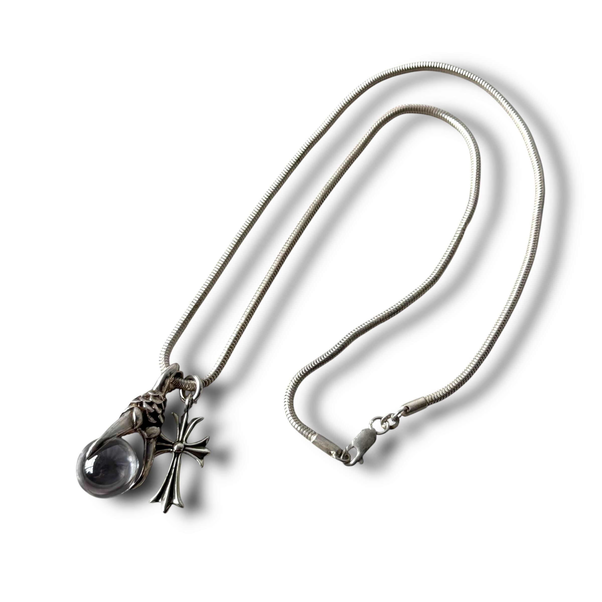 ♾vtg sv jewelry♾ dragon claw crystal n' cross motif w top design necklace sv925