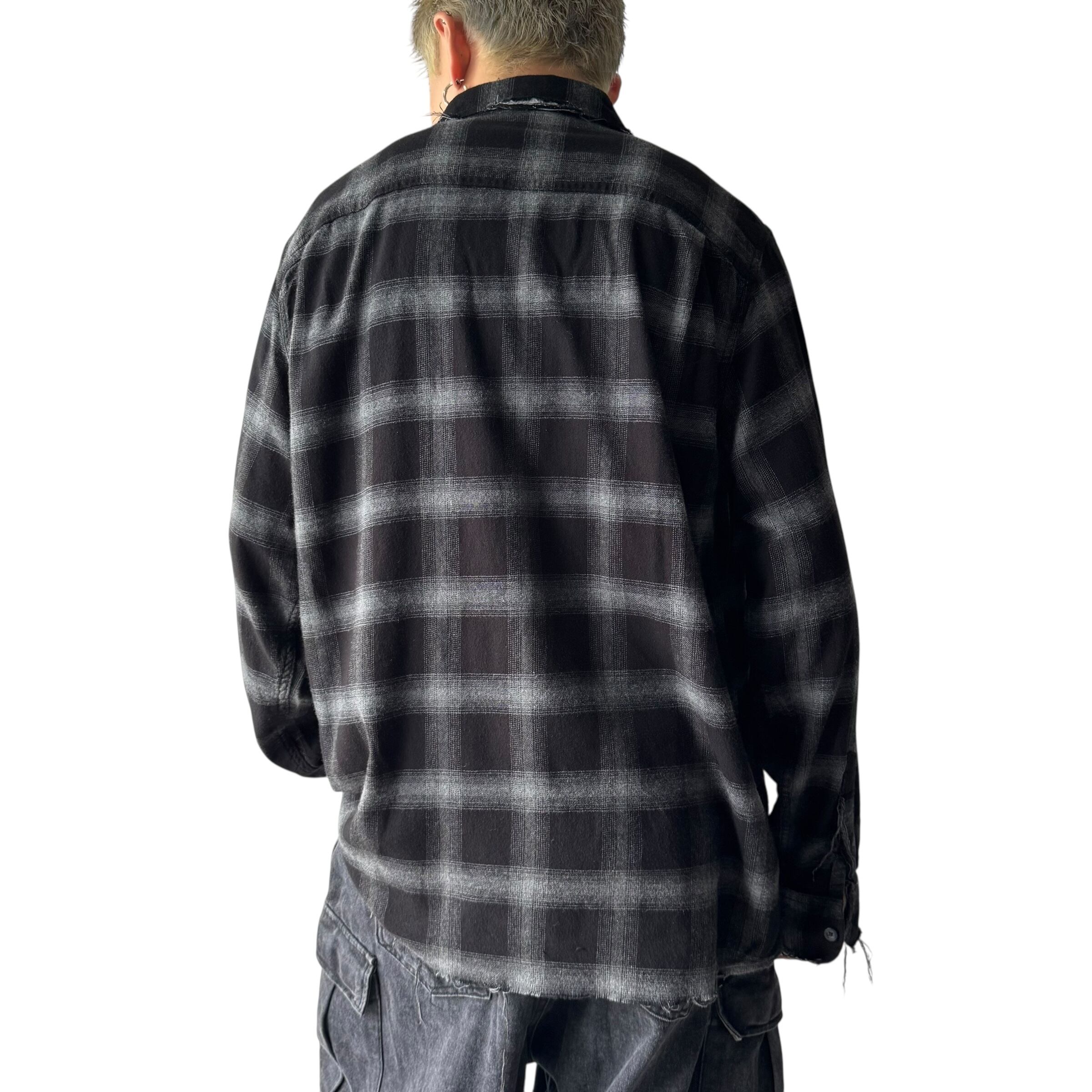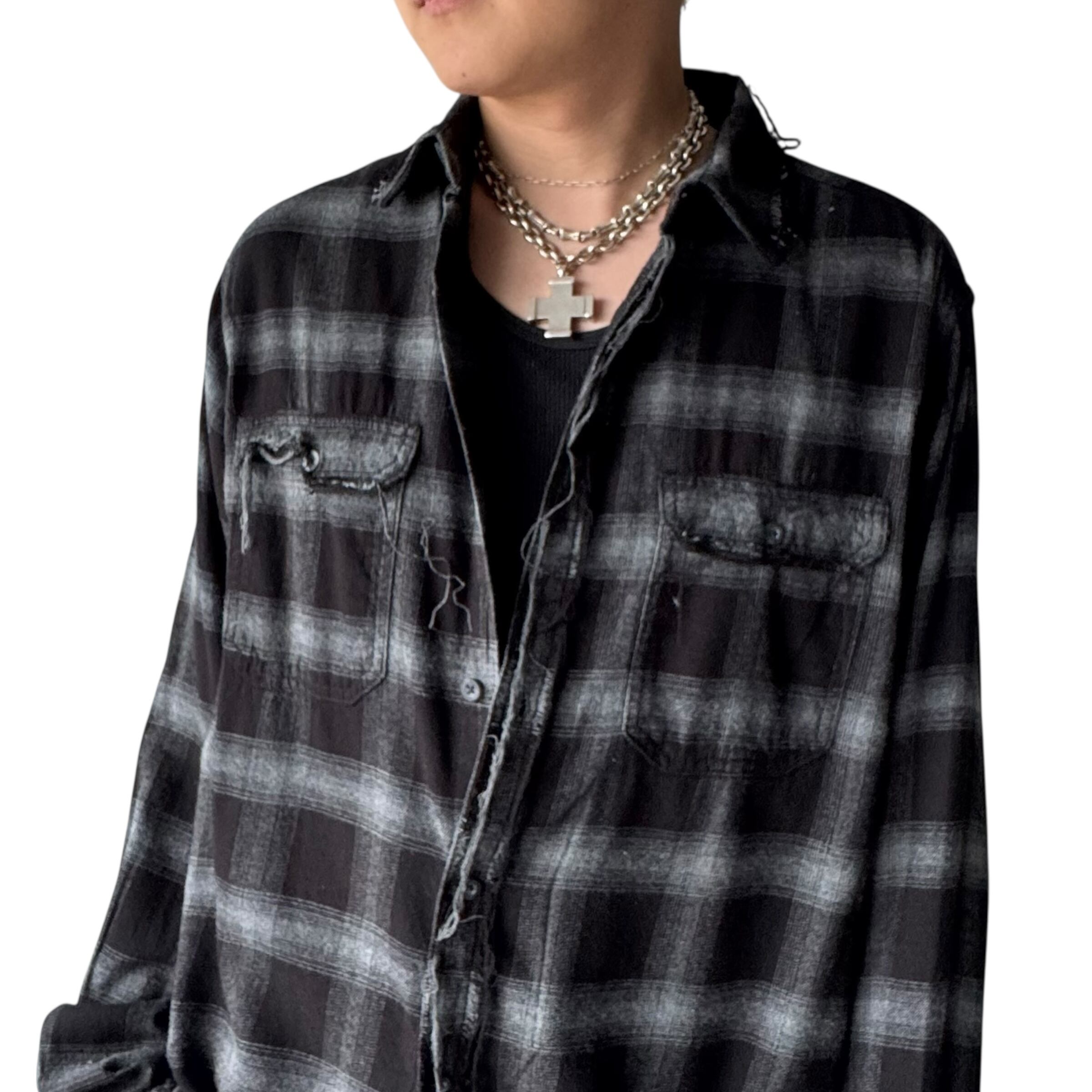 ダメージ加工が施されたデザイン性抜群なチェックシャツ✨️