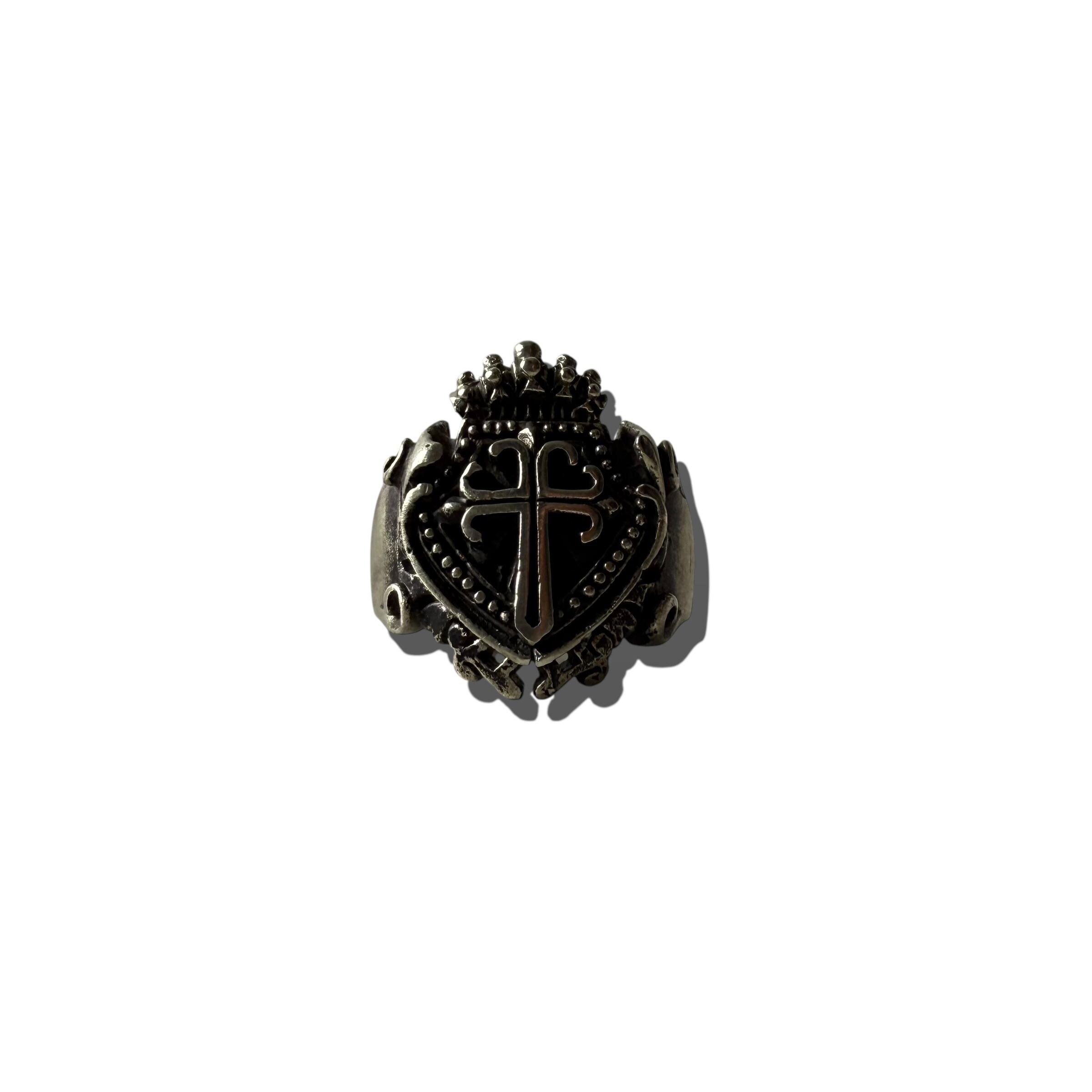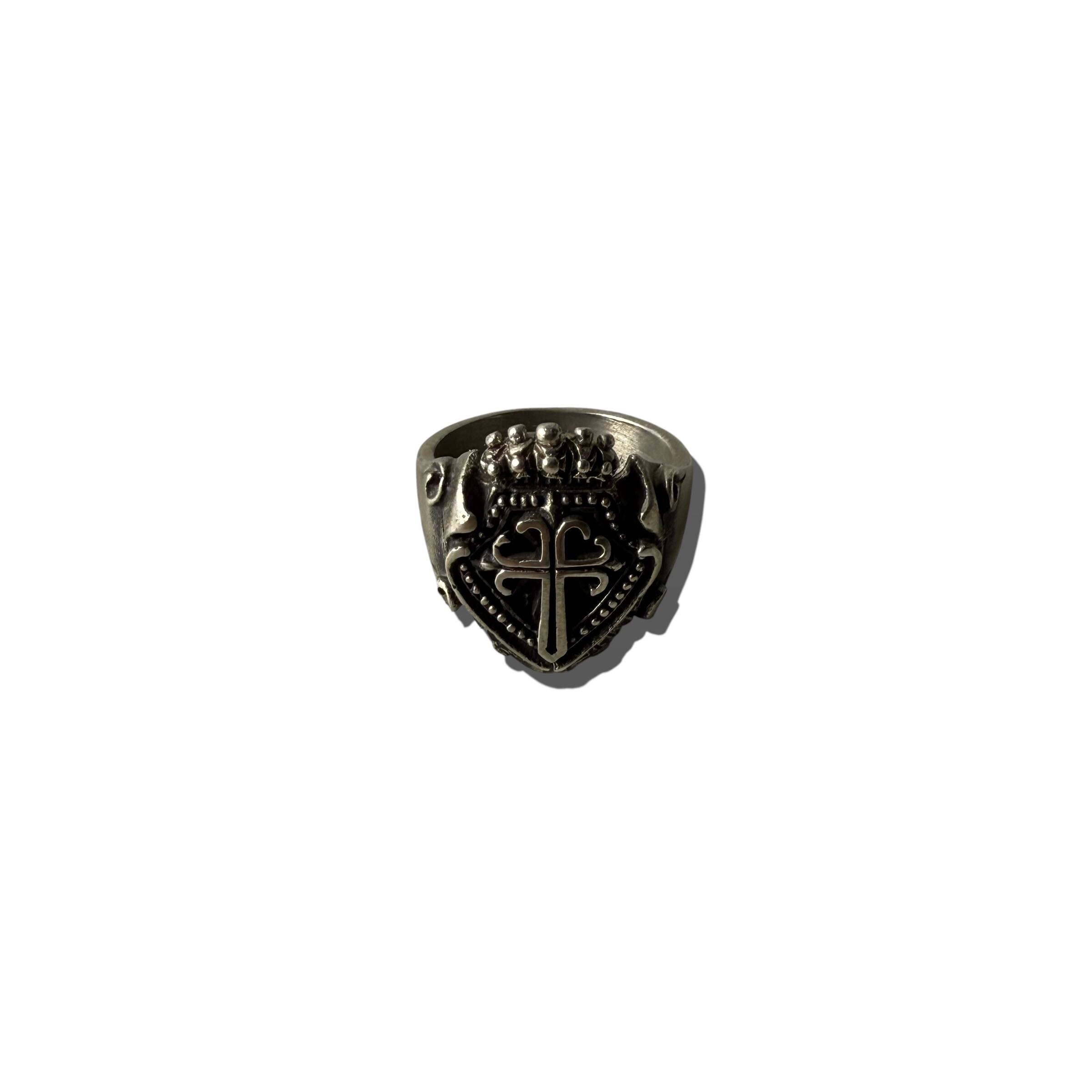 王冠の付いたシールドにクロスのモチーフをあしらったデザインが爆イケなワイドデザインリングの入荷✨️