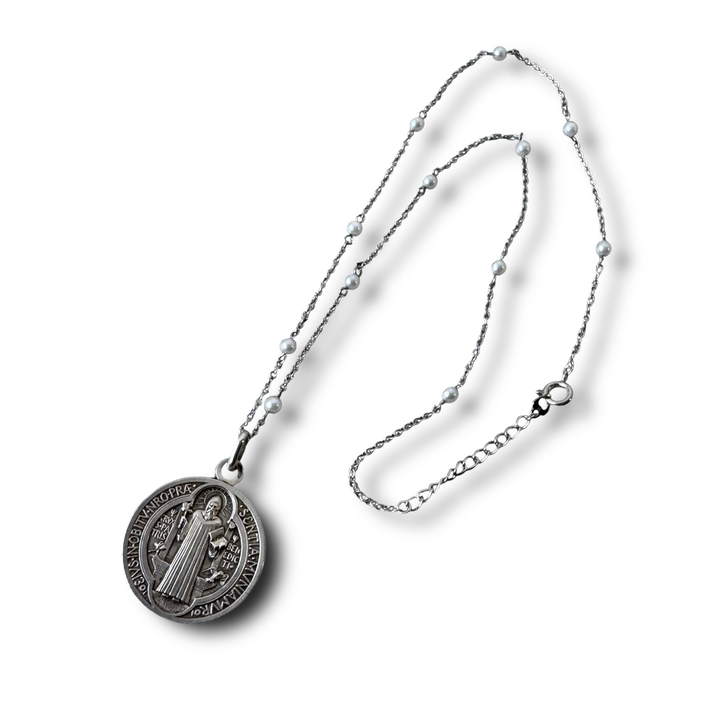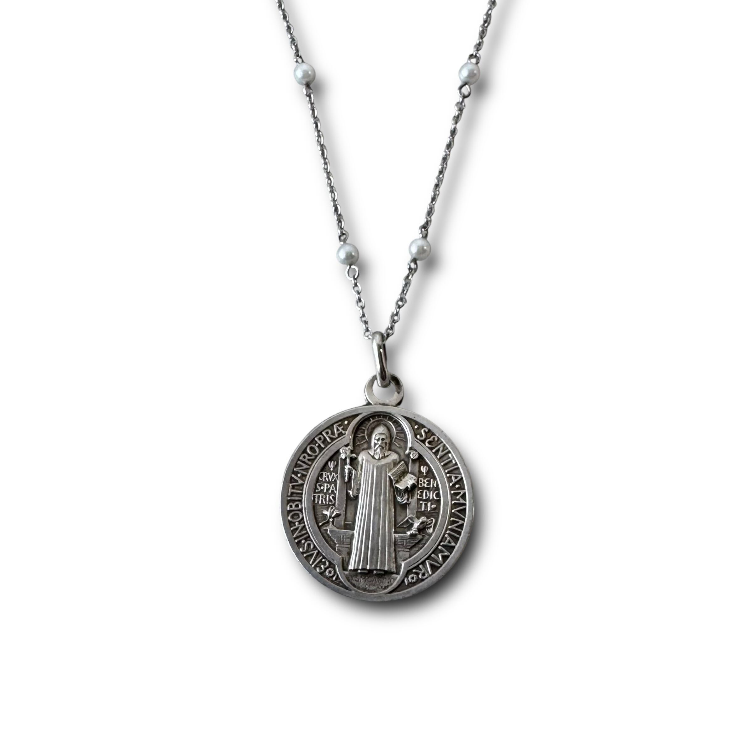 ♾vtg sv jewellery♾ Jesus motif coin design perl chain necklace sv925 ・