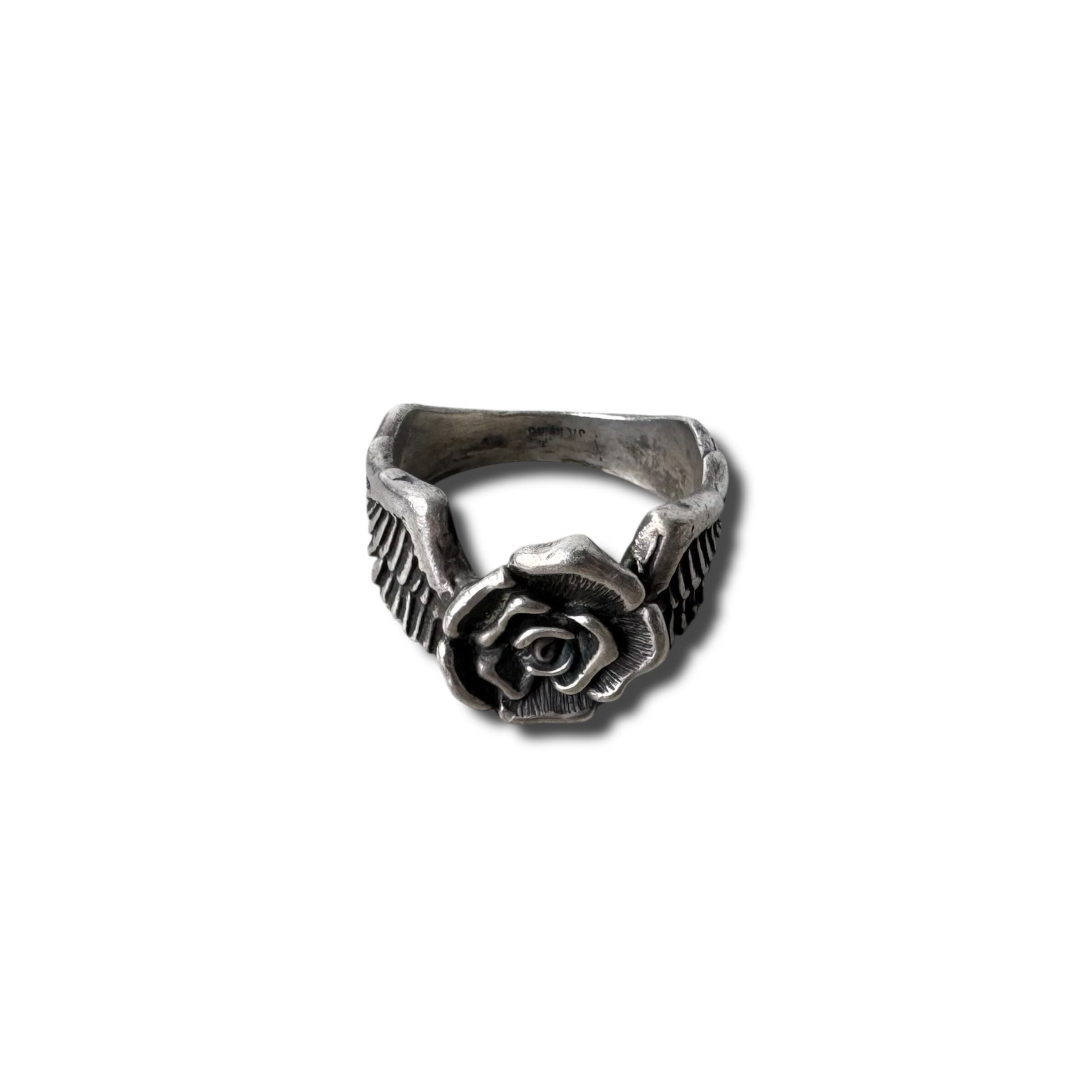 フラワーモチーフと両サイドの翼がかっこいいと可愛いの両方を兼ね揃えるデザインシルバーリング‼️