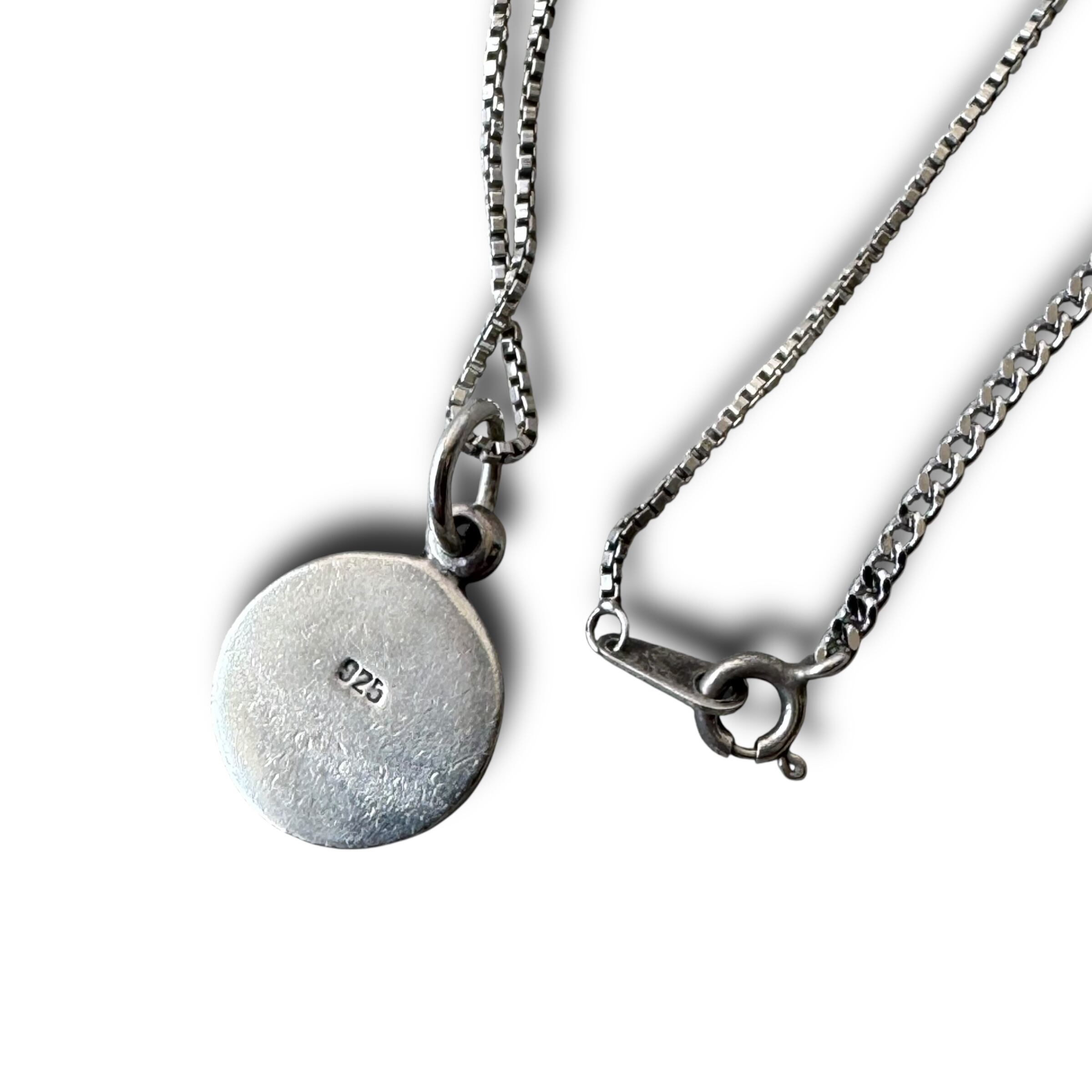 円状のプレートにフレアの立体モチーフがクールなデザインシルバーネックレス‼️