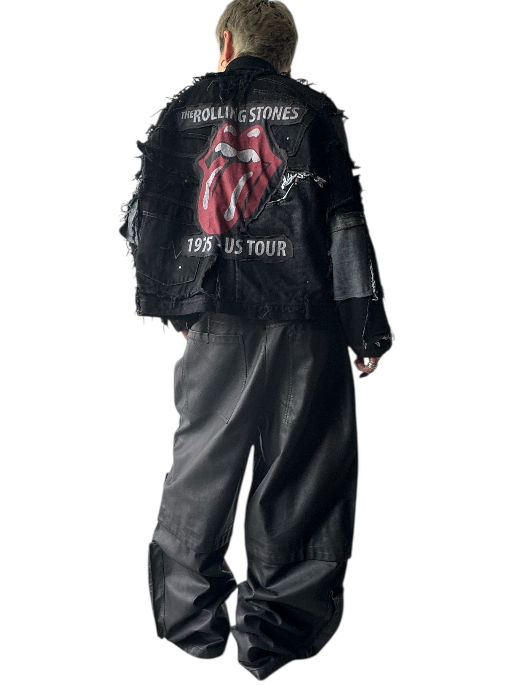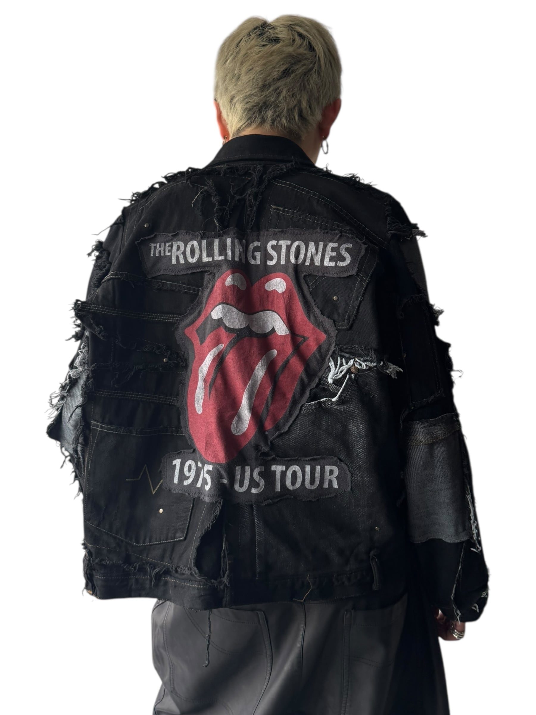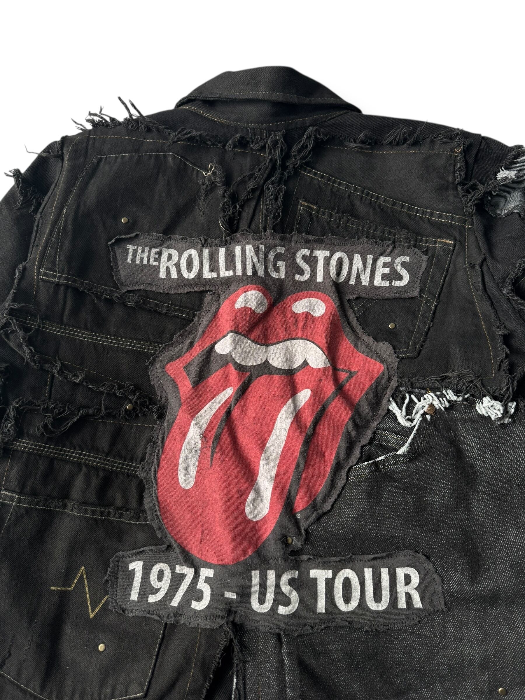 ♾ORIGINAL REMAKE♾ "ROLLING STONES" custom design black denim tracker jacket