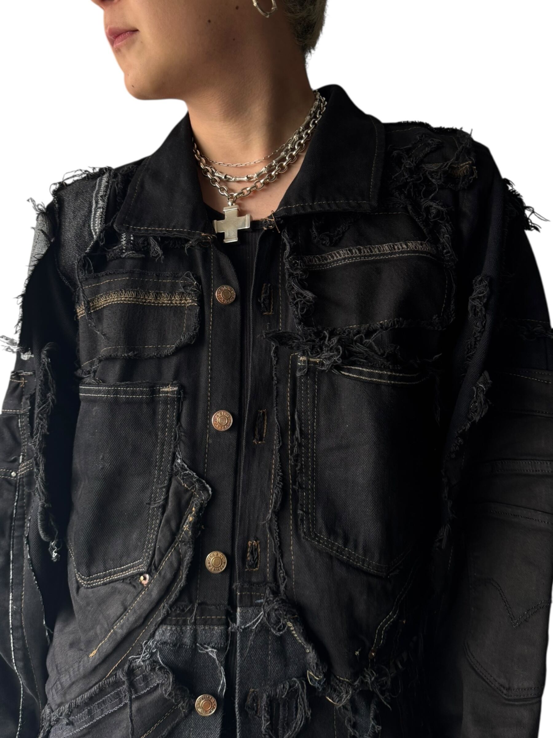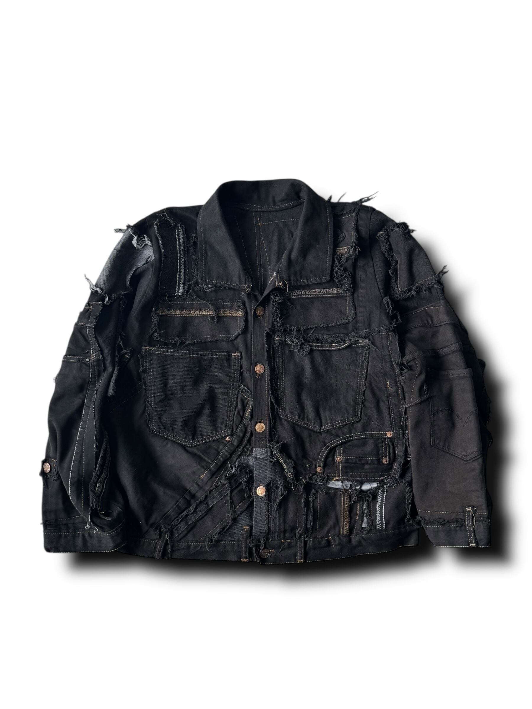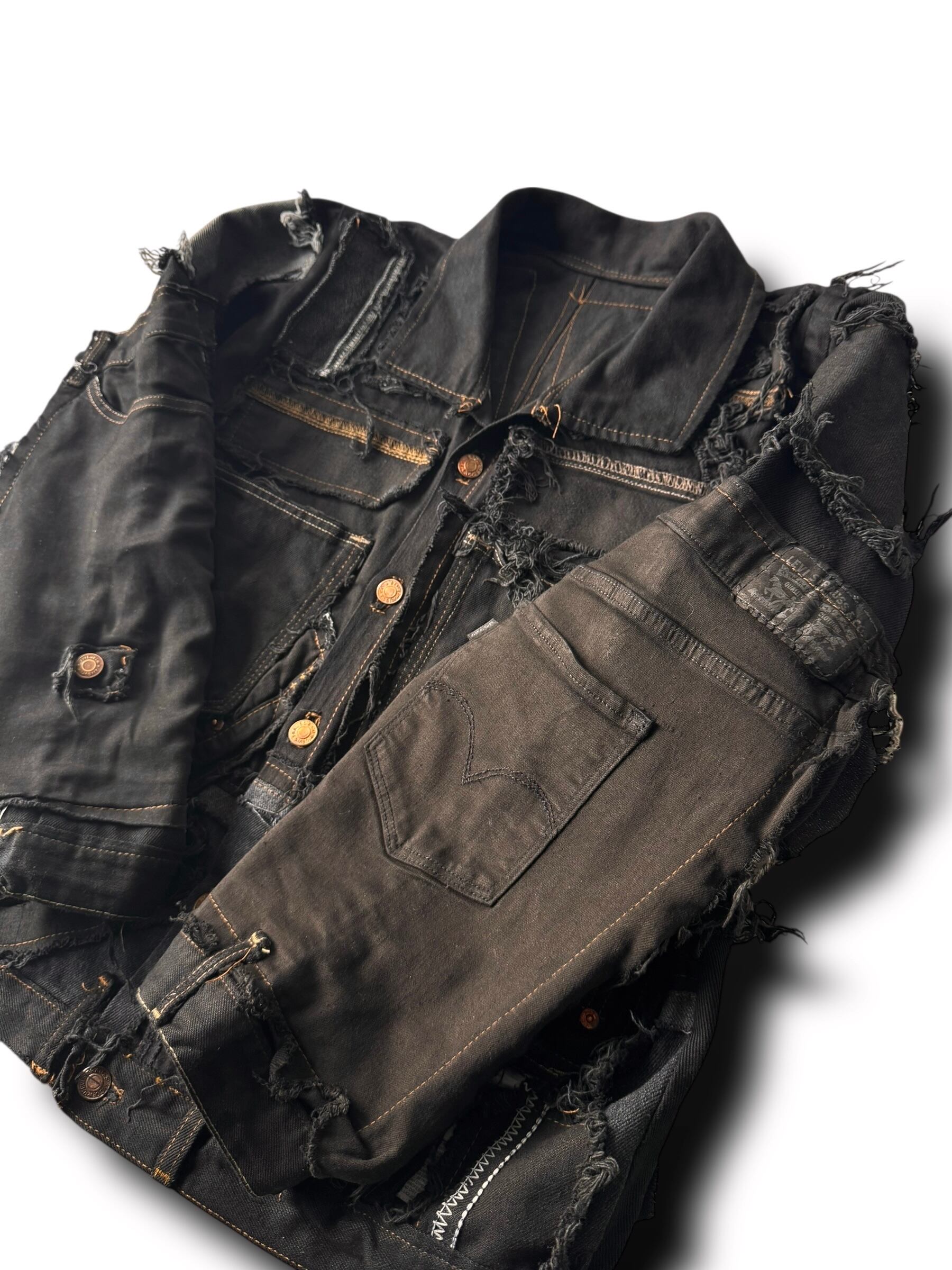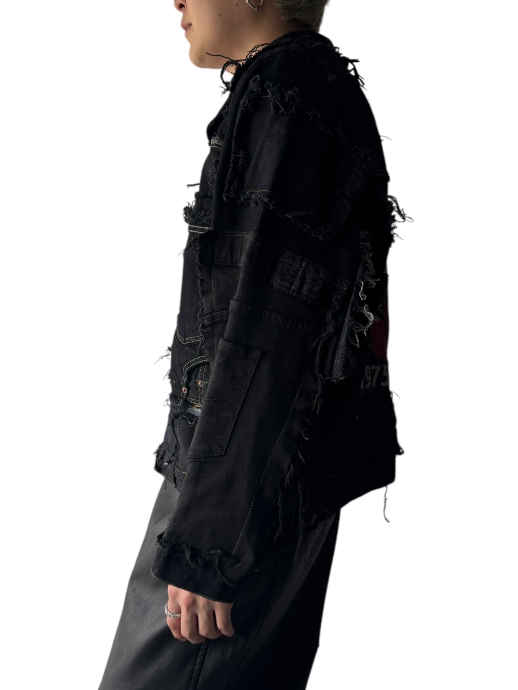♾ORIGINAL REMAKE♾ "ROLLING STONES" custom design black denim tracker jacket