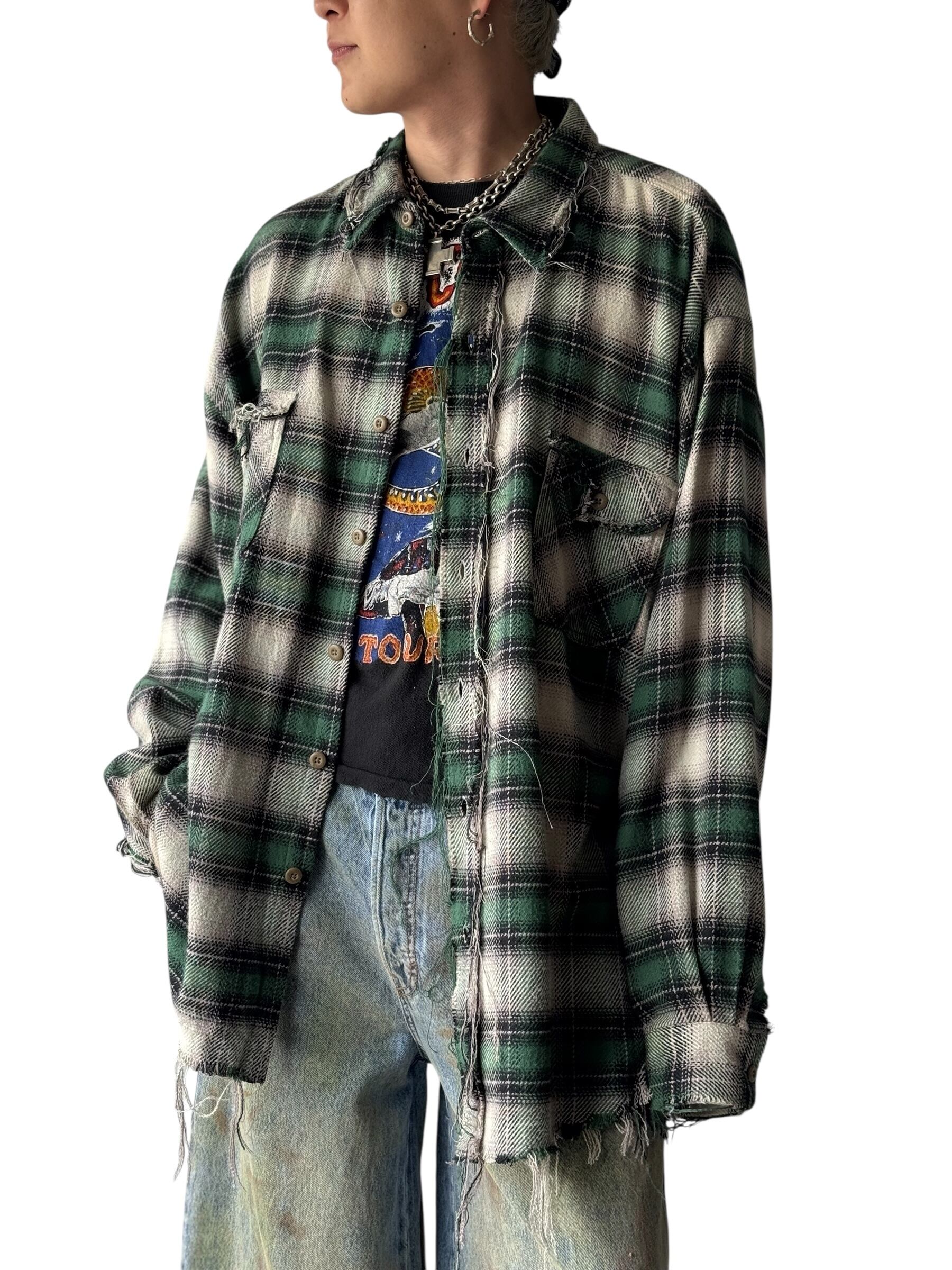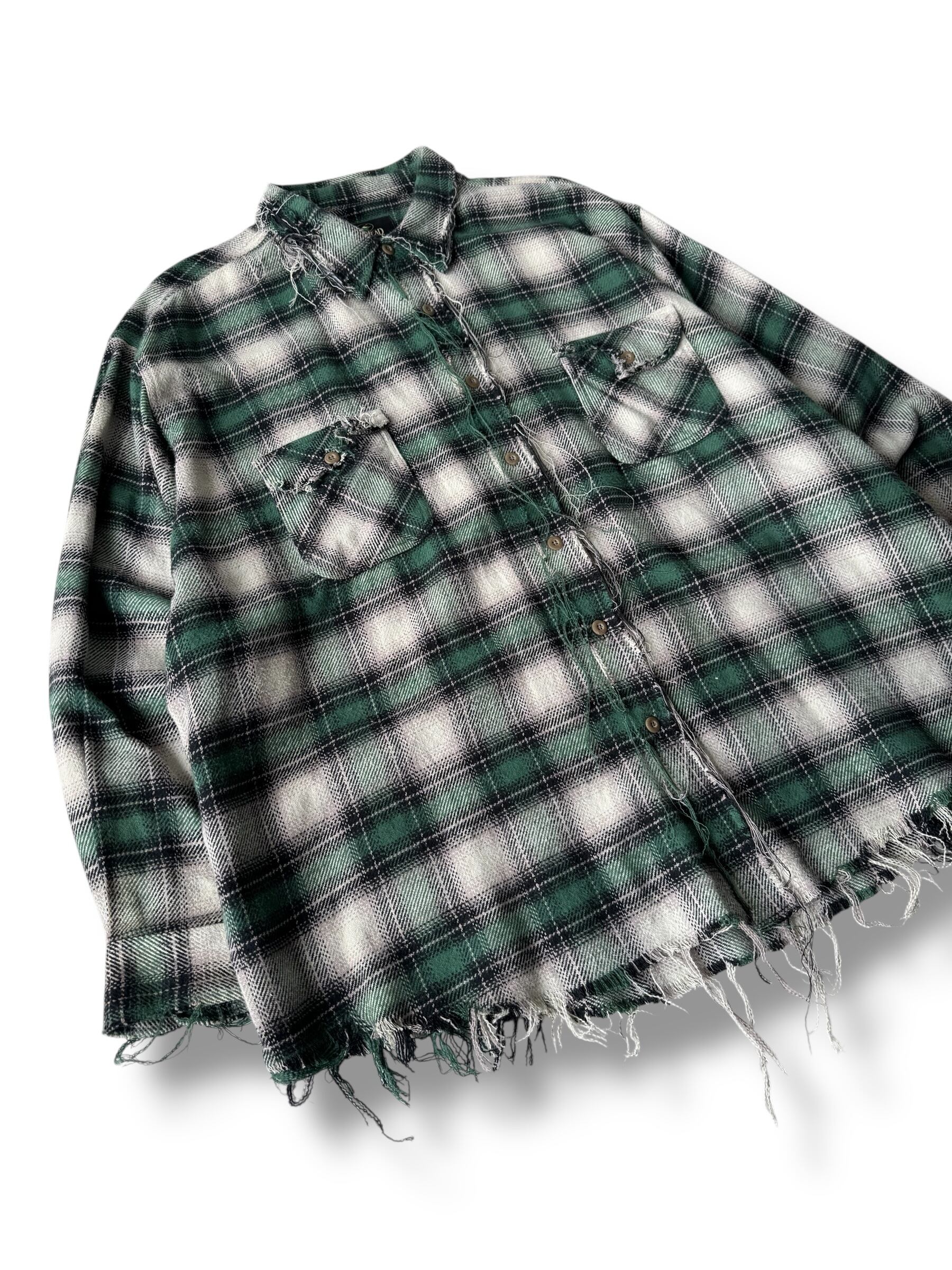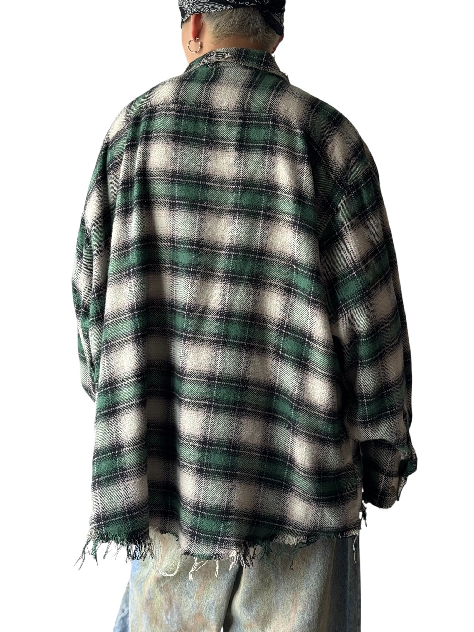 ♾️REDHEAD♾️ Design crushed ombré check shirt 〜heavy nel〜 size 3XL