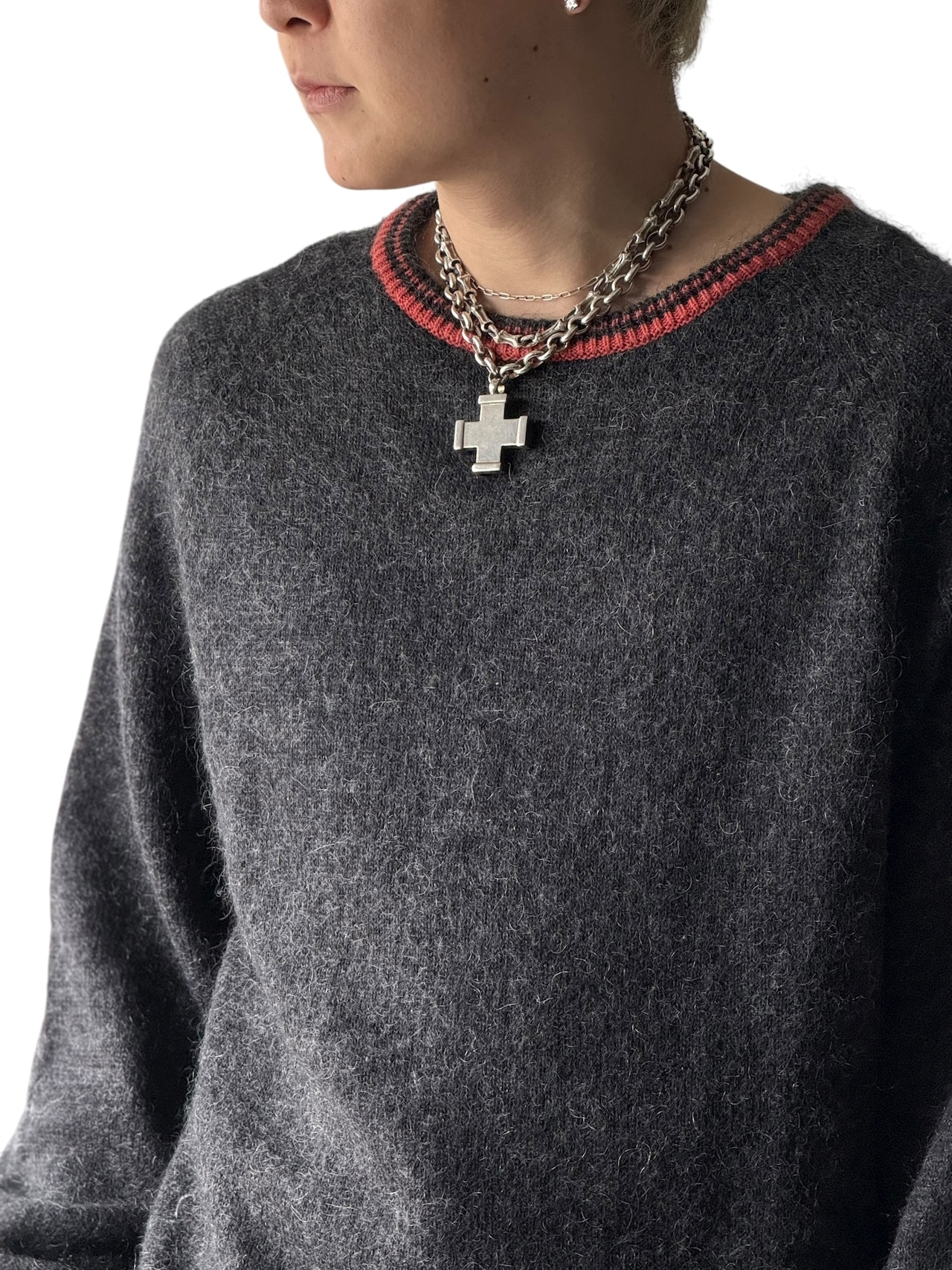 肩落ち加減などシルエットの良さが1番出るディテール❣️ モヘア表記にコットンも混合しているので着用した時のチクチク感は少なめでモヘアのしっかり肉厚な風合いを楽しめる1枚☺️☝️✨