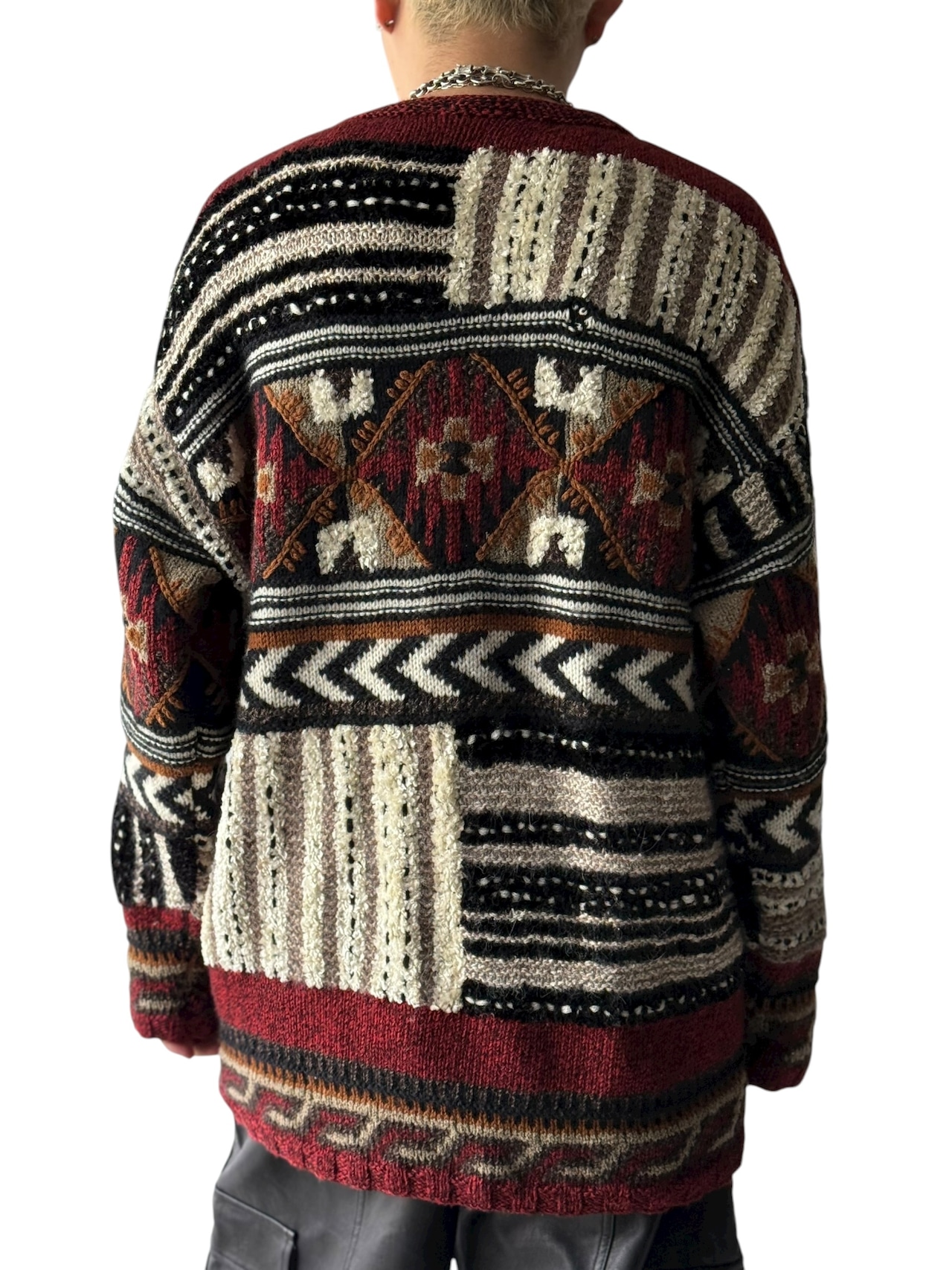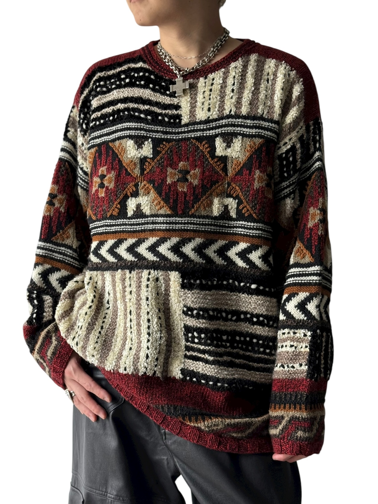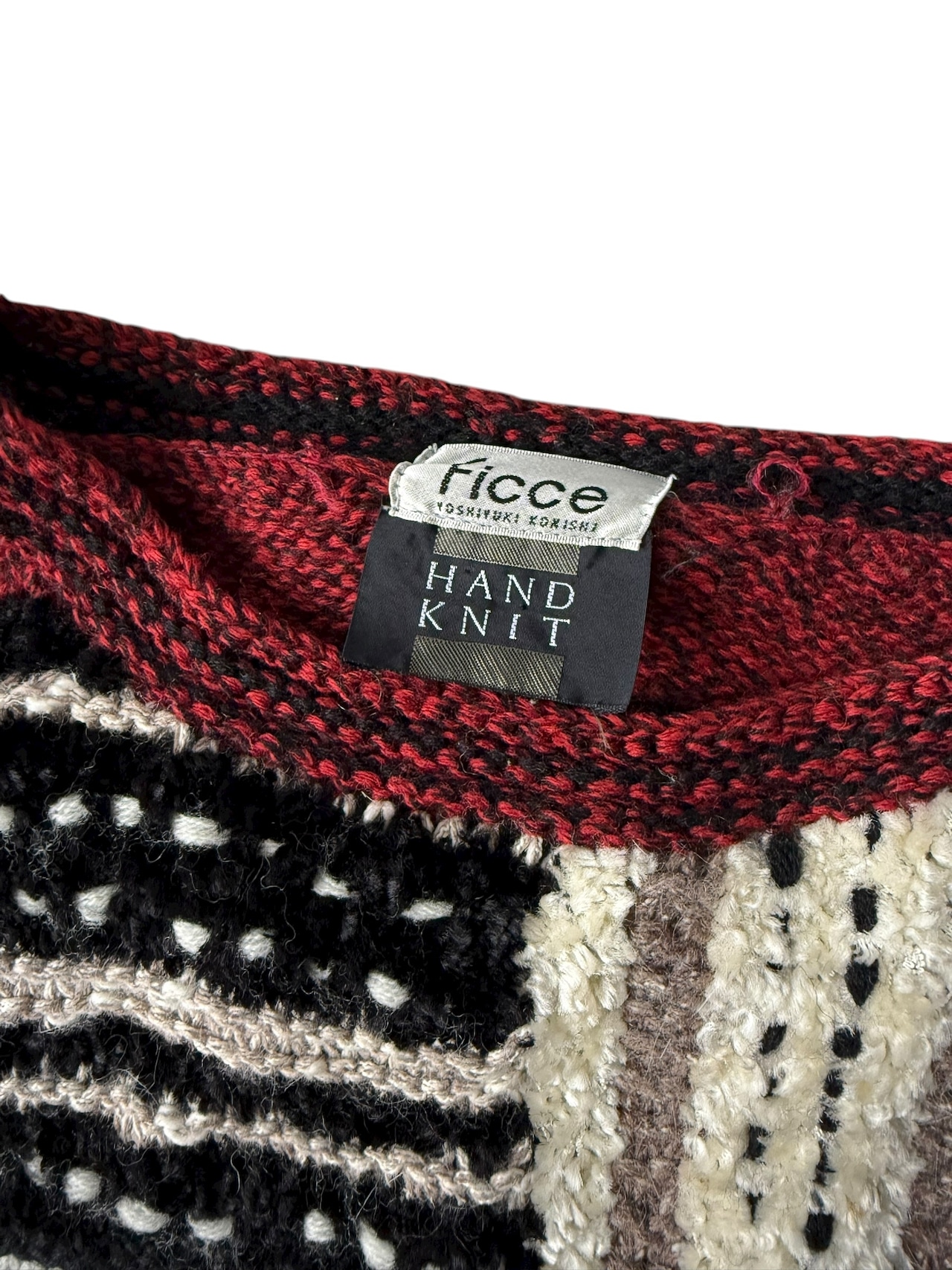 【80s Ficce】 "YOSHIYUKI KONISHI" Mix pattern HAND KNIT sweater