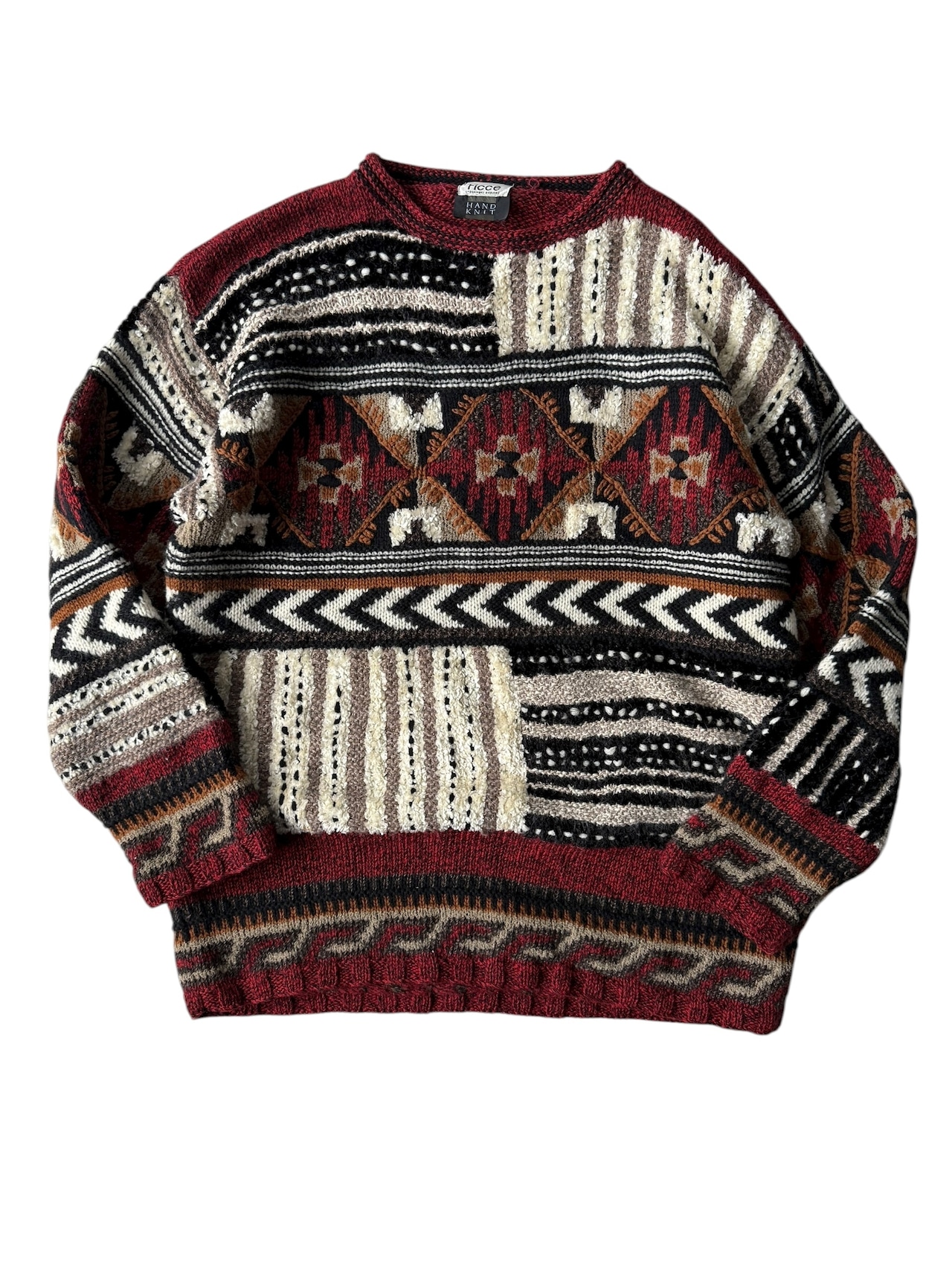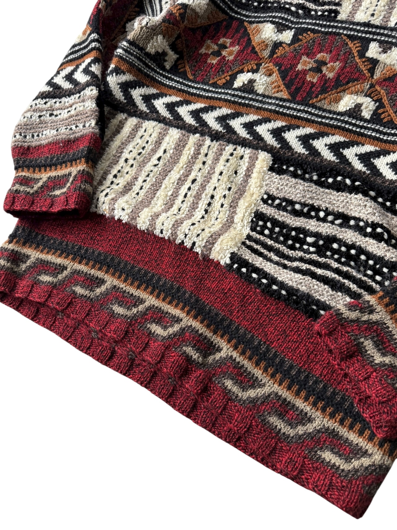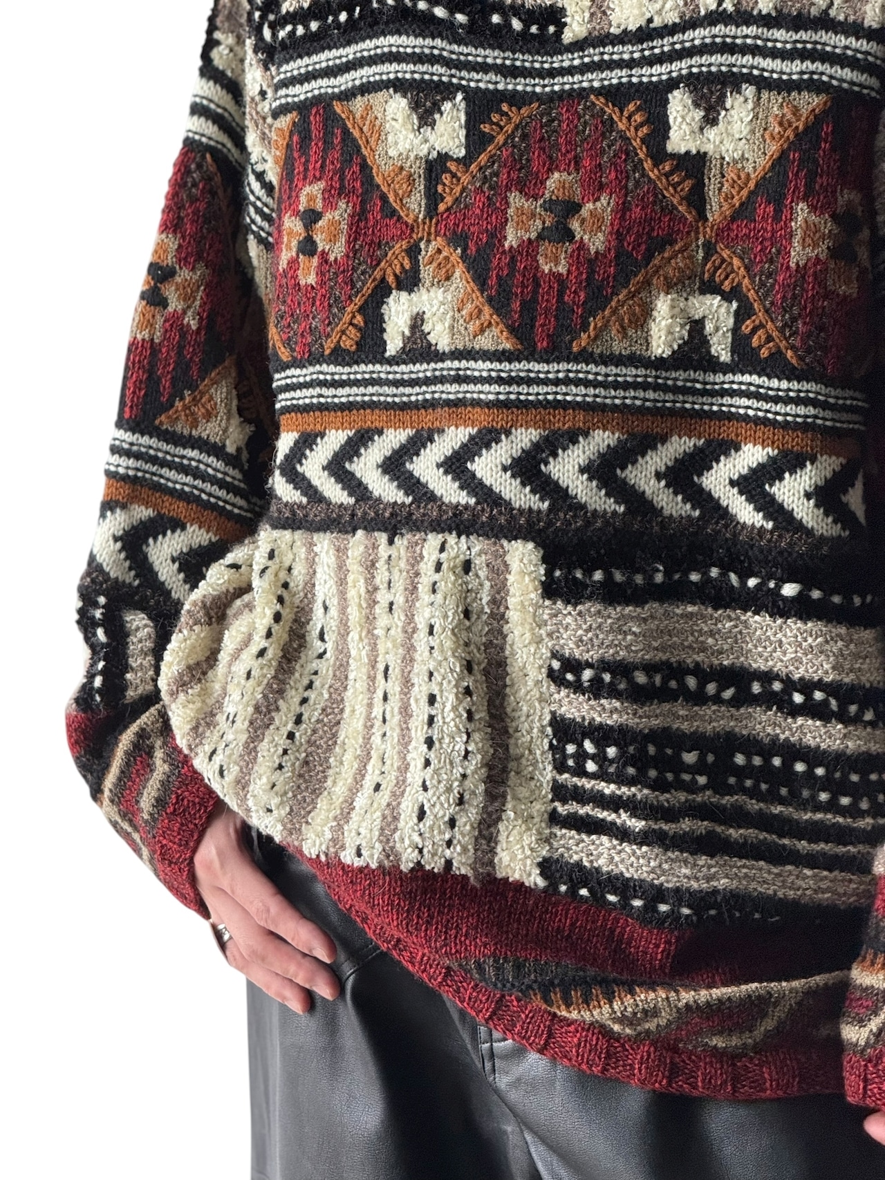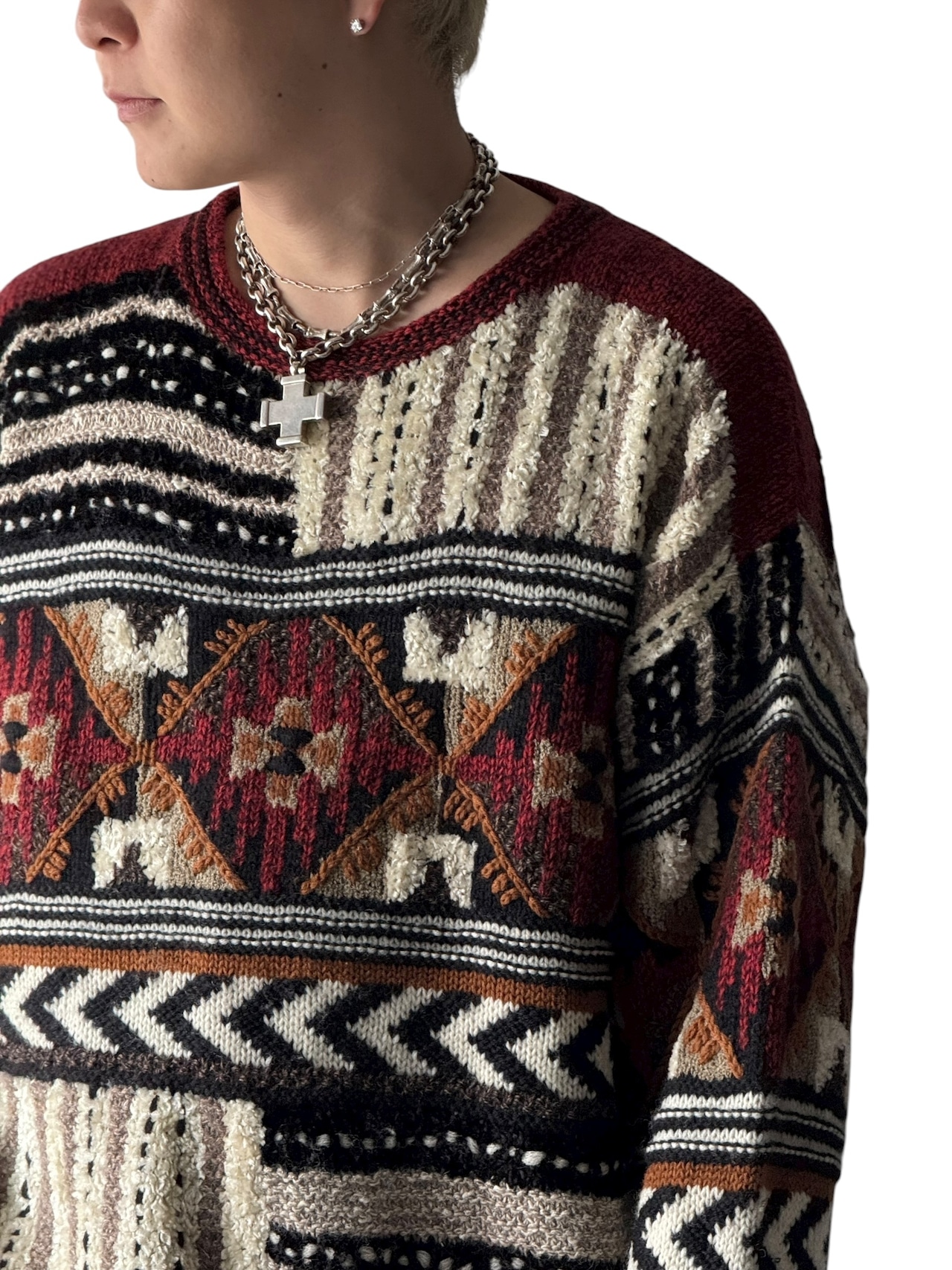 【80s Ficce】 "YOSHIYUKI KONISHI" Mix pattern HAND KNIT sweater