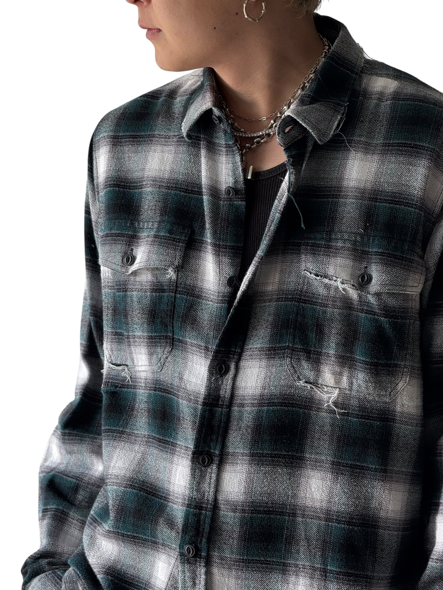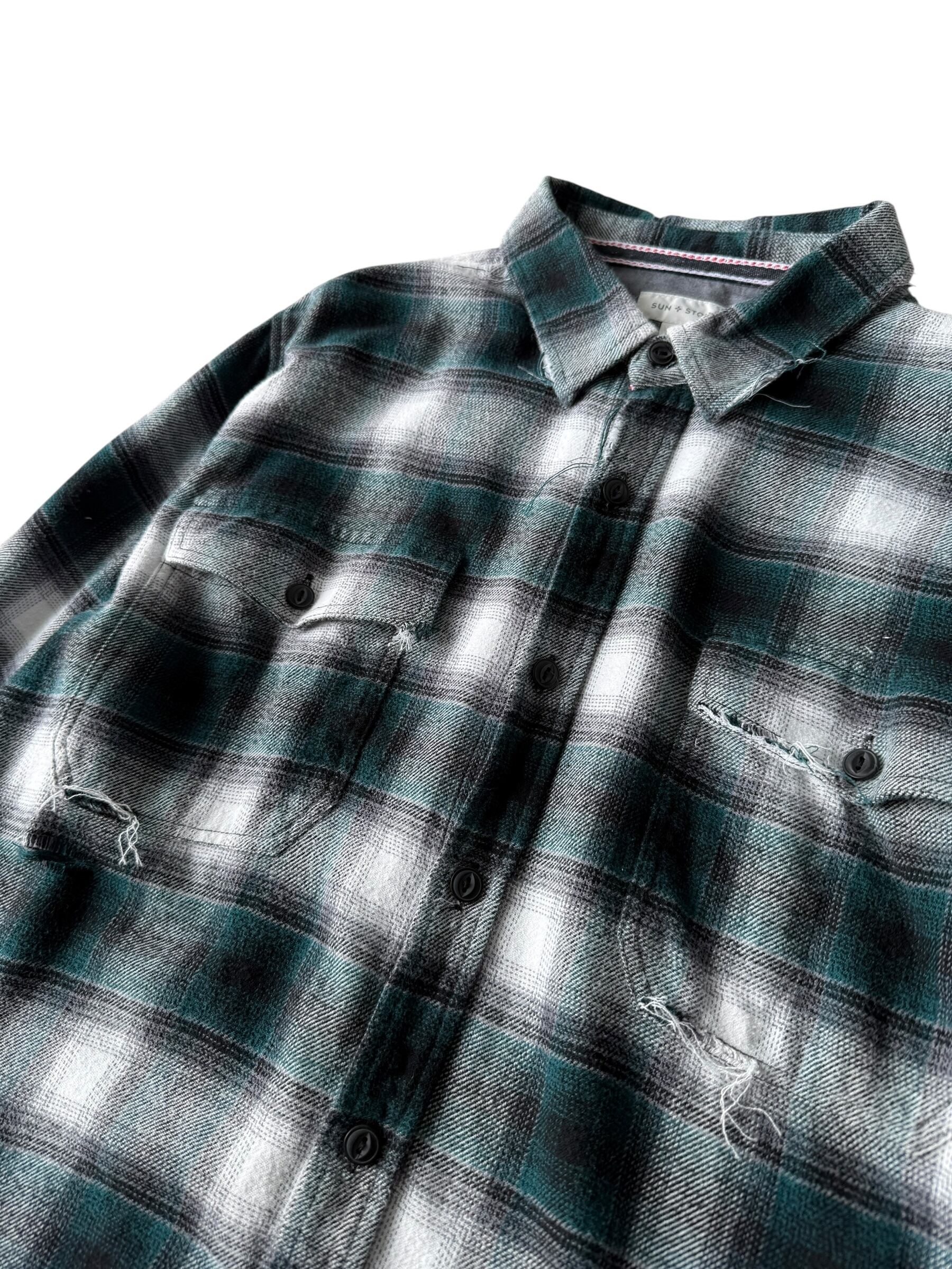 織りで入ったグリーンベースのシャドー感が雰囲気半端ないライトネルシャツ✨✨