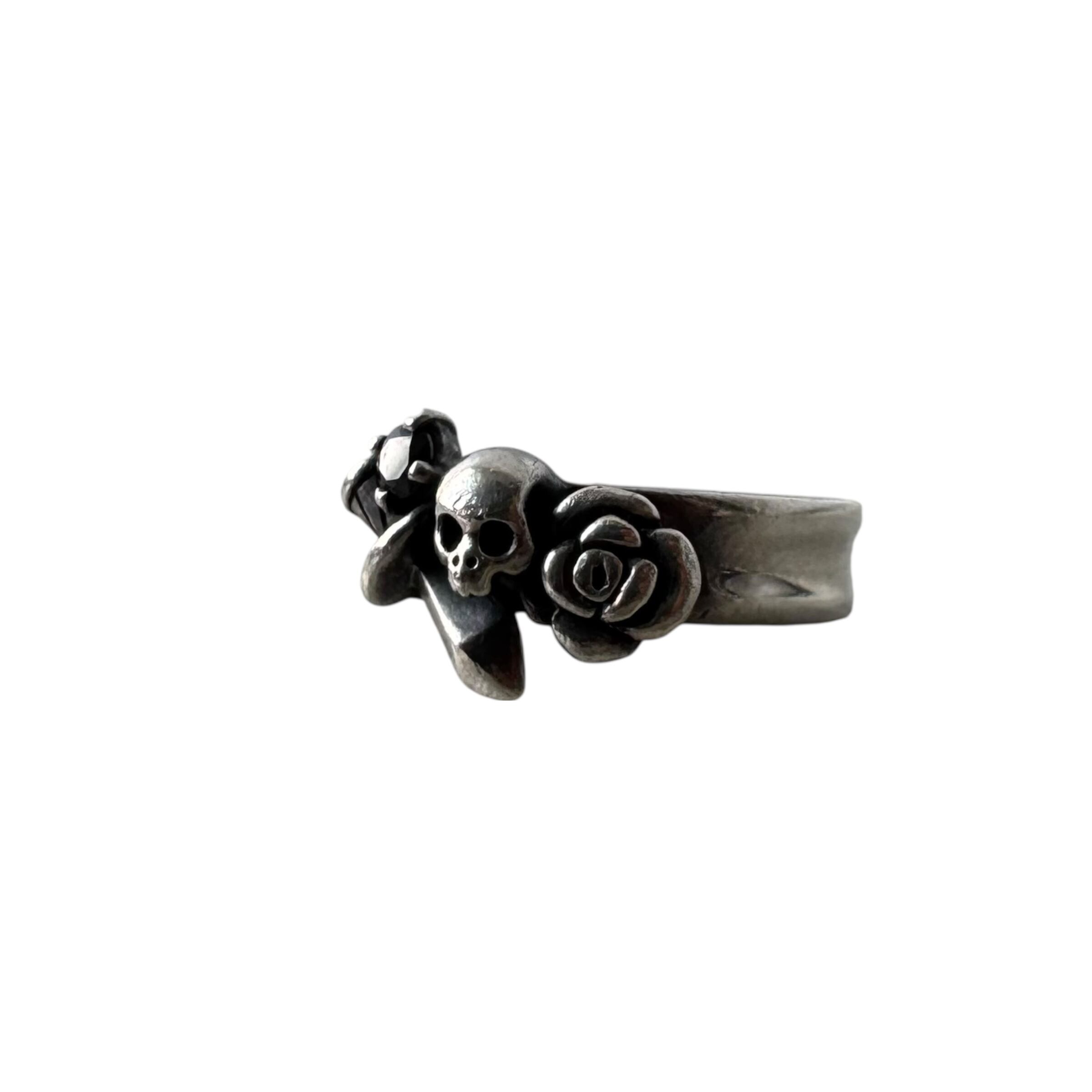 ♾ vtg sv jewelry♾ skull rose motif design ring size 11号 sv925 ・