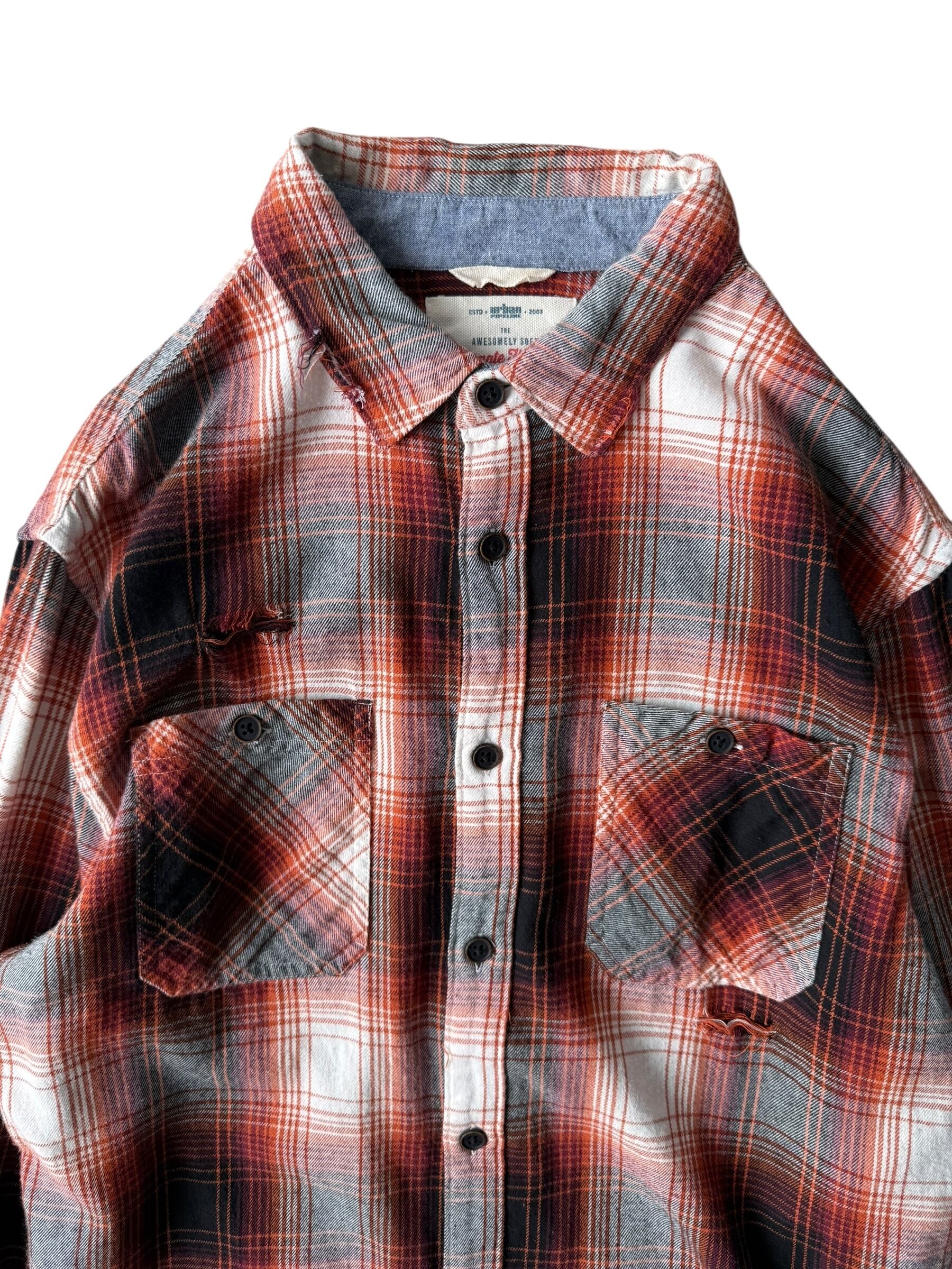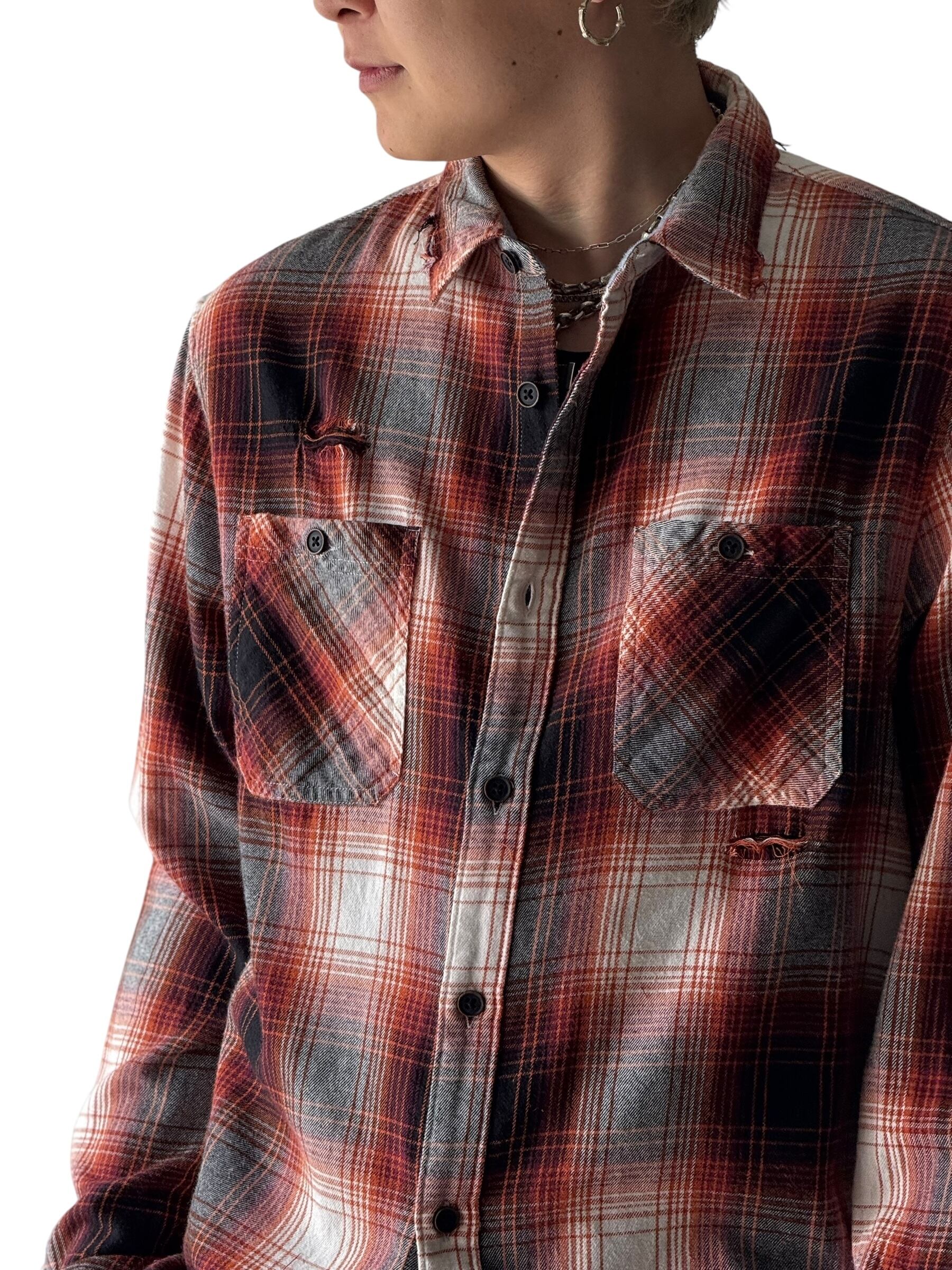 【ultimate flannel】Distressed ombré check shirt