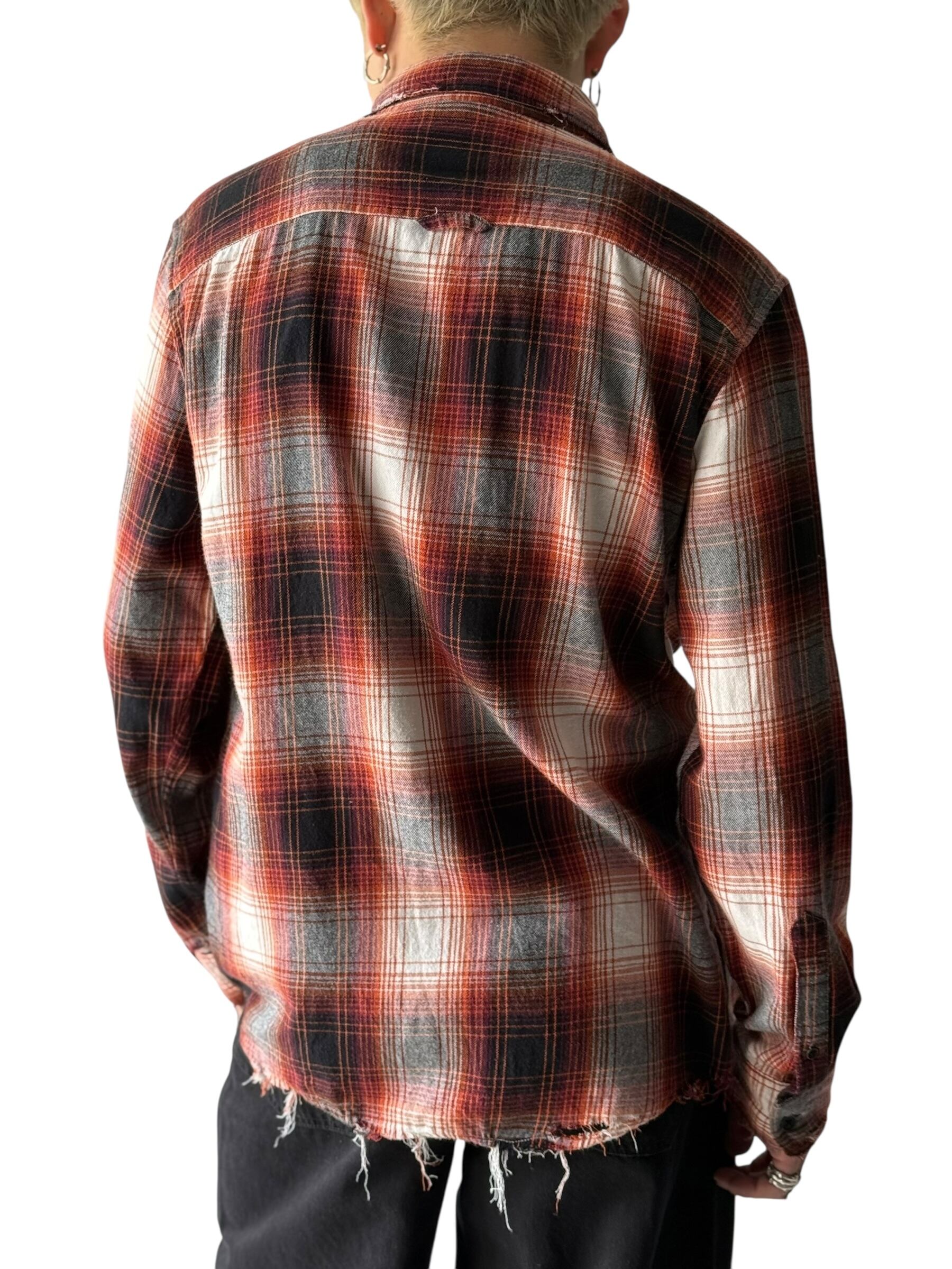 L/S Distressed ombré check shirt