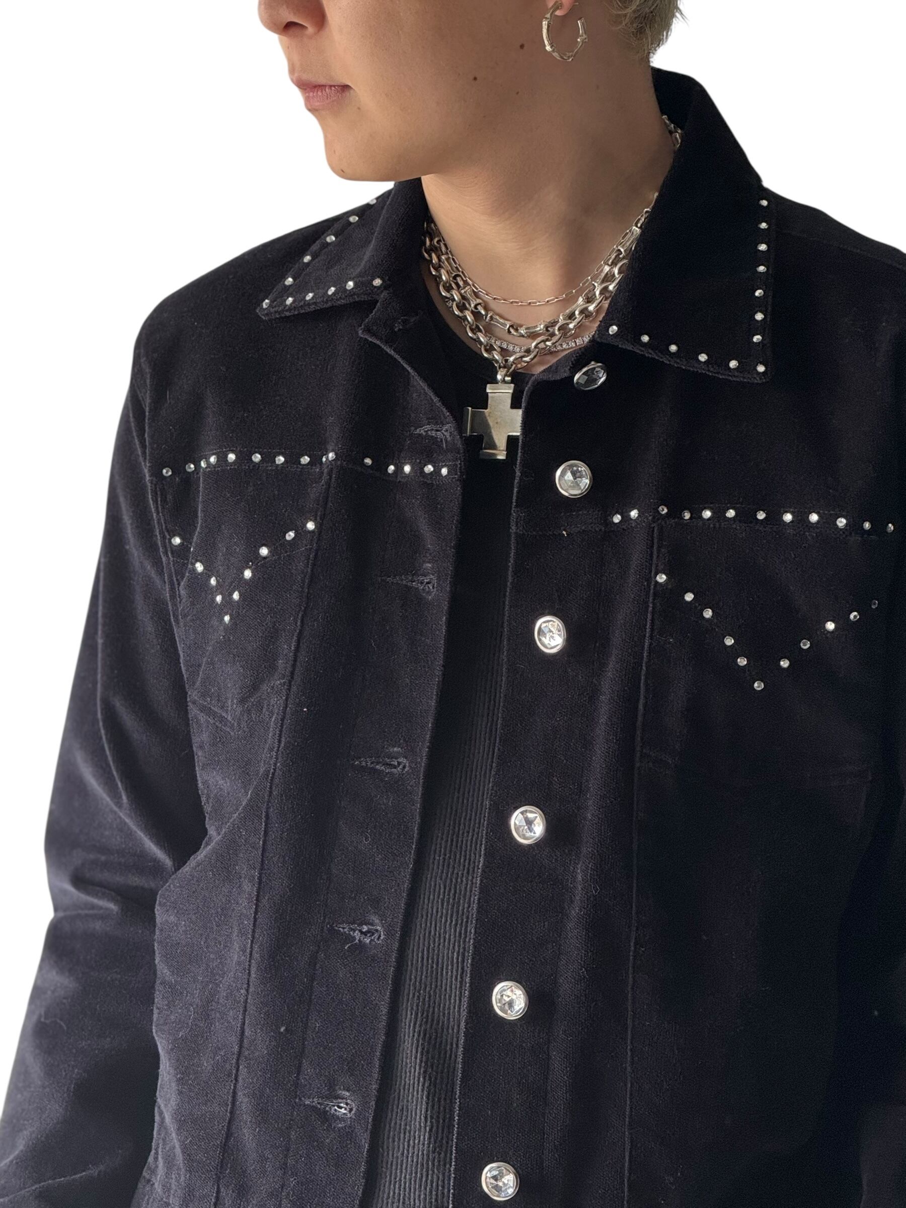 【Birch Hill】Rhinestone Studded Velvet Trucker type Short Jacket