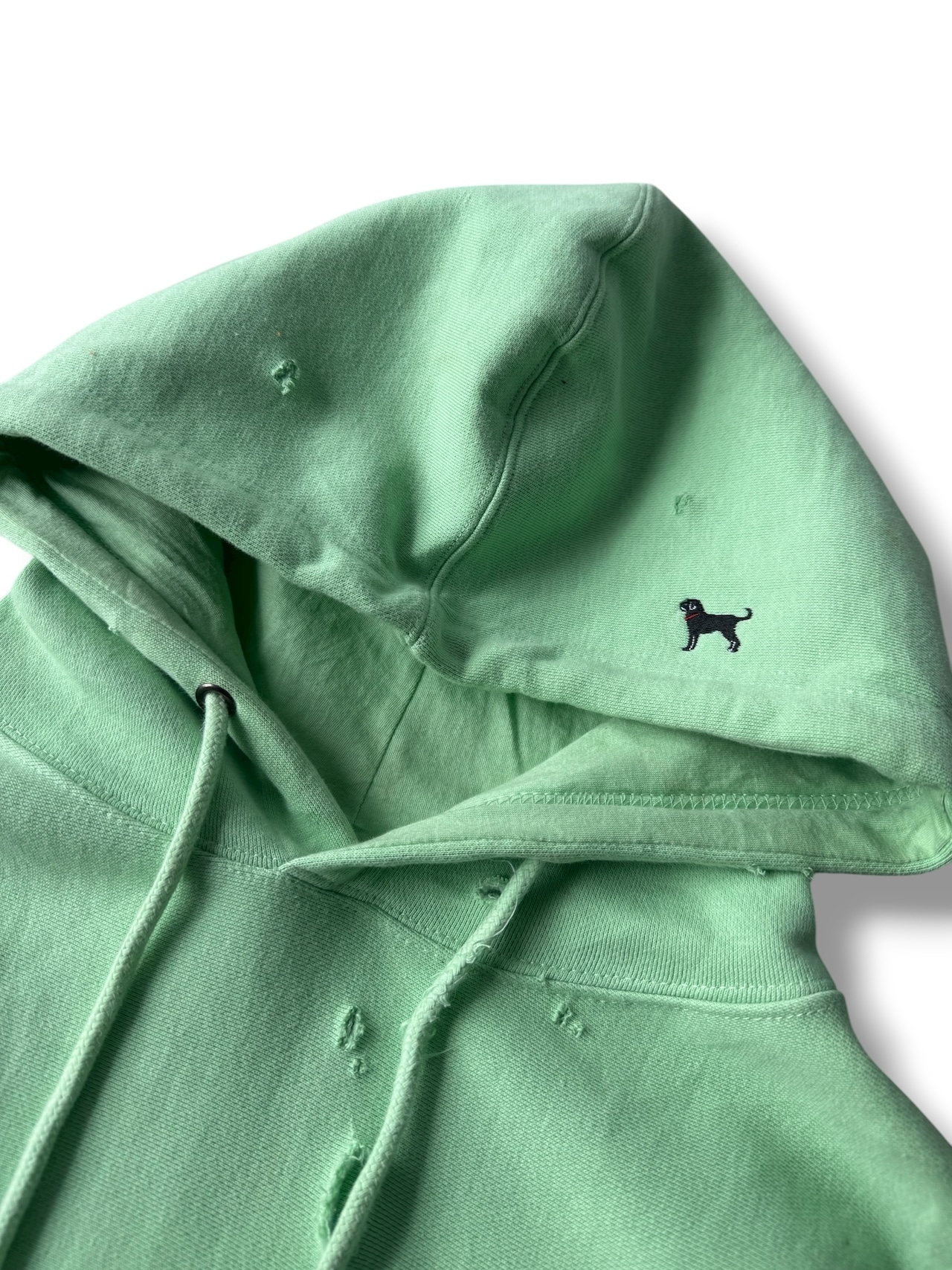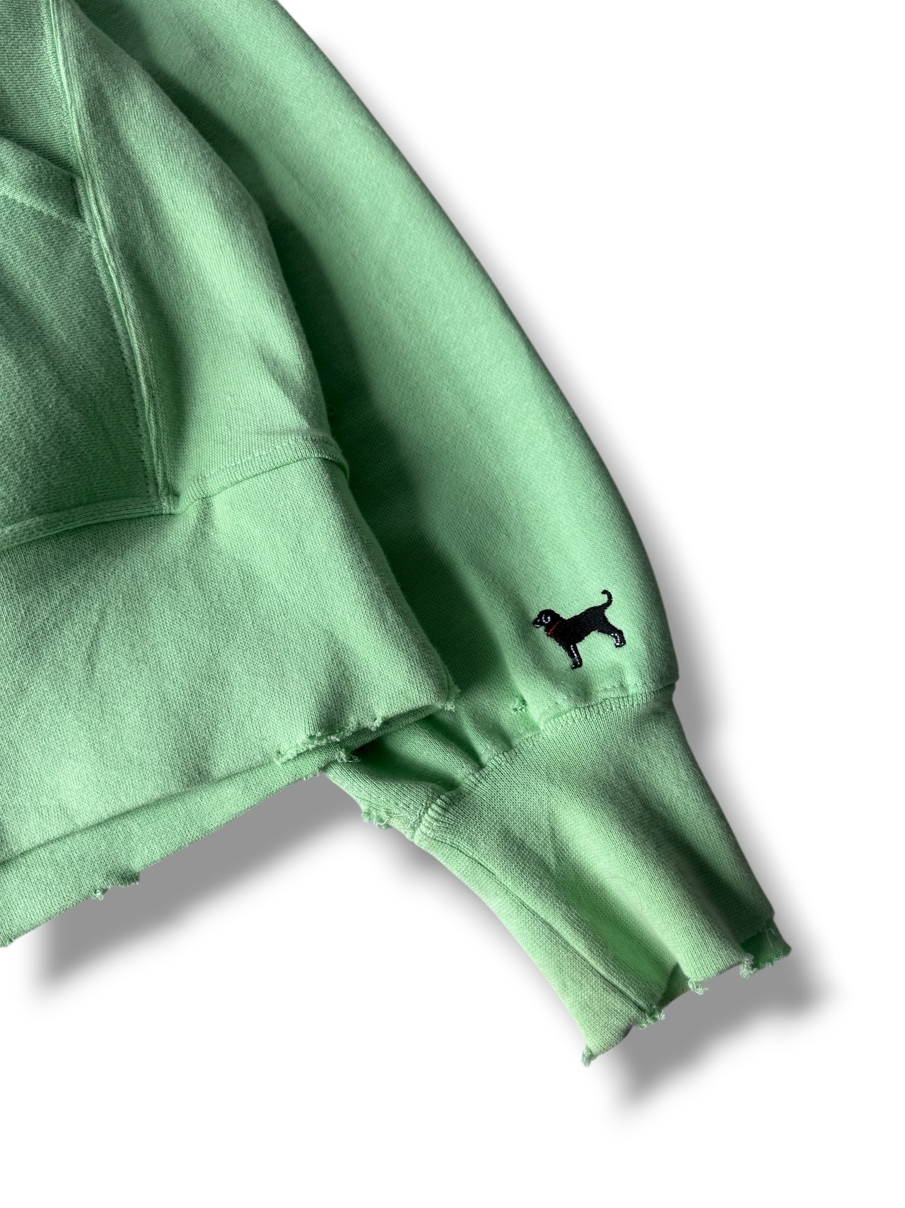 フロントにレストランのロゴの可愛らしいワンちゃんがプリントされておりフード部分にもワンちゃんが刺繍されてとってもcute‼️