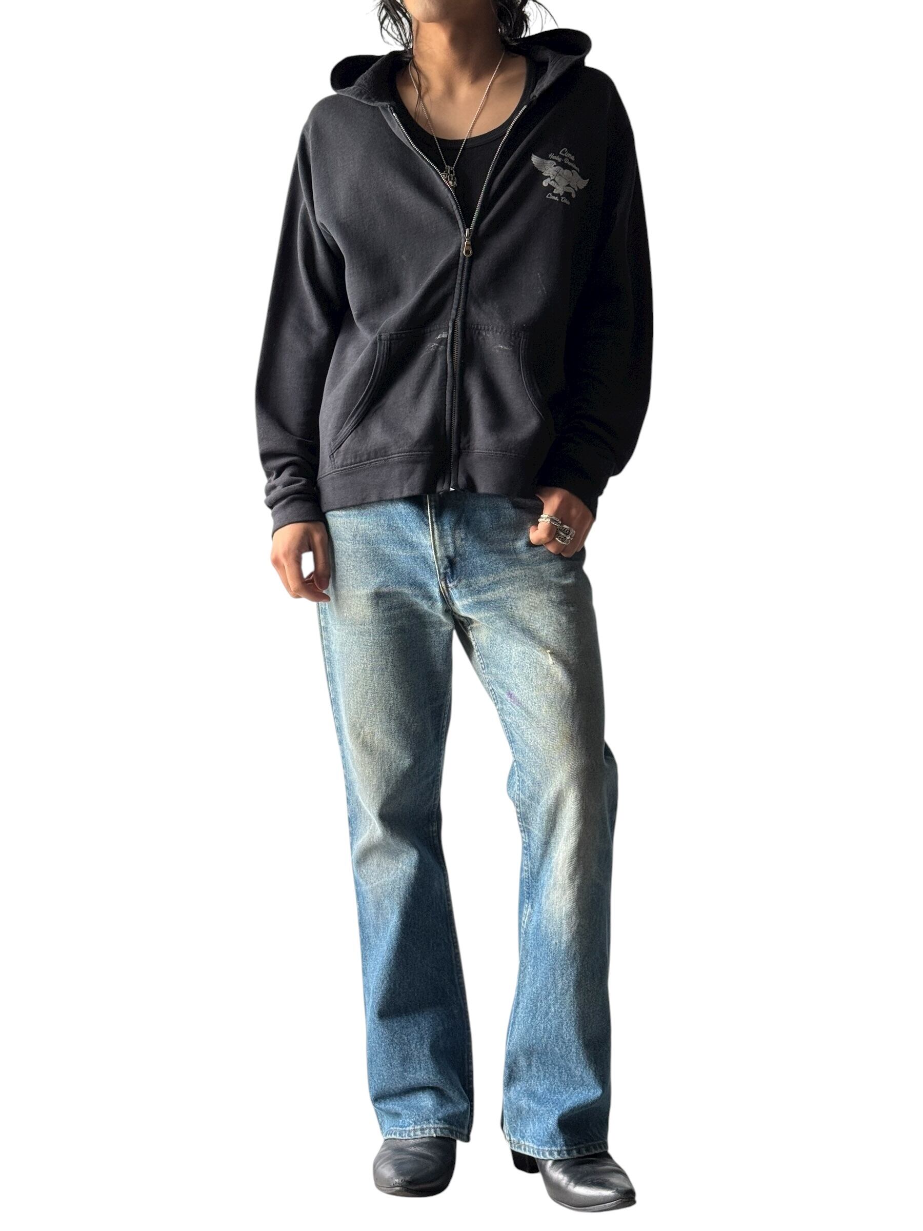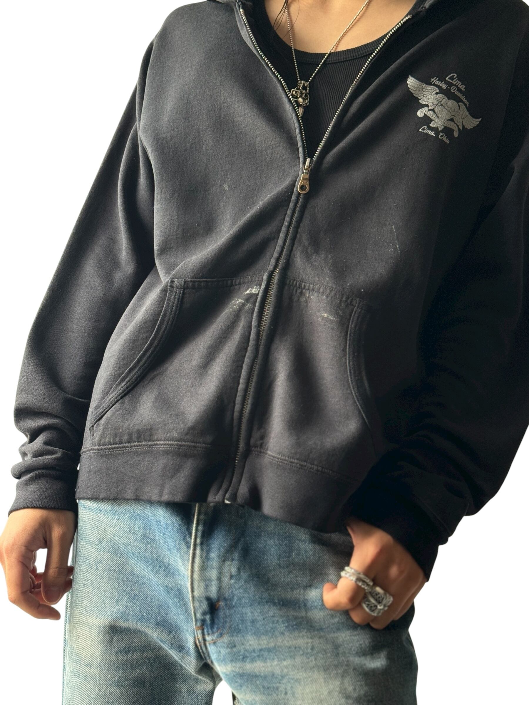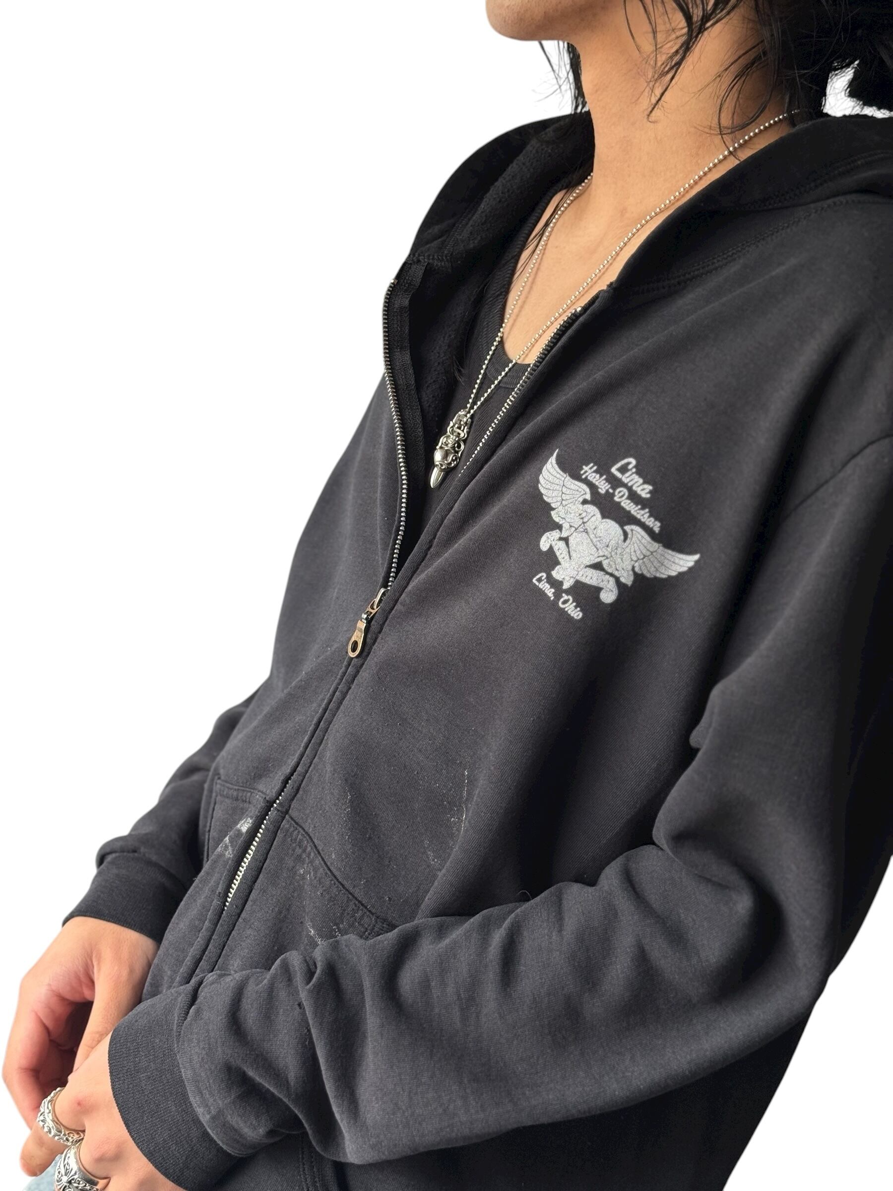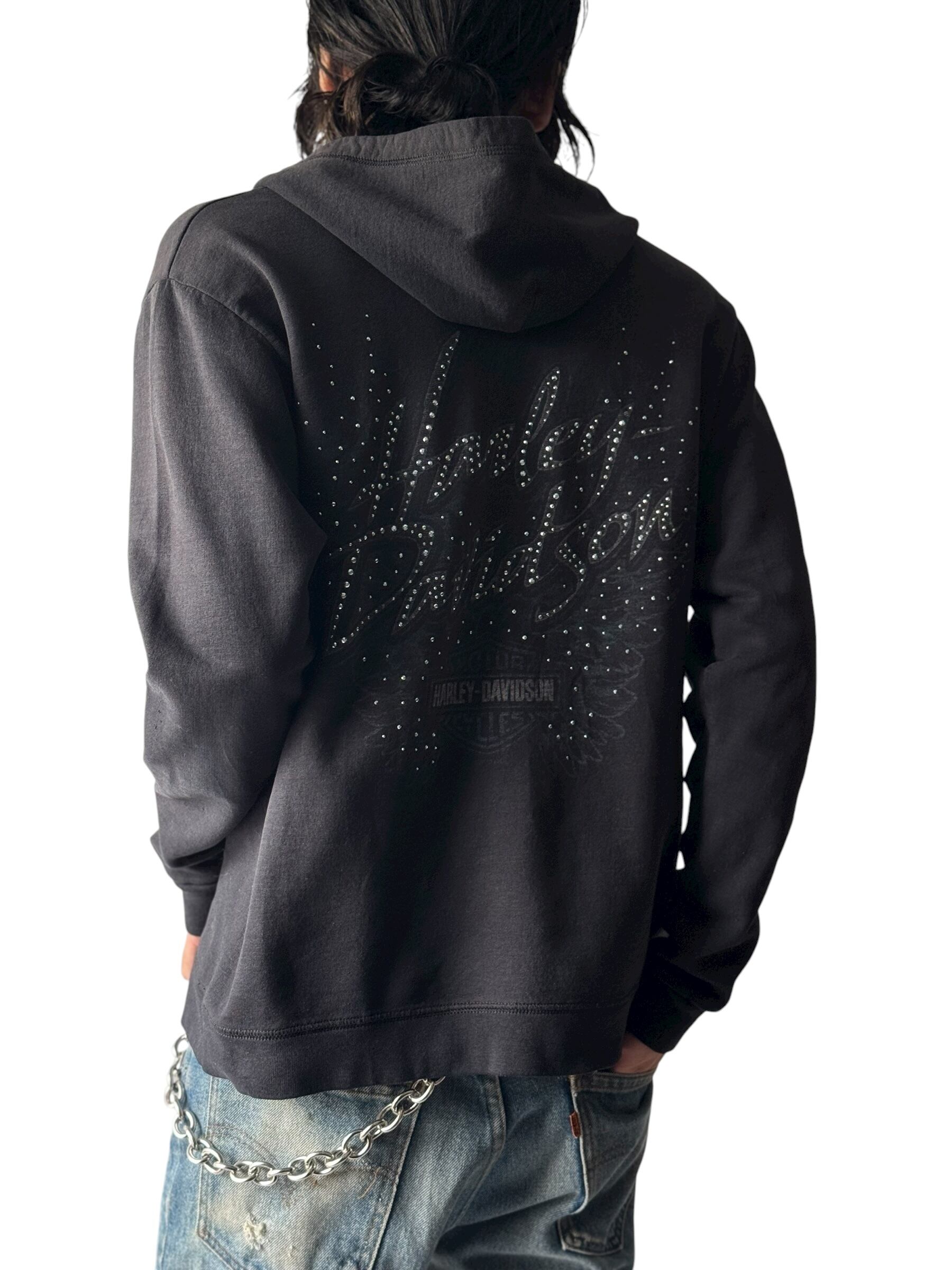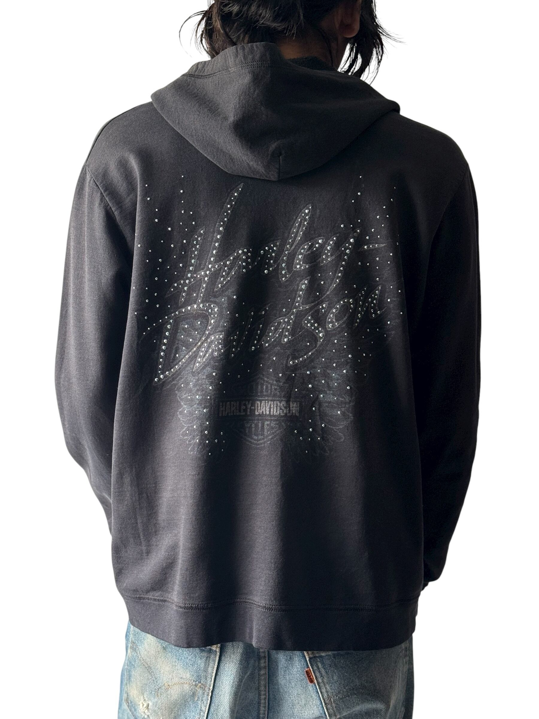 ♾HARLEY-DAVIDSON♾ Heart wing motif rhinestone-detailed design zip up hoodie sizeL