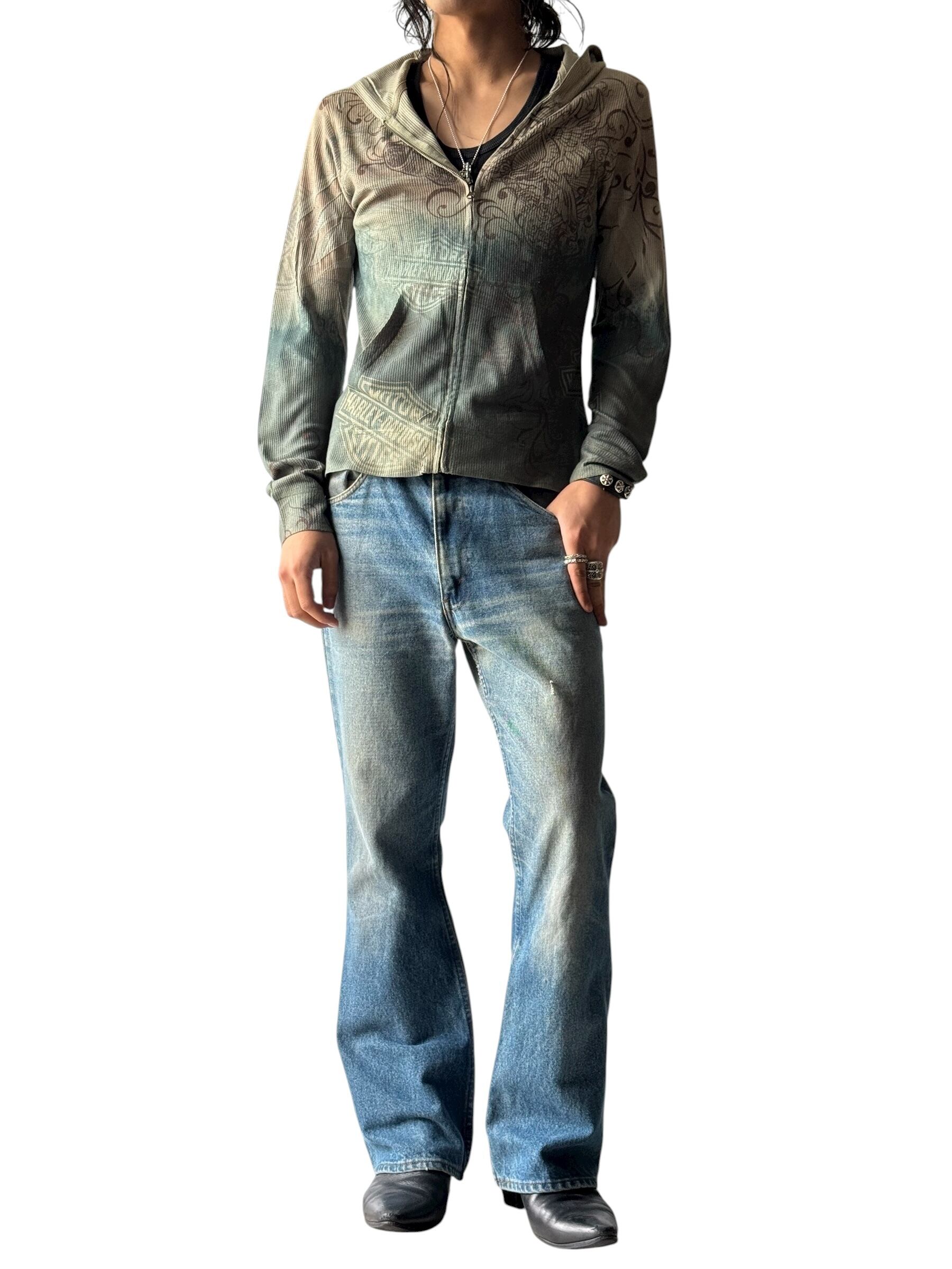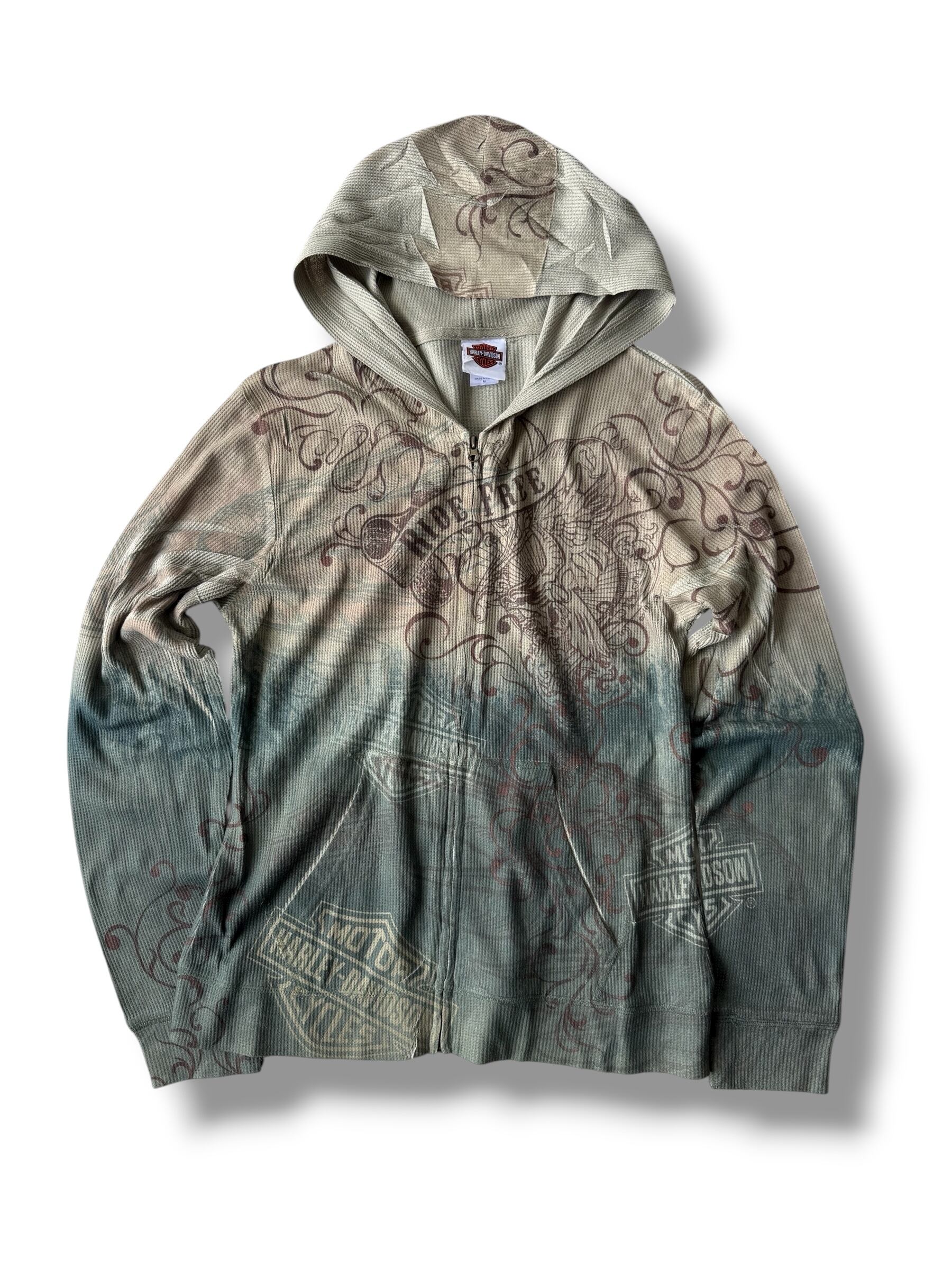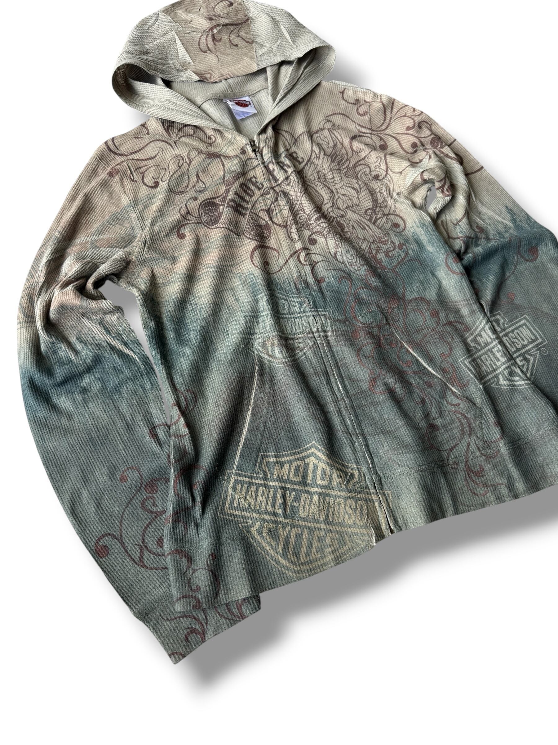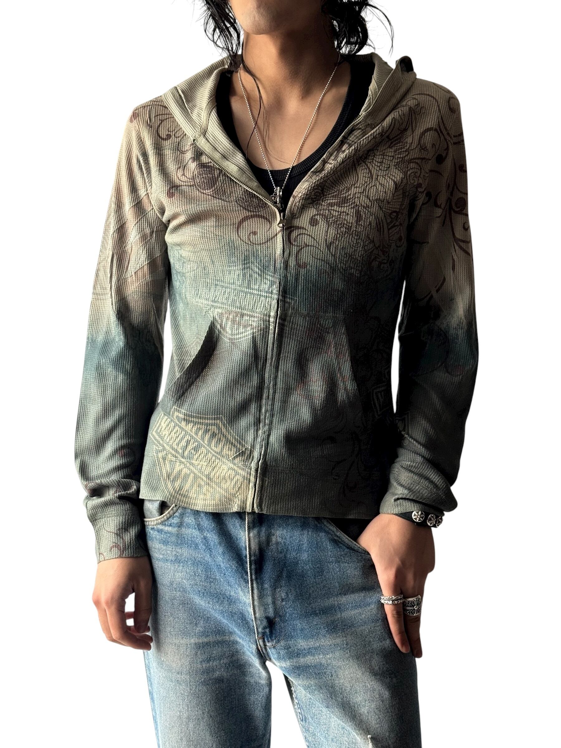 ♾HARLEY-DAVIDSON♾ y2k design wrinkle processing thermal zip hoodie size M