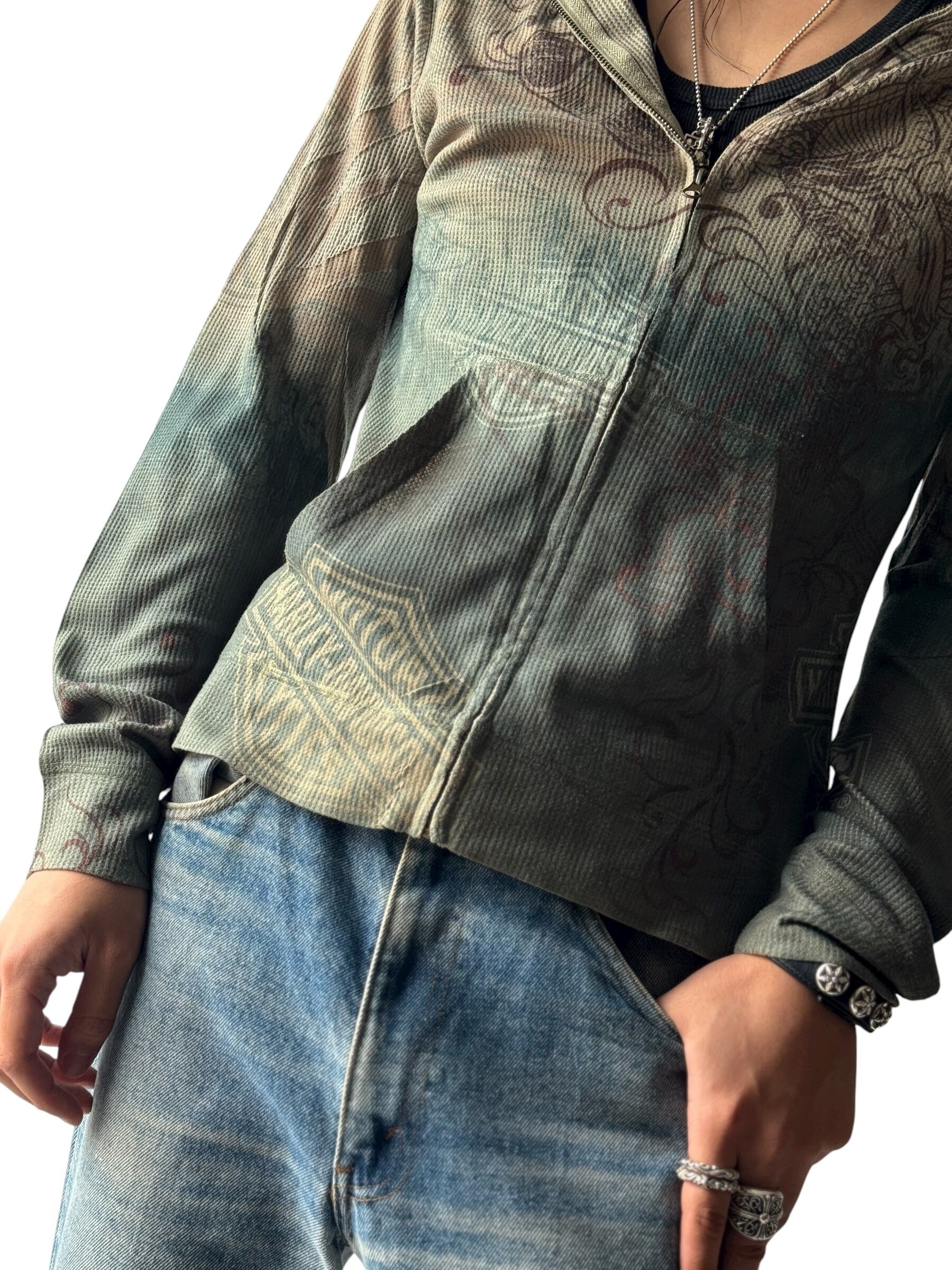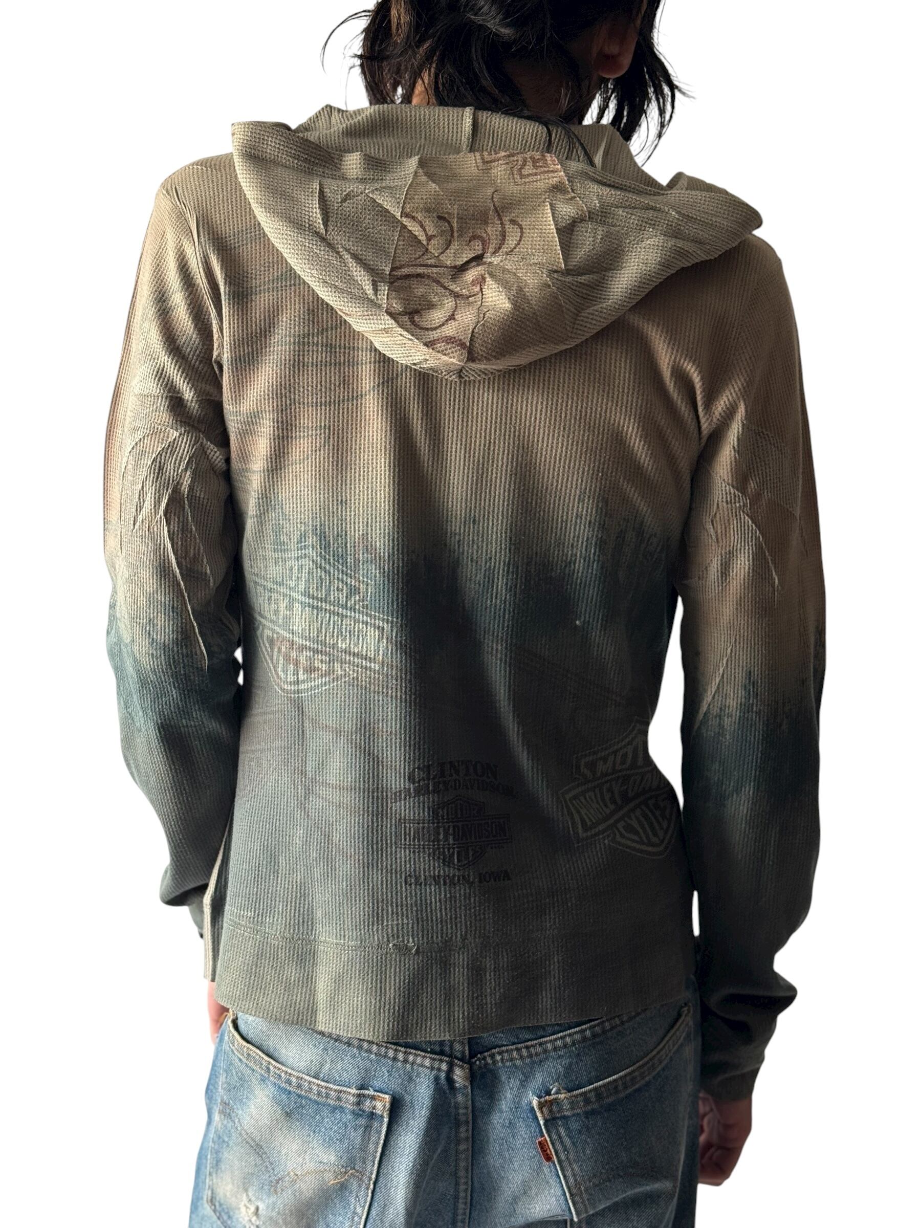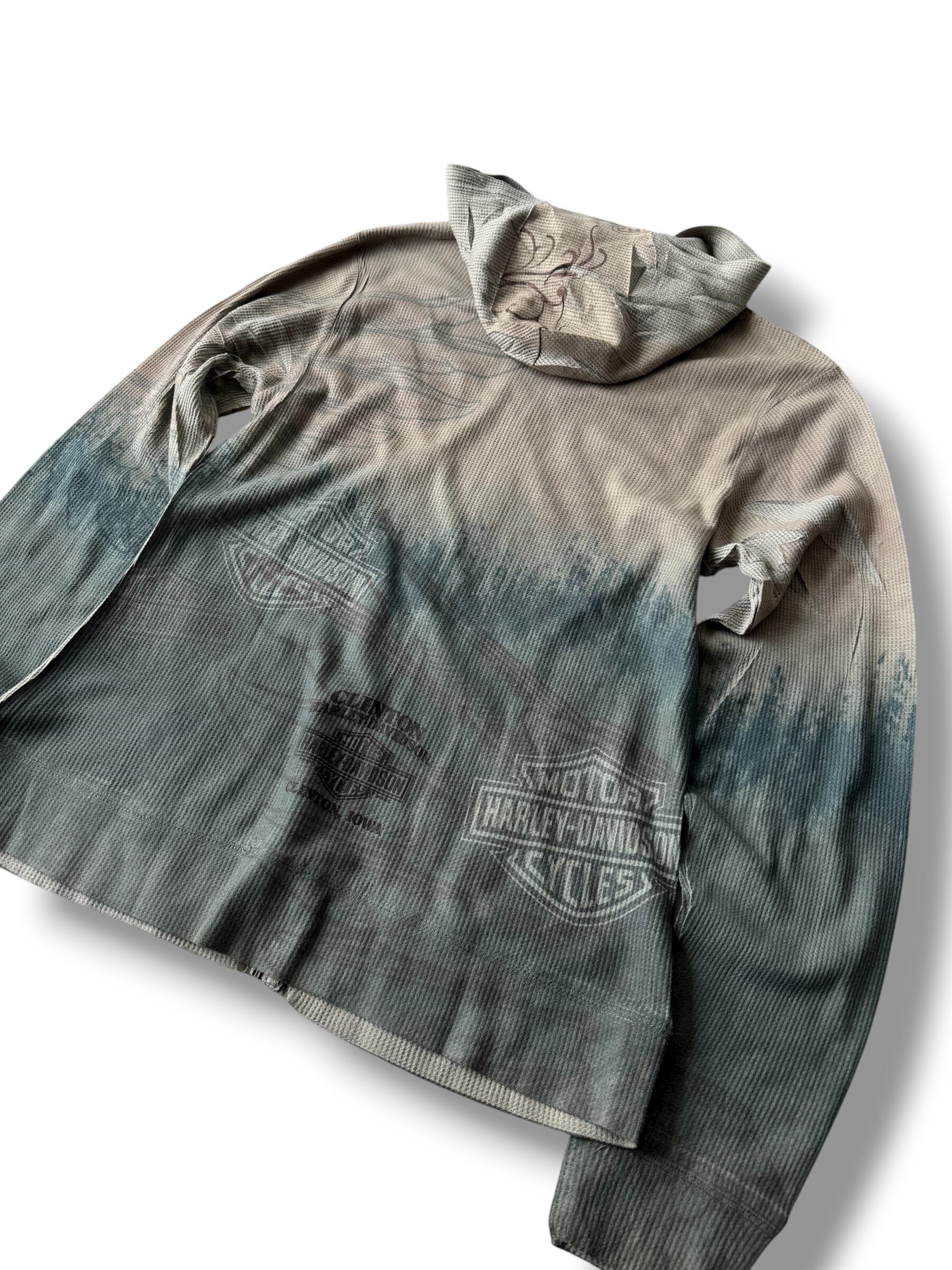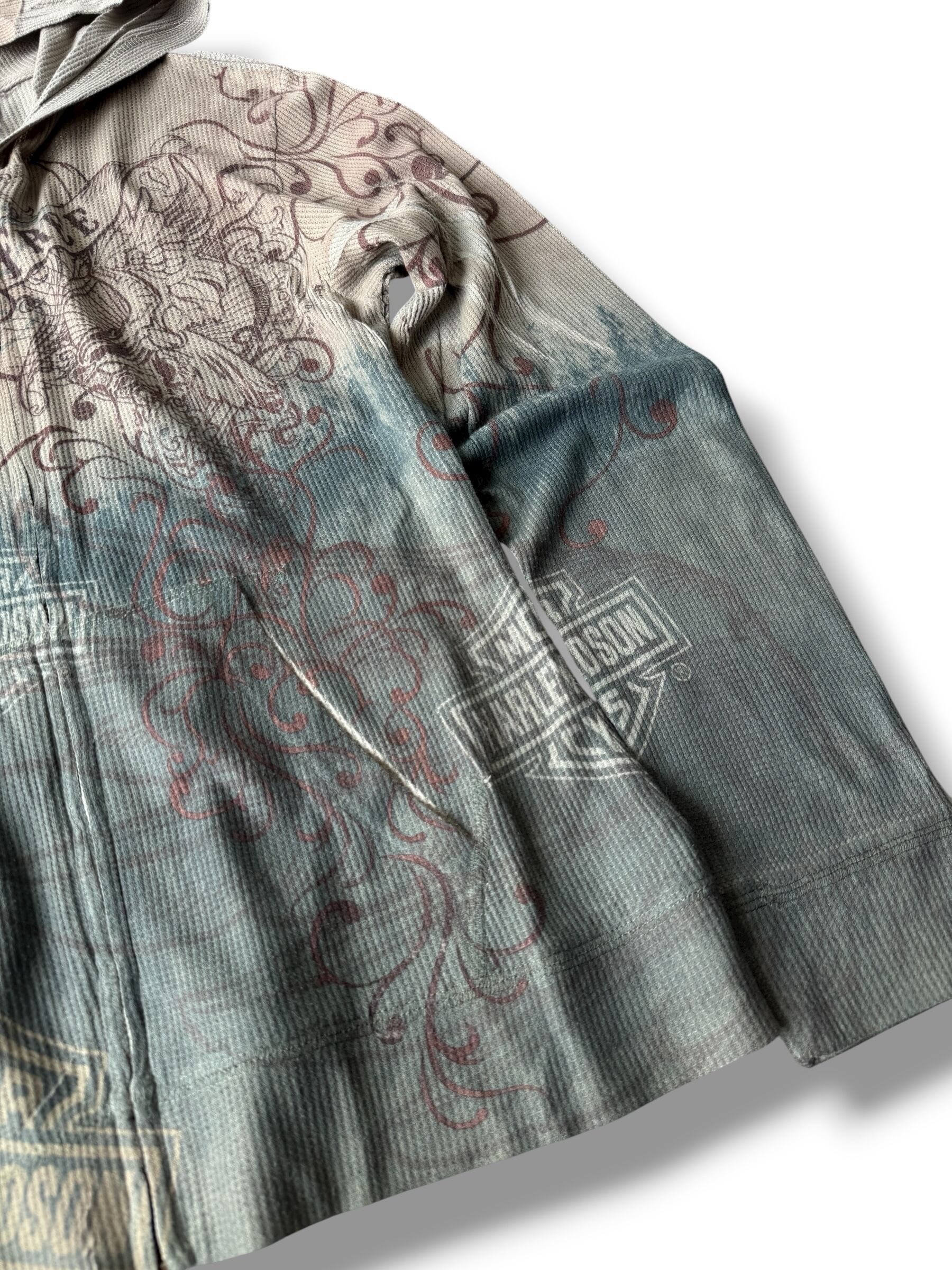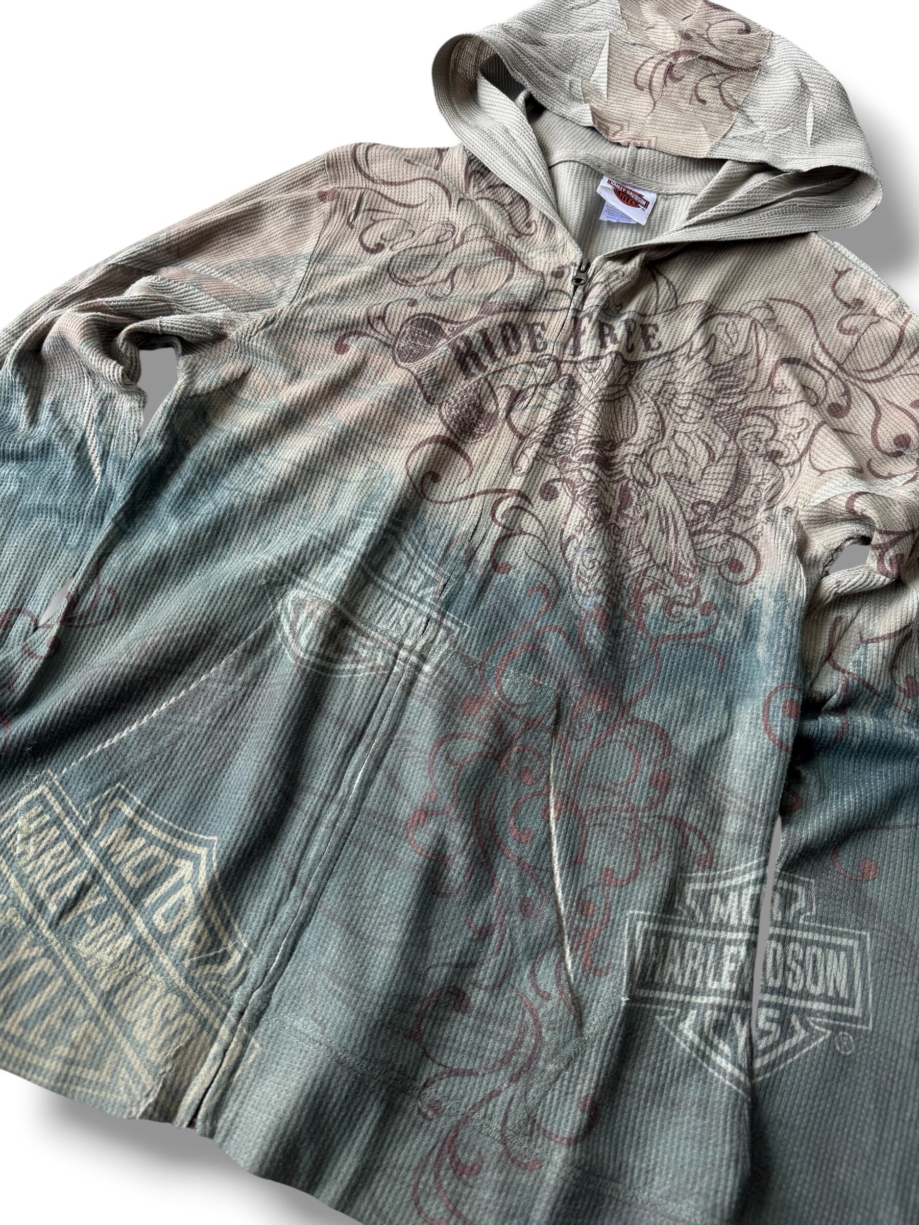 ♾HARLEY-DAVIDSON♾ y2k design wrinkle processing thermal zip hoodie size M
