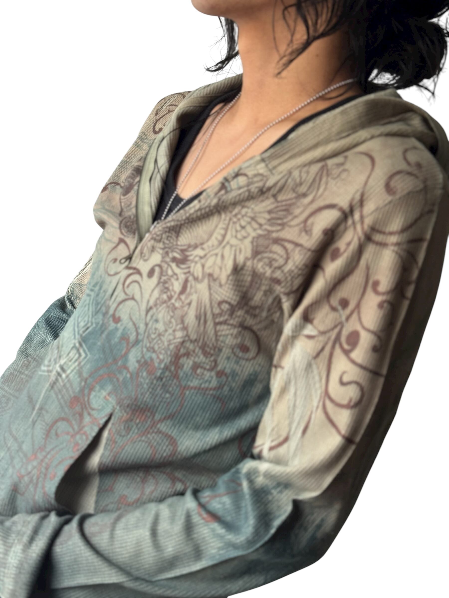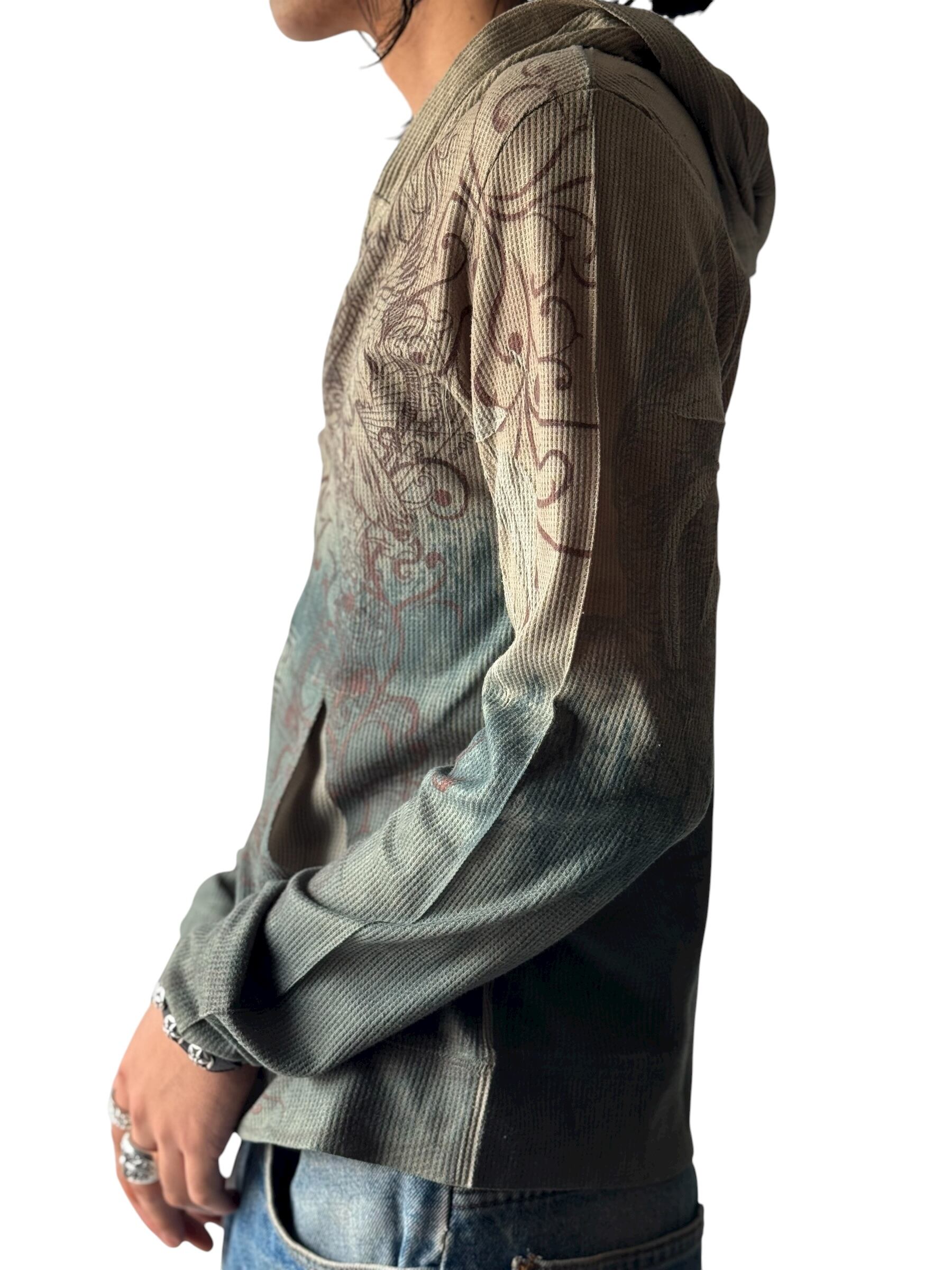 しかも袖とフーディーにシワ加工プリントが施された圧倒的センス◎