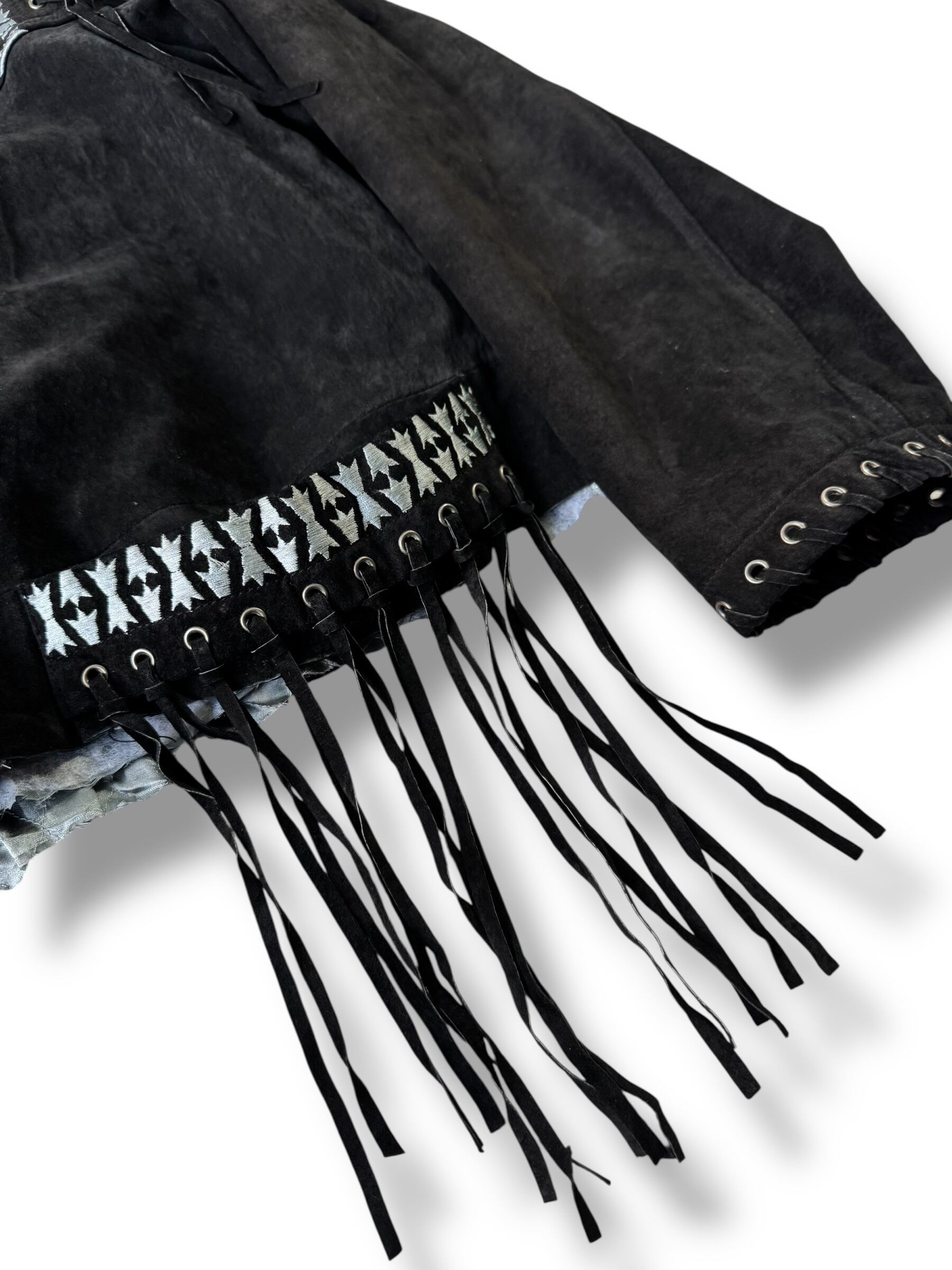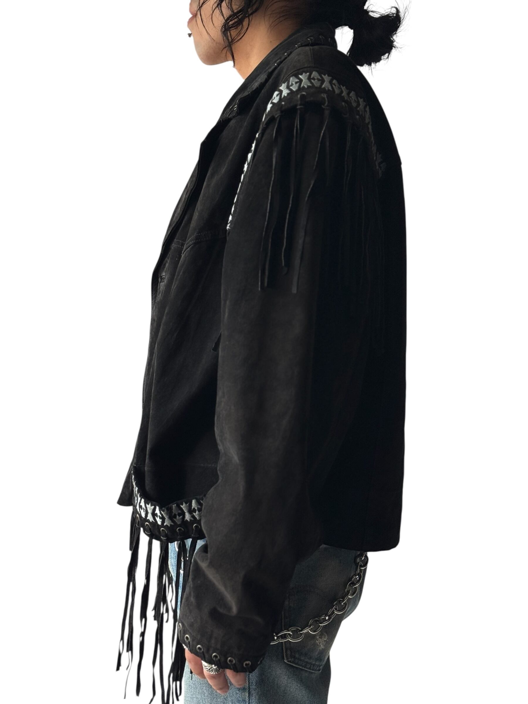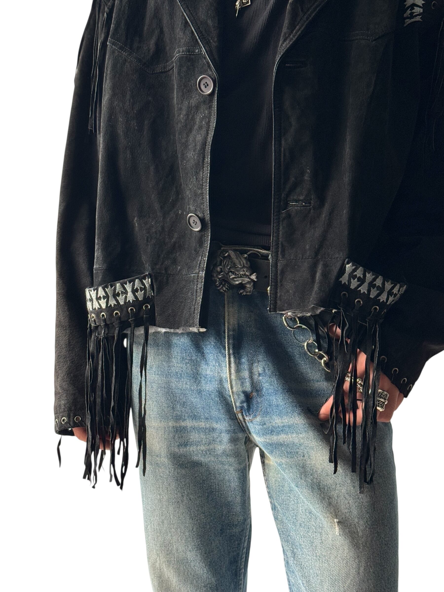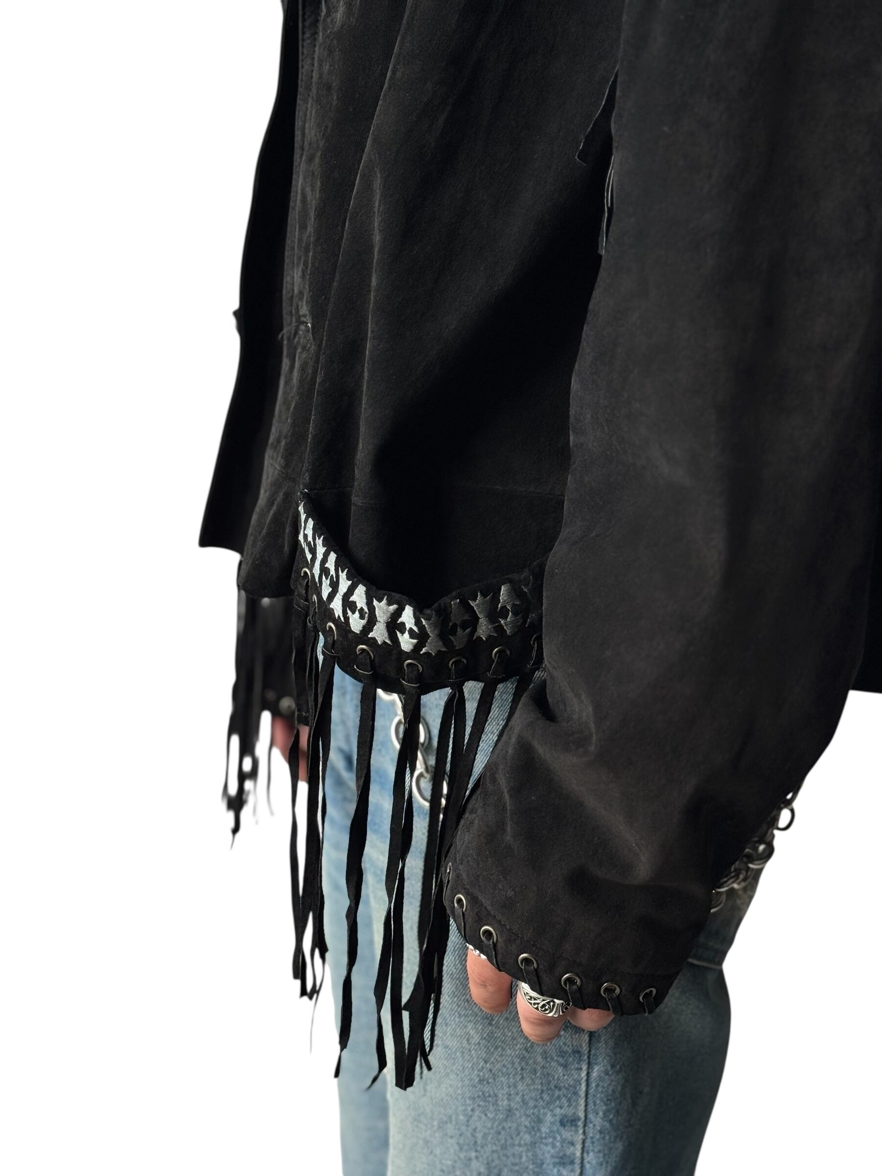 ♾EXCELLED♾ cut off Fringed suede leather jacket size M
