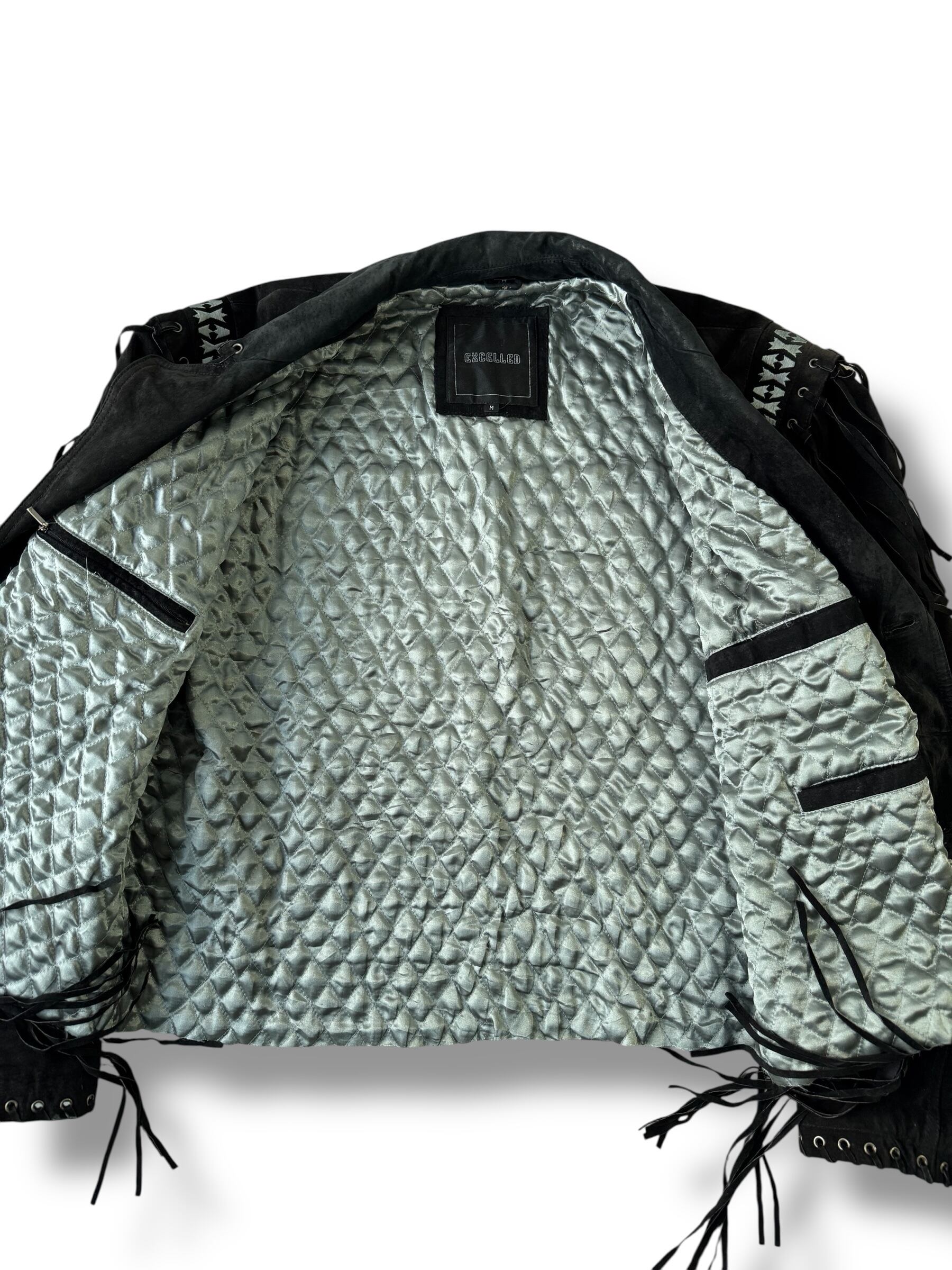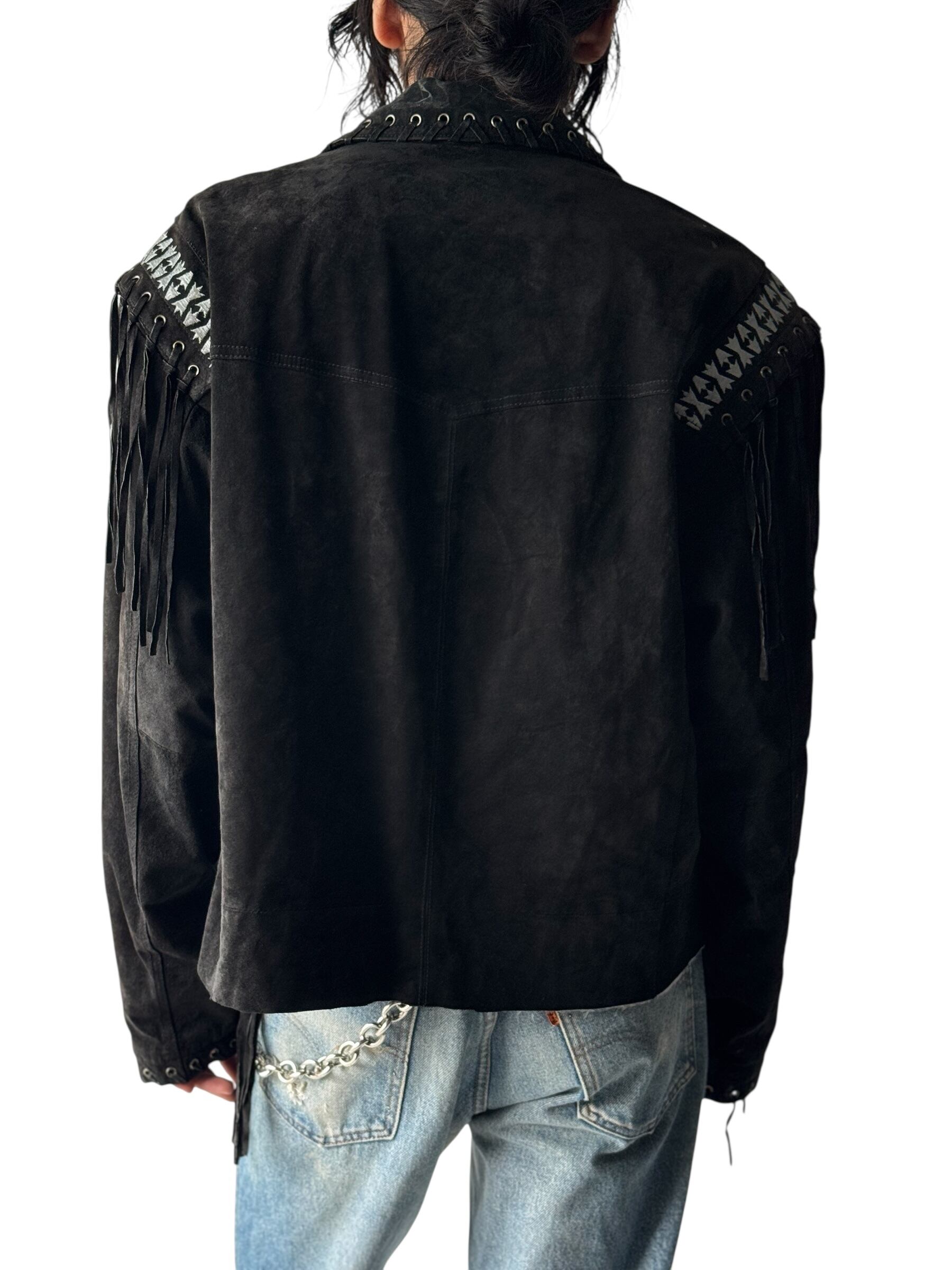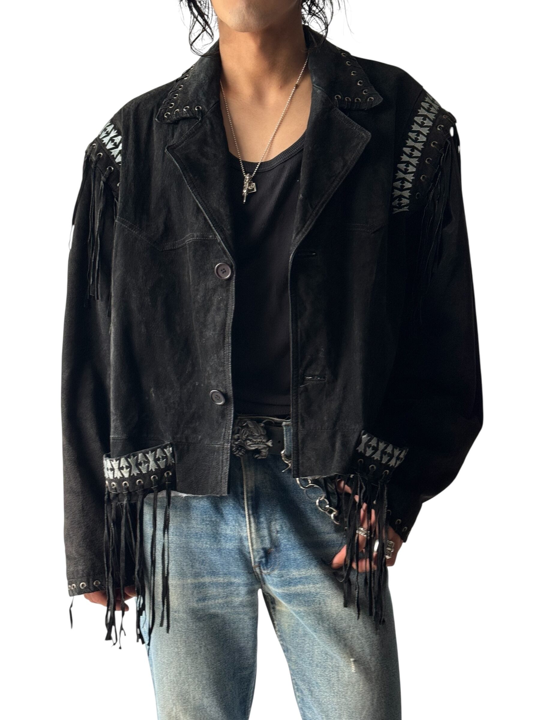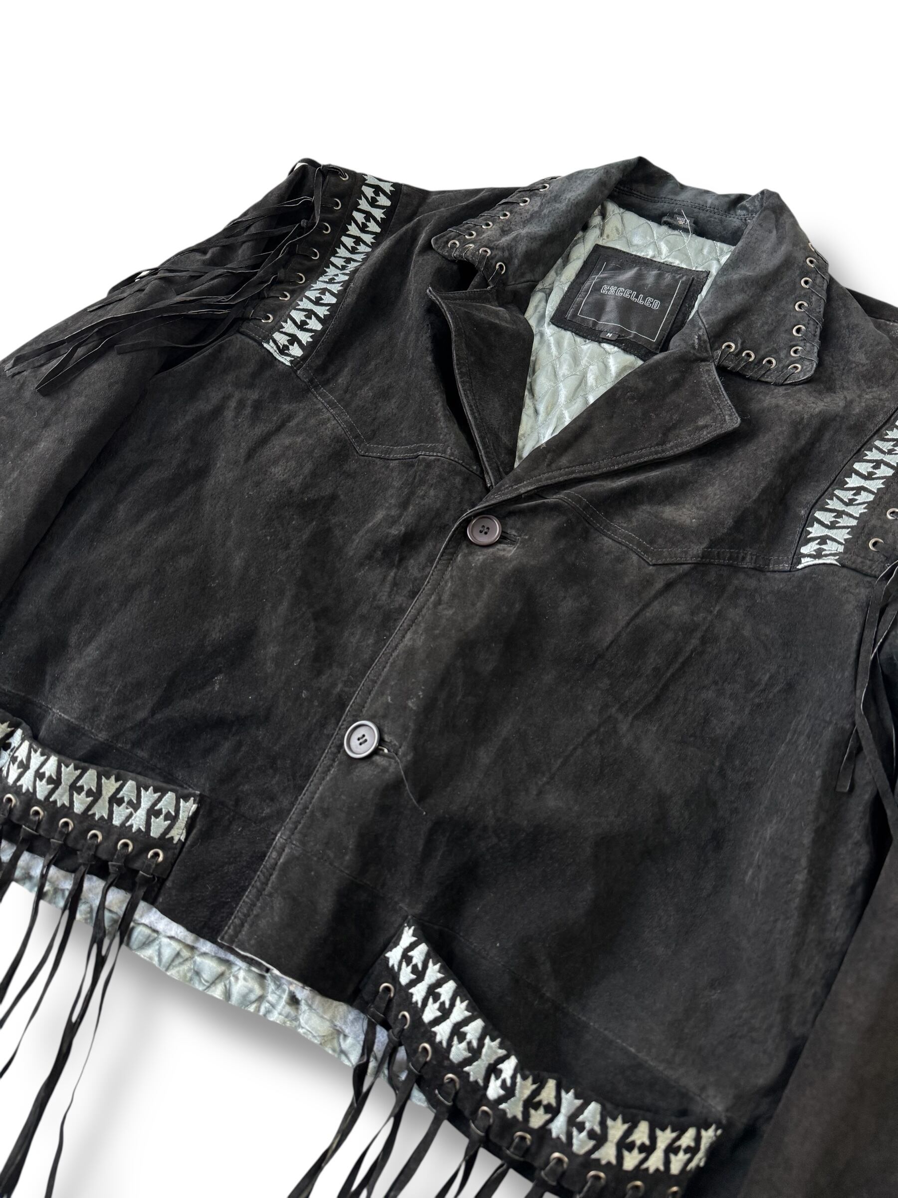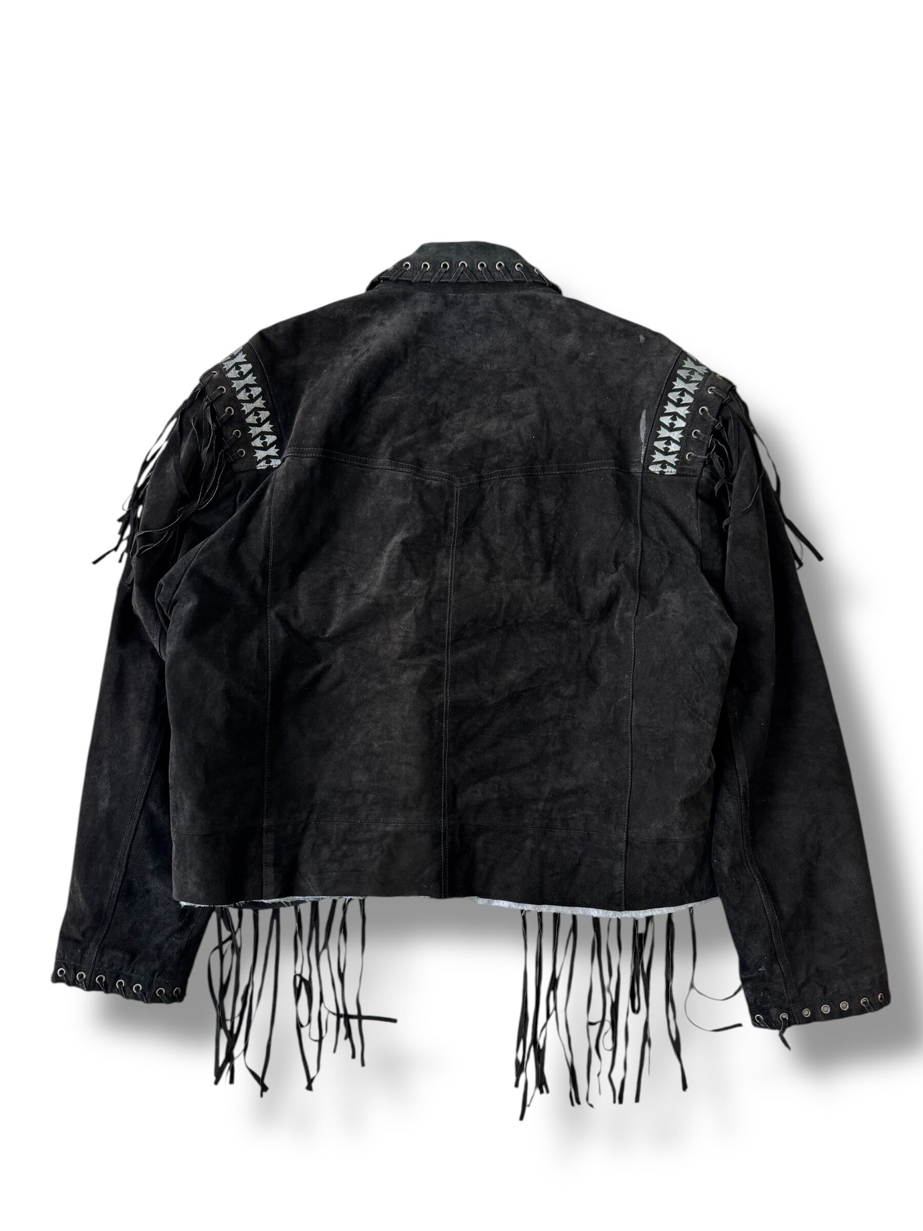♾EXCELLED♾ cut off Fringed suede leather jacket size M