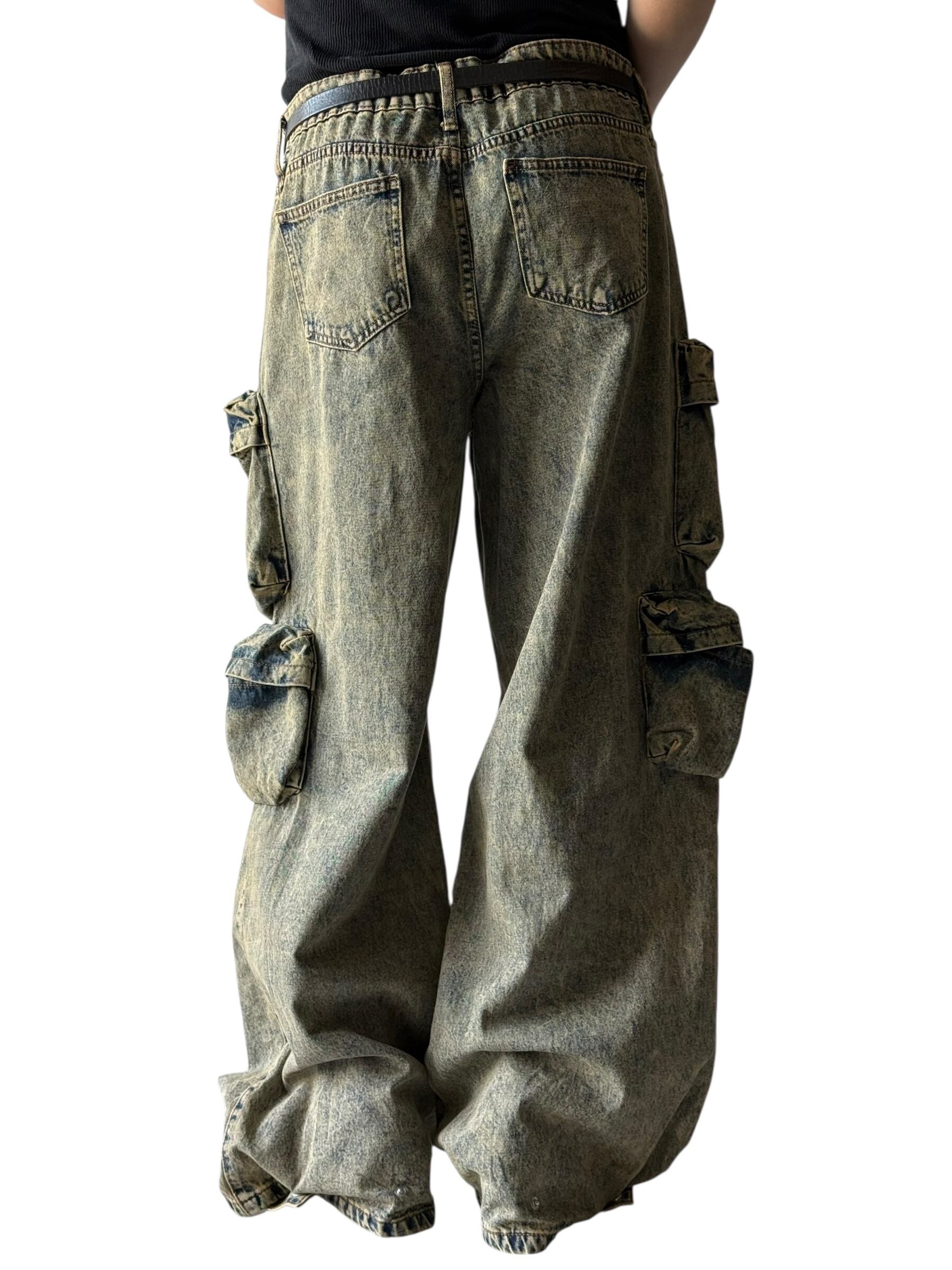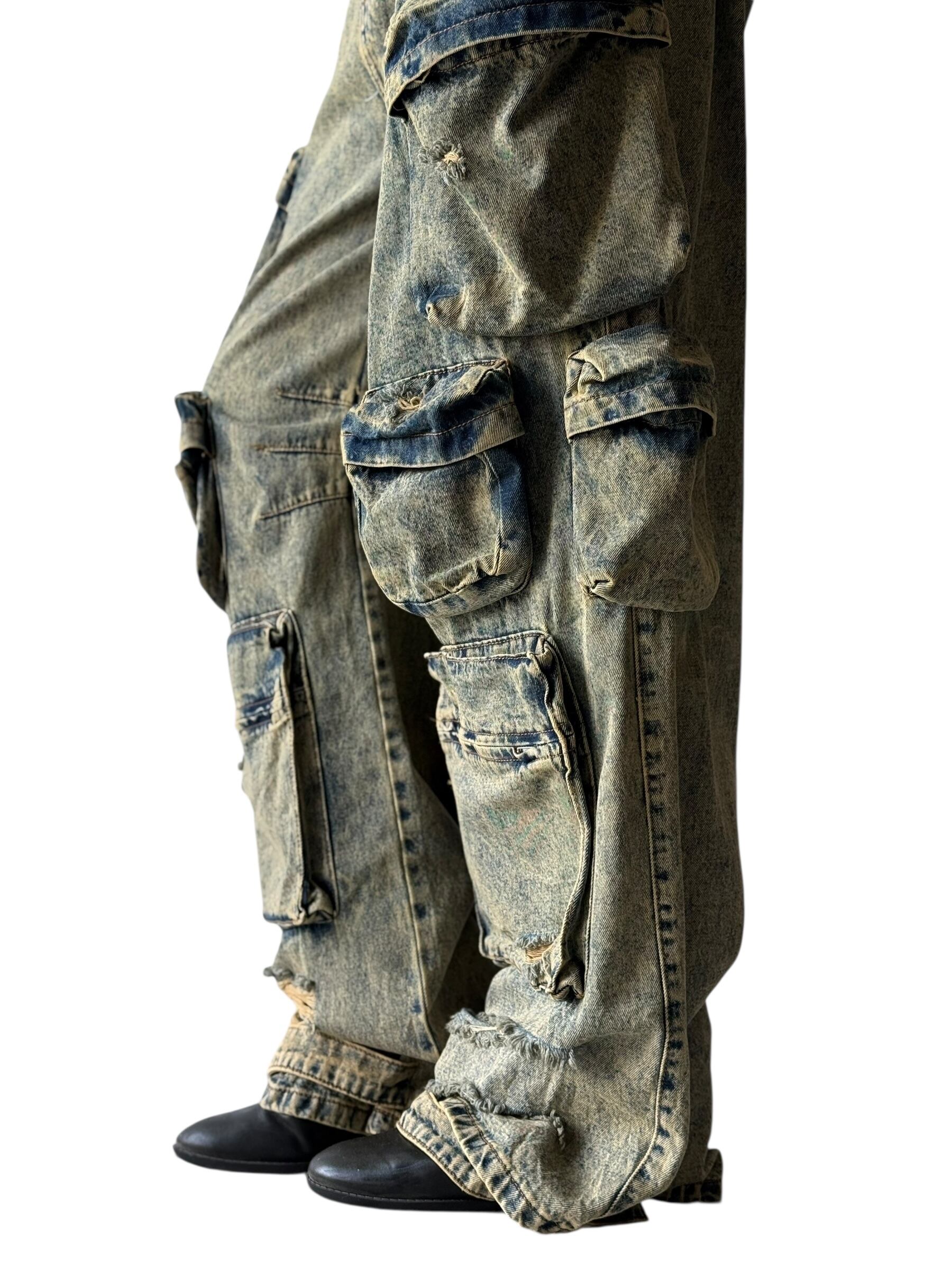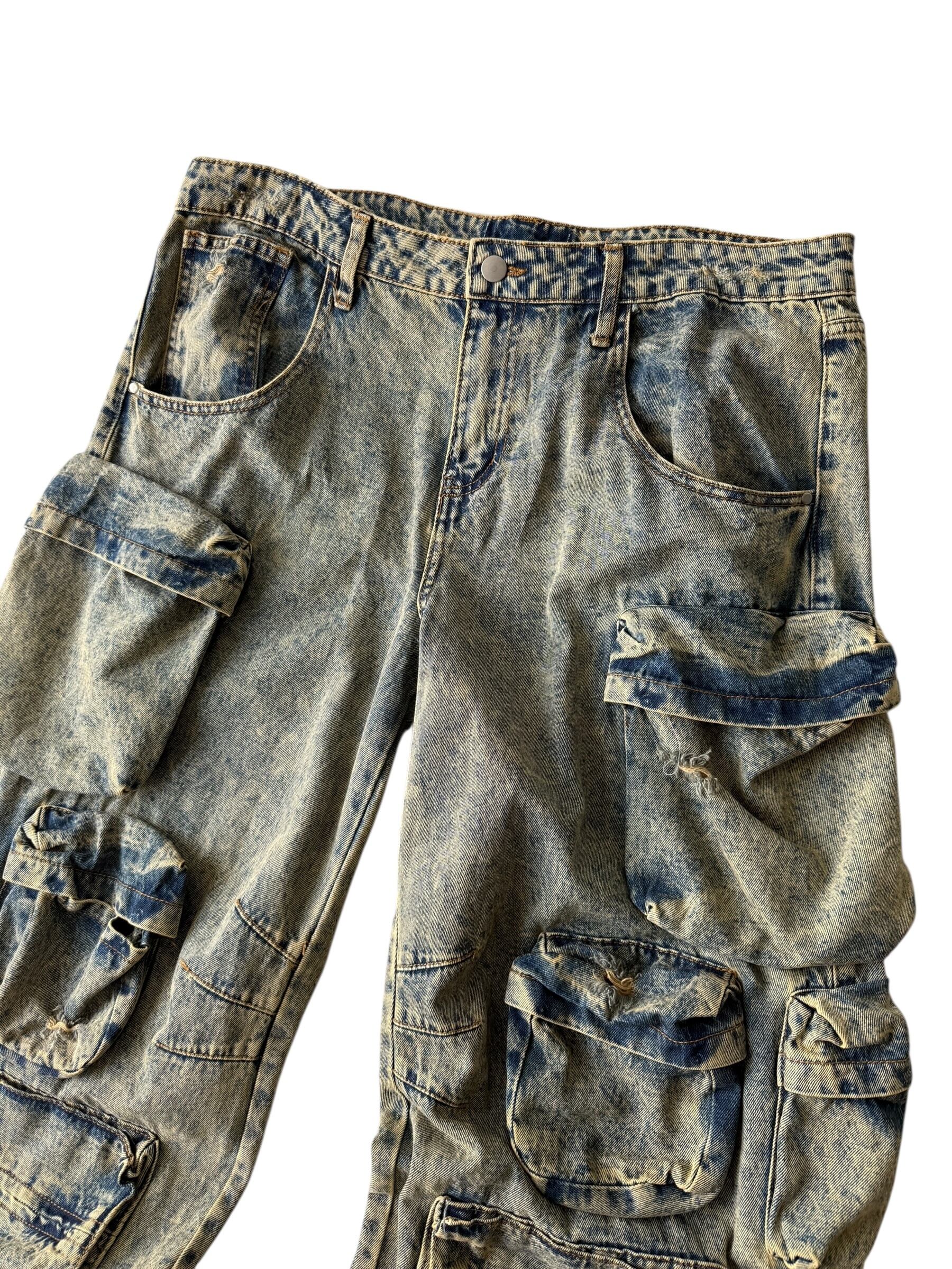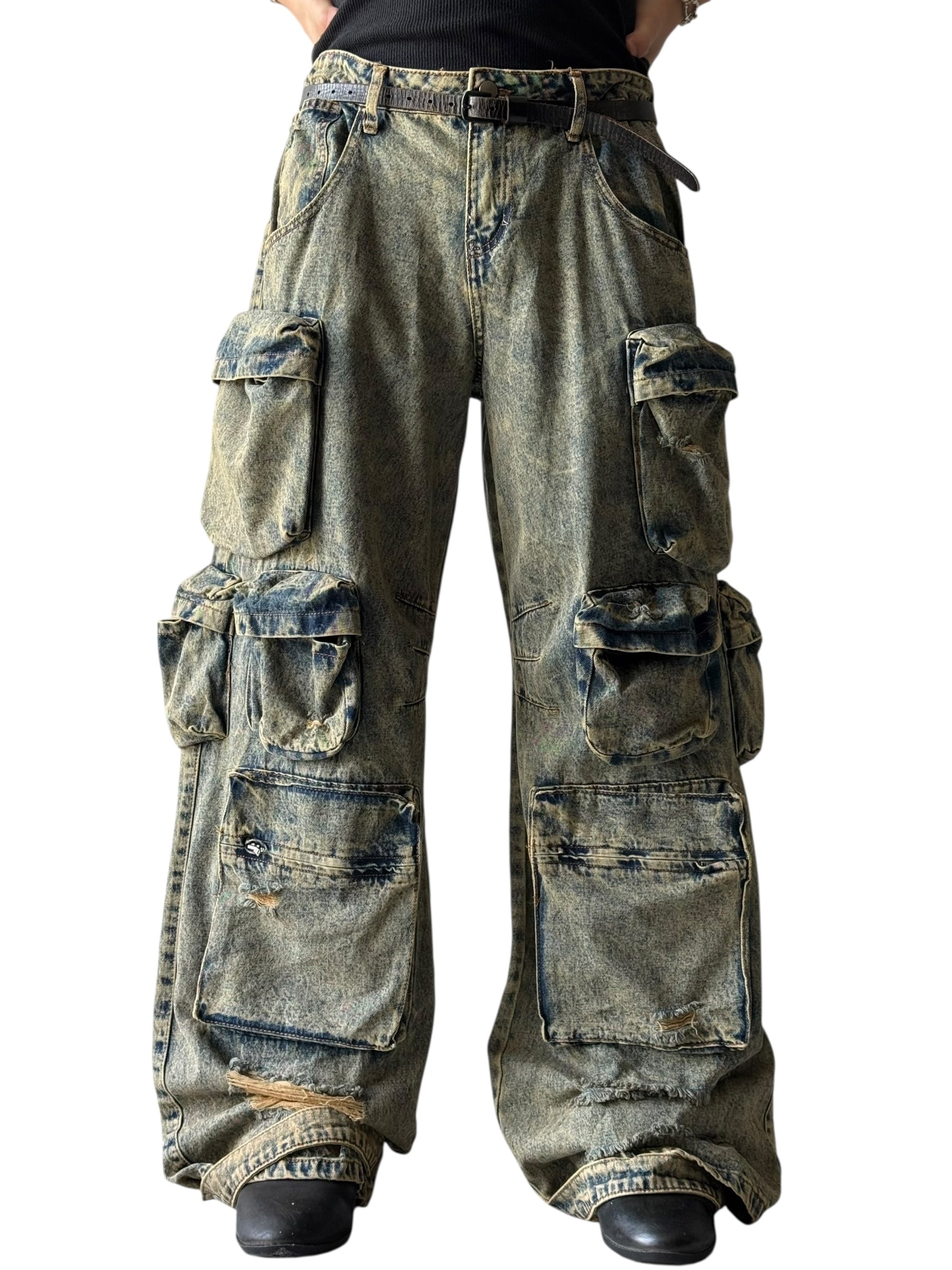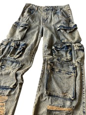 【UNKNOWN】 "various pockets pattern" crash washed design denim pants