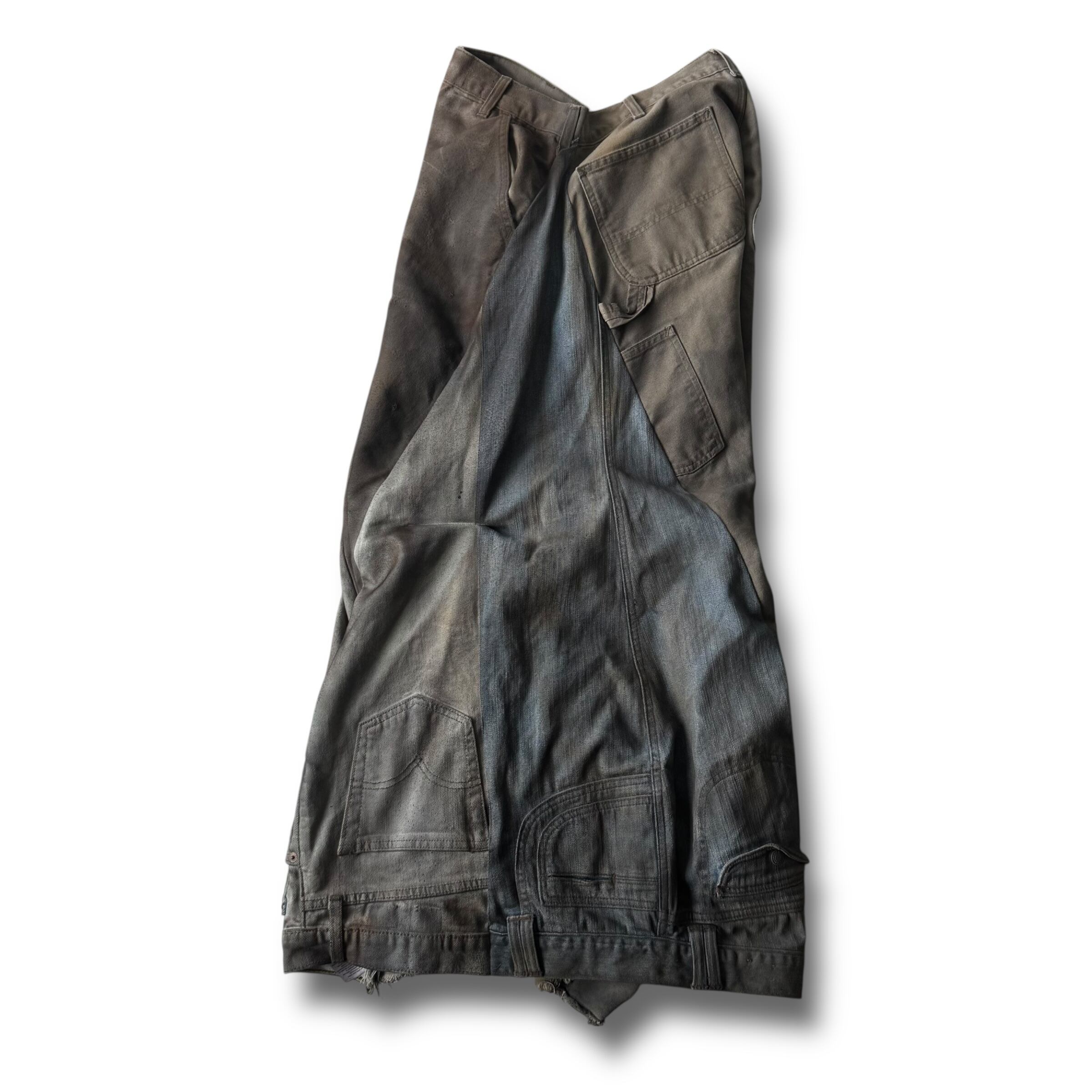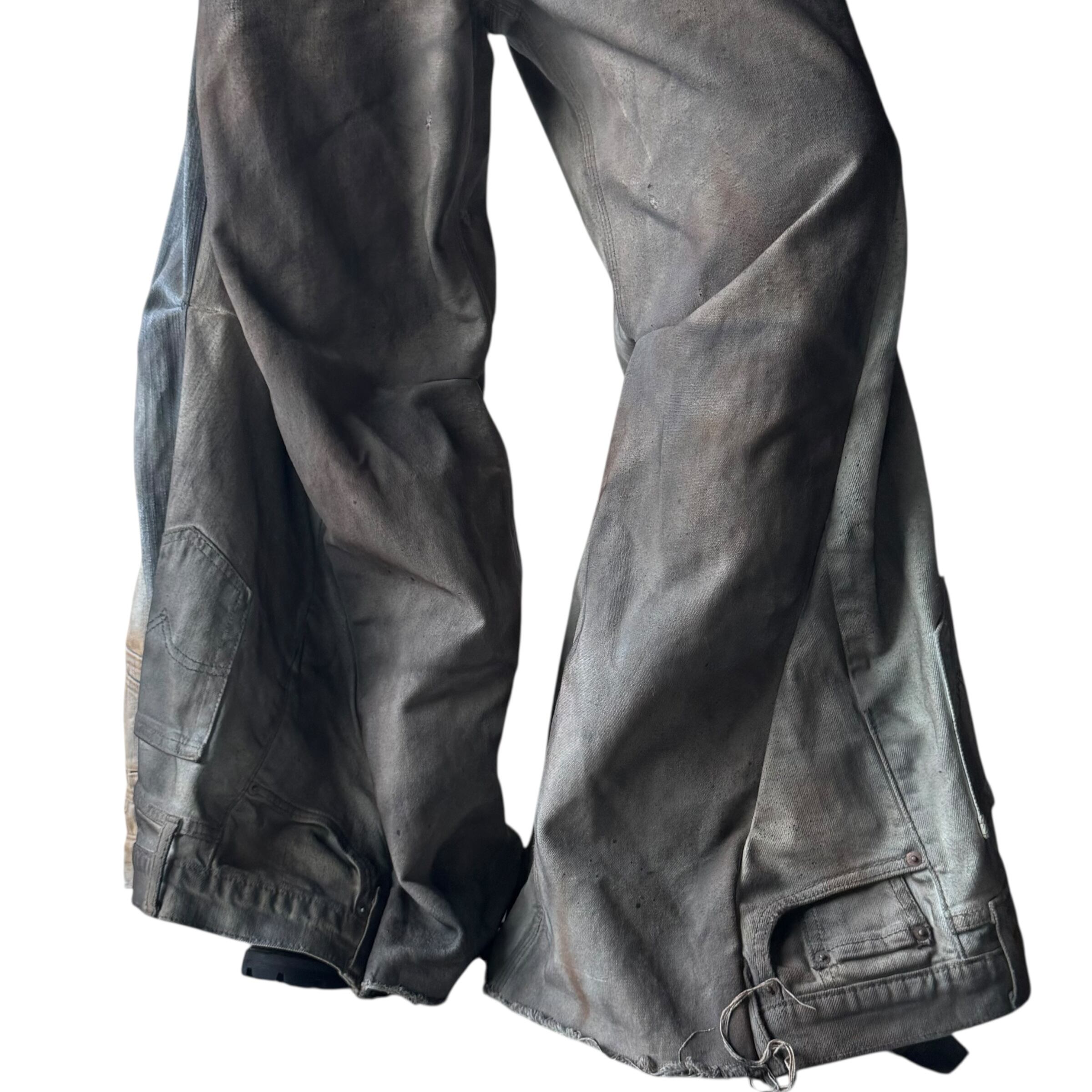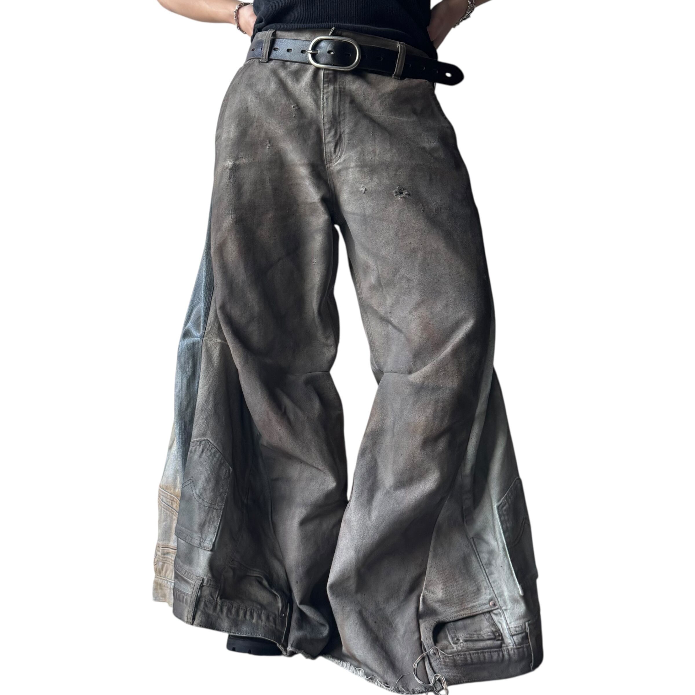 埃っぽさのあるムードなヨゴレ加工を施したヴィンテージライクな味のある仕上がりに加え、パンツのディテールが逆さまになっている変形デザイン。(神❤︎)