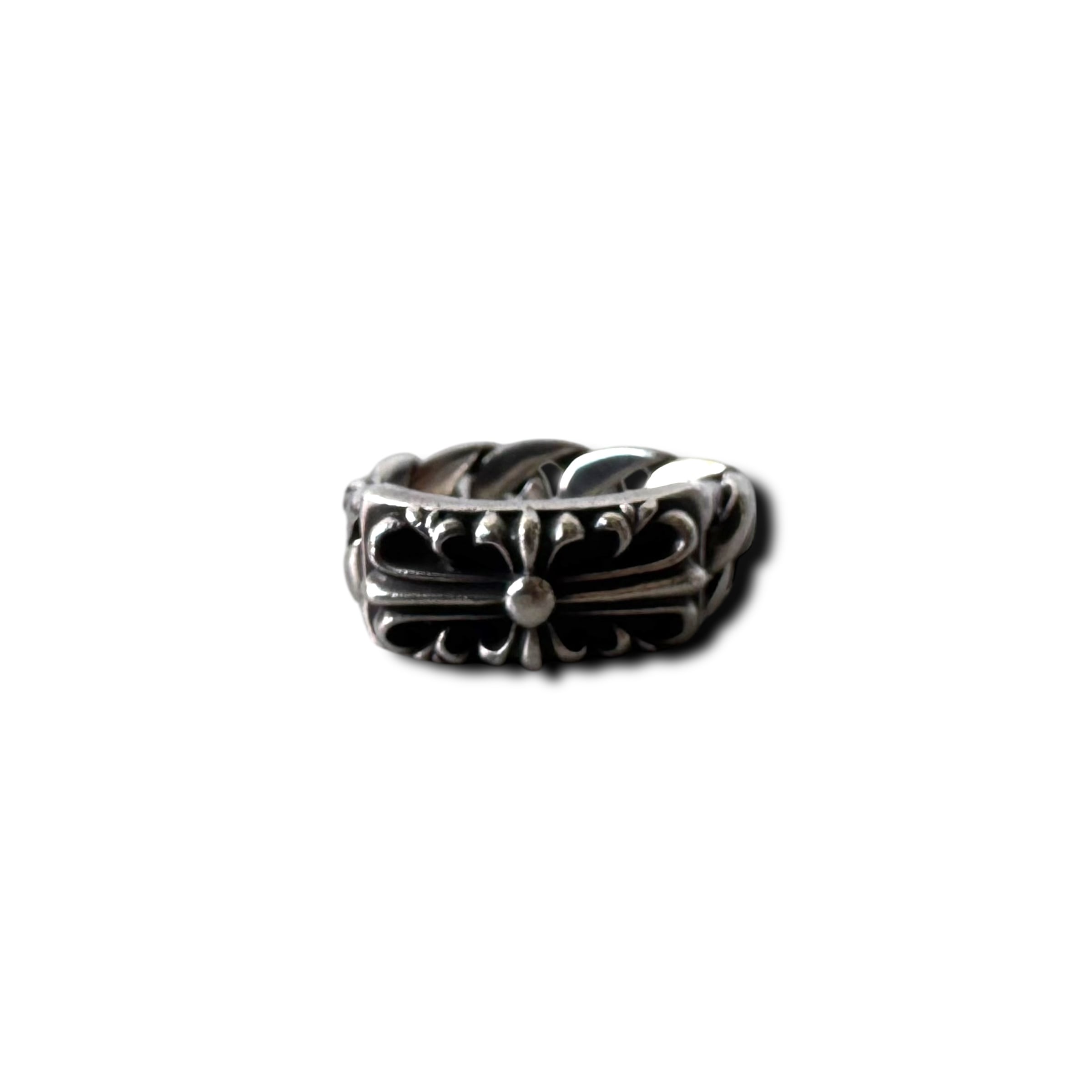♾vintage silver jewelry♾ floral cross motif chain design ring size 20号 sv925