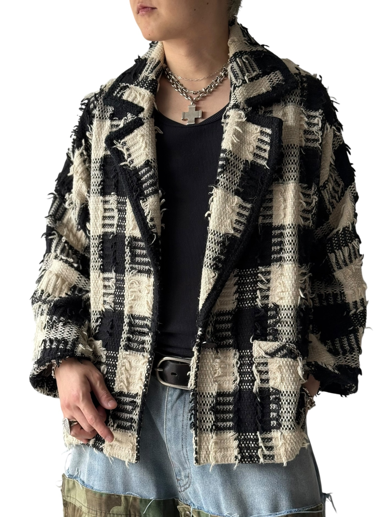 無敵かっこいいチェックのツイード織ジャケット‼️