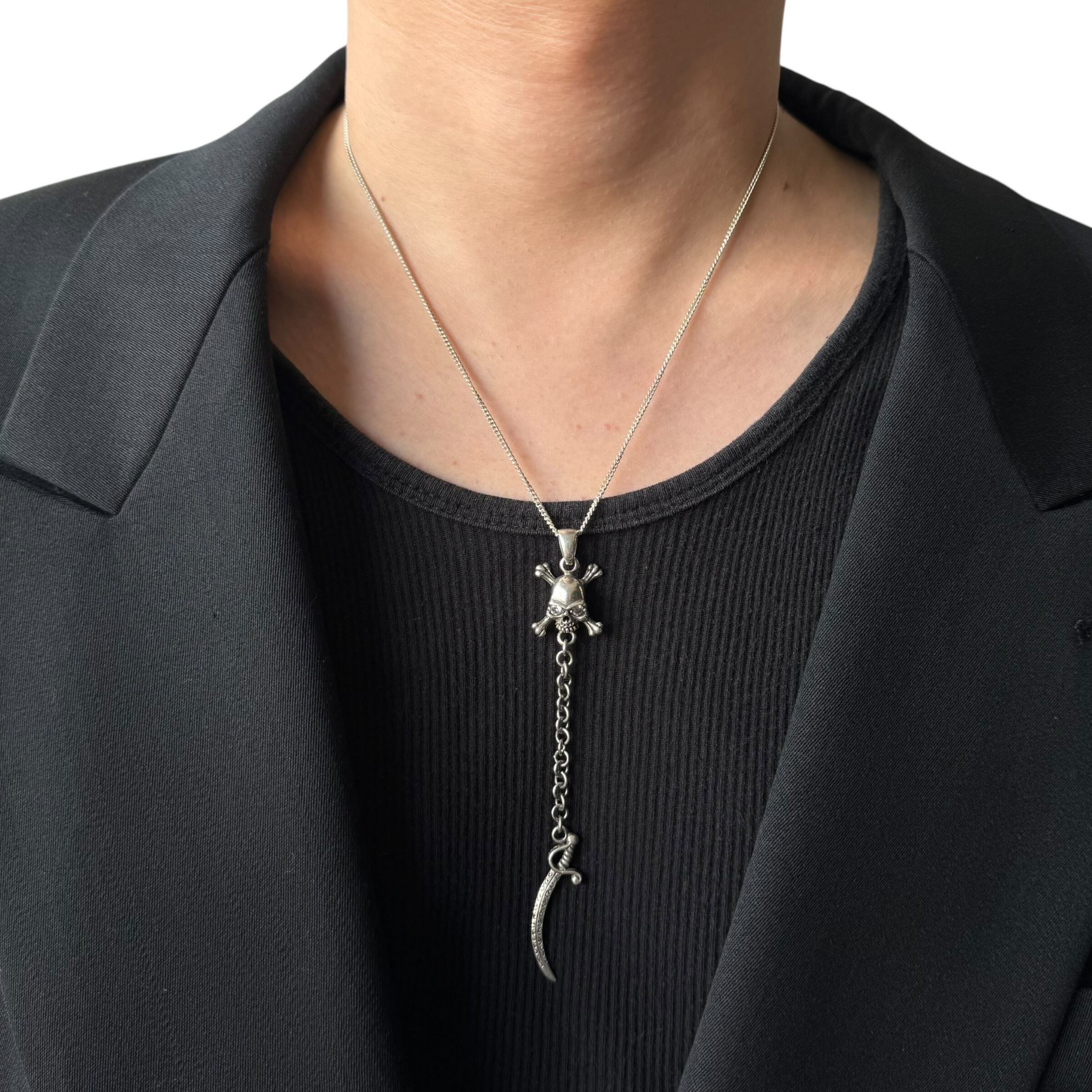 ♾️vtg silver jewelry♾️ skull dagger motif necklace sv925 ・